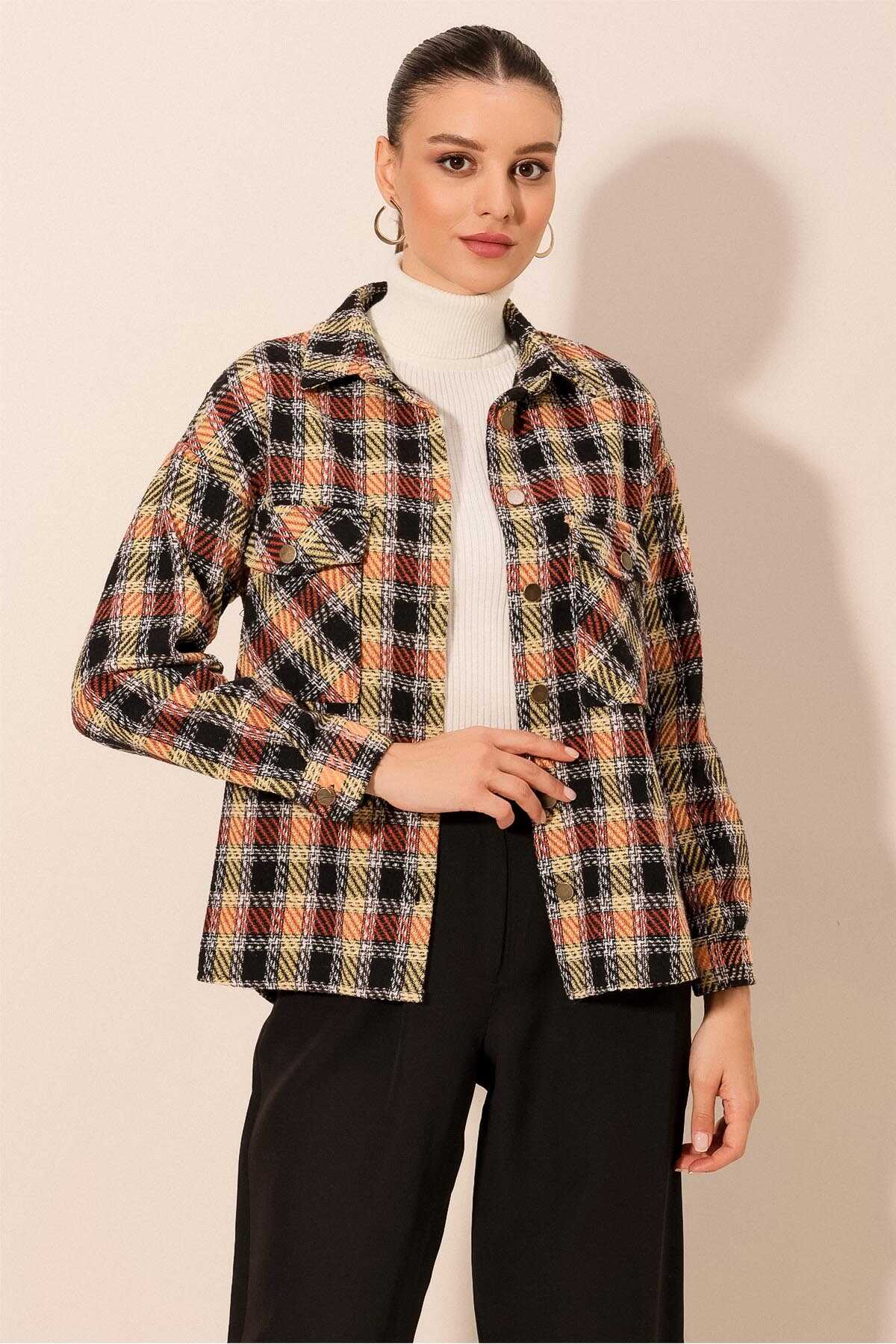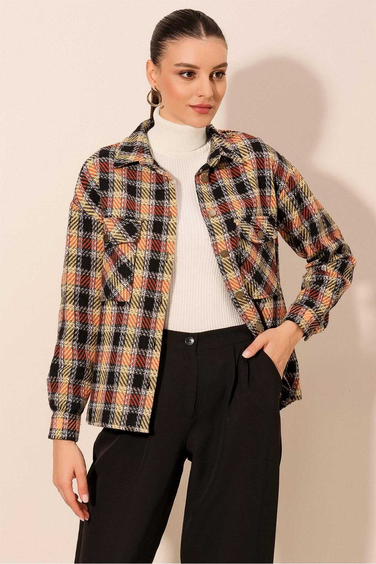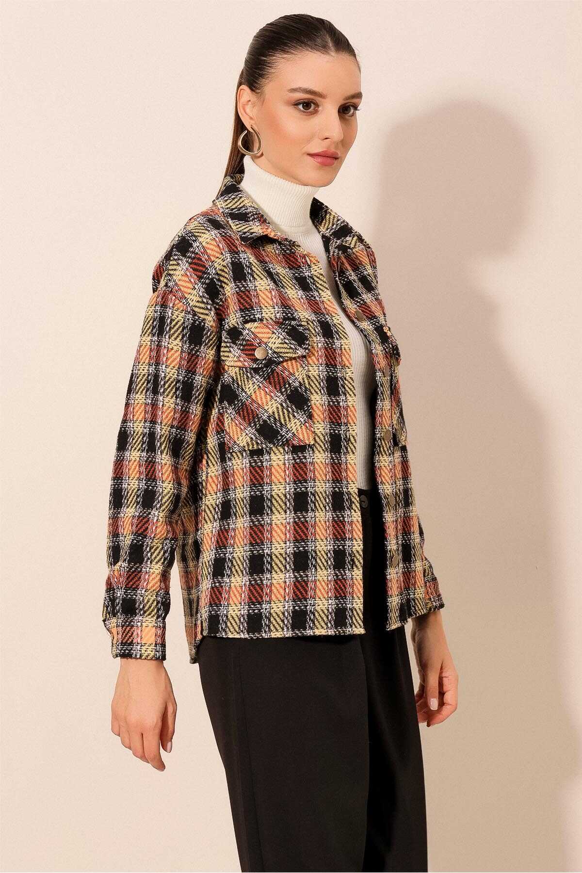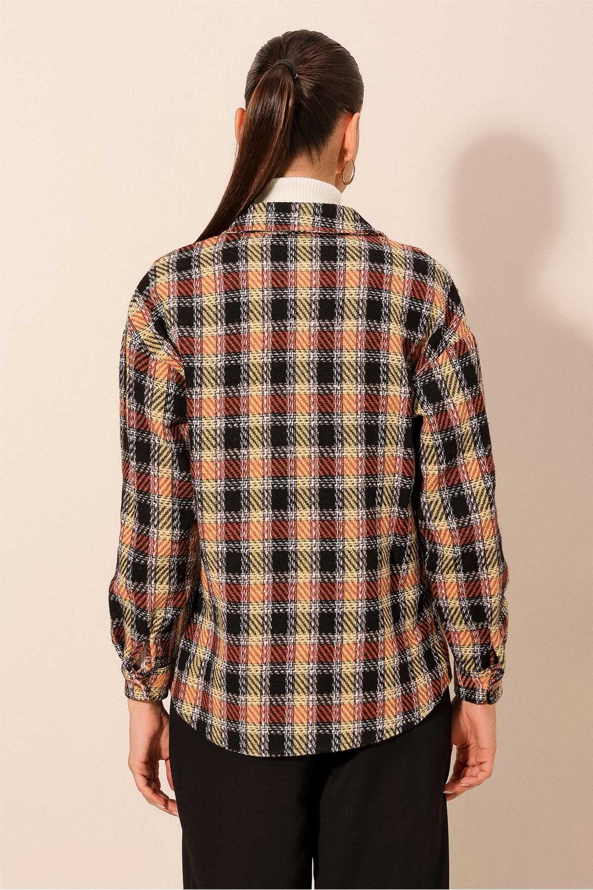 Kadin Ekose Desen Dügmeli Oversize Oduncu Gömlek