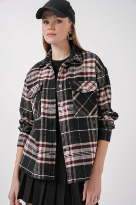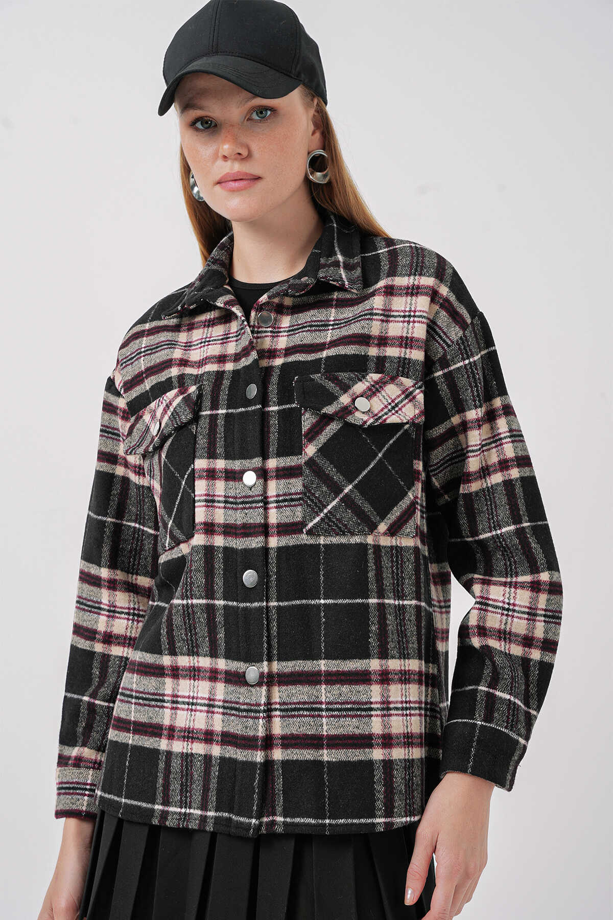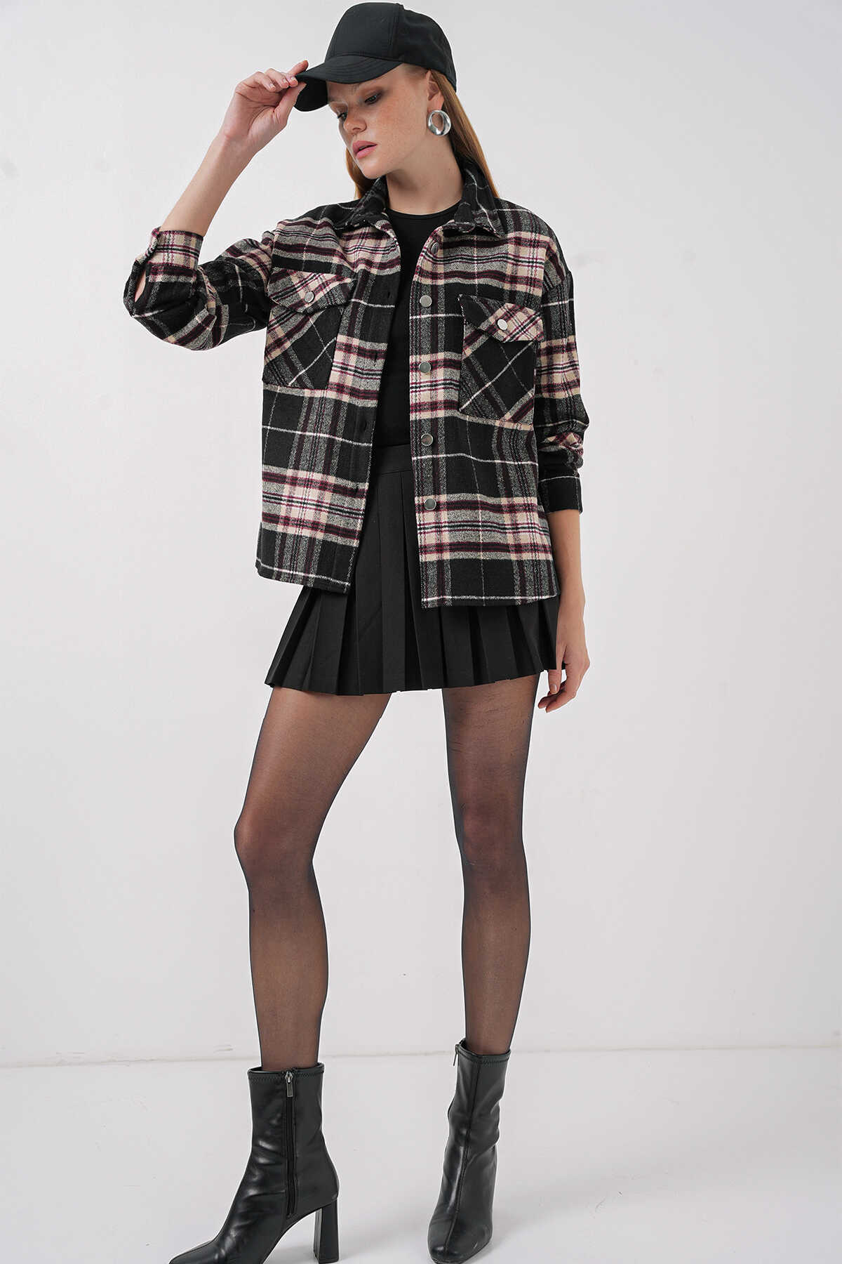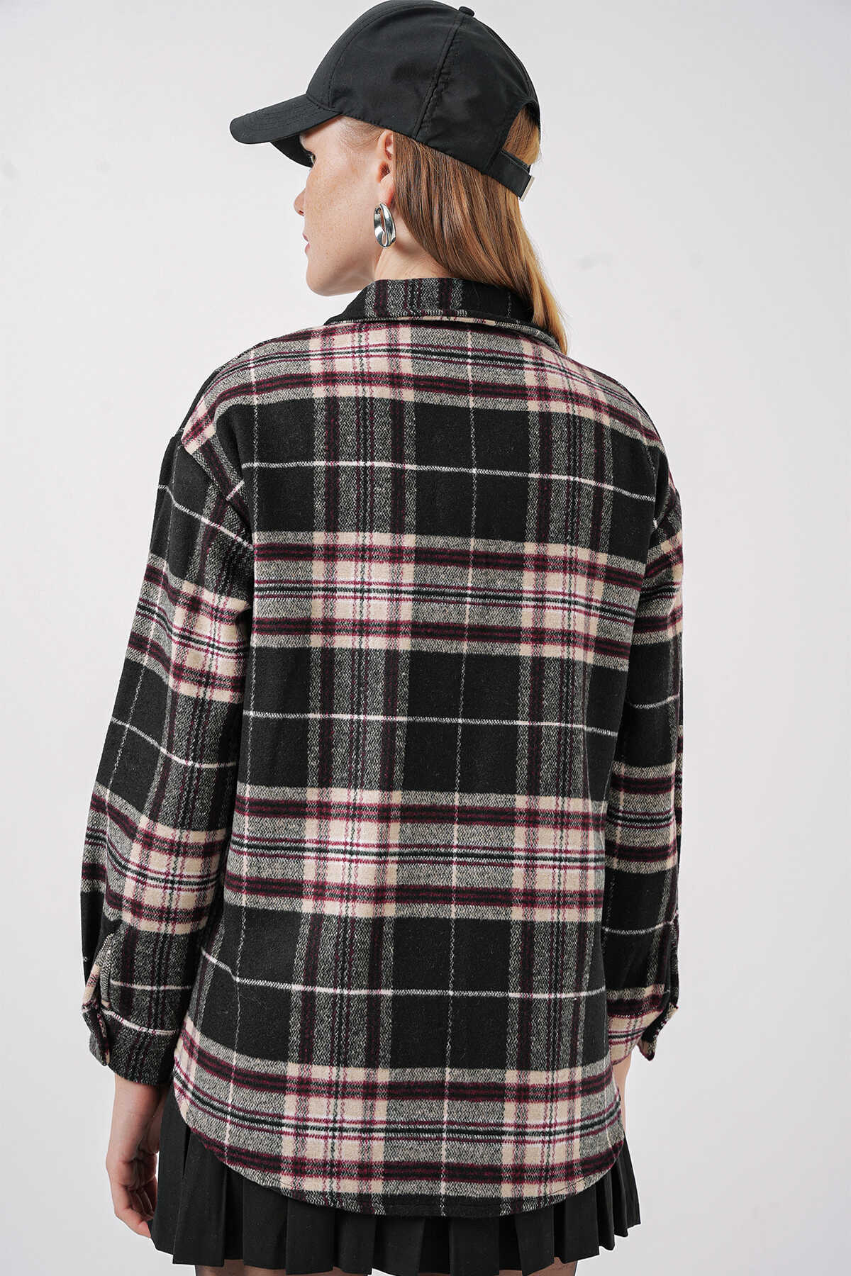Kadin Ekose Desen Dügmeli Oversize Oduncu Gömlek