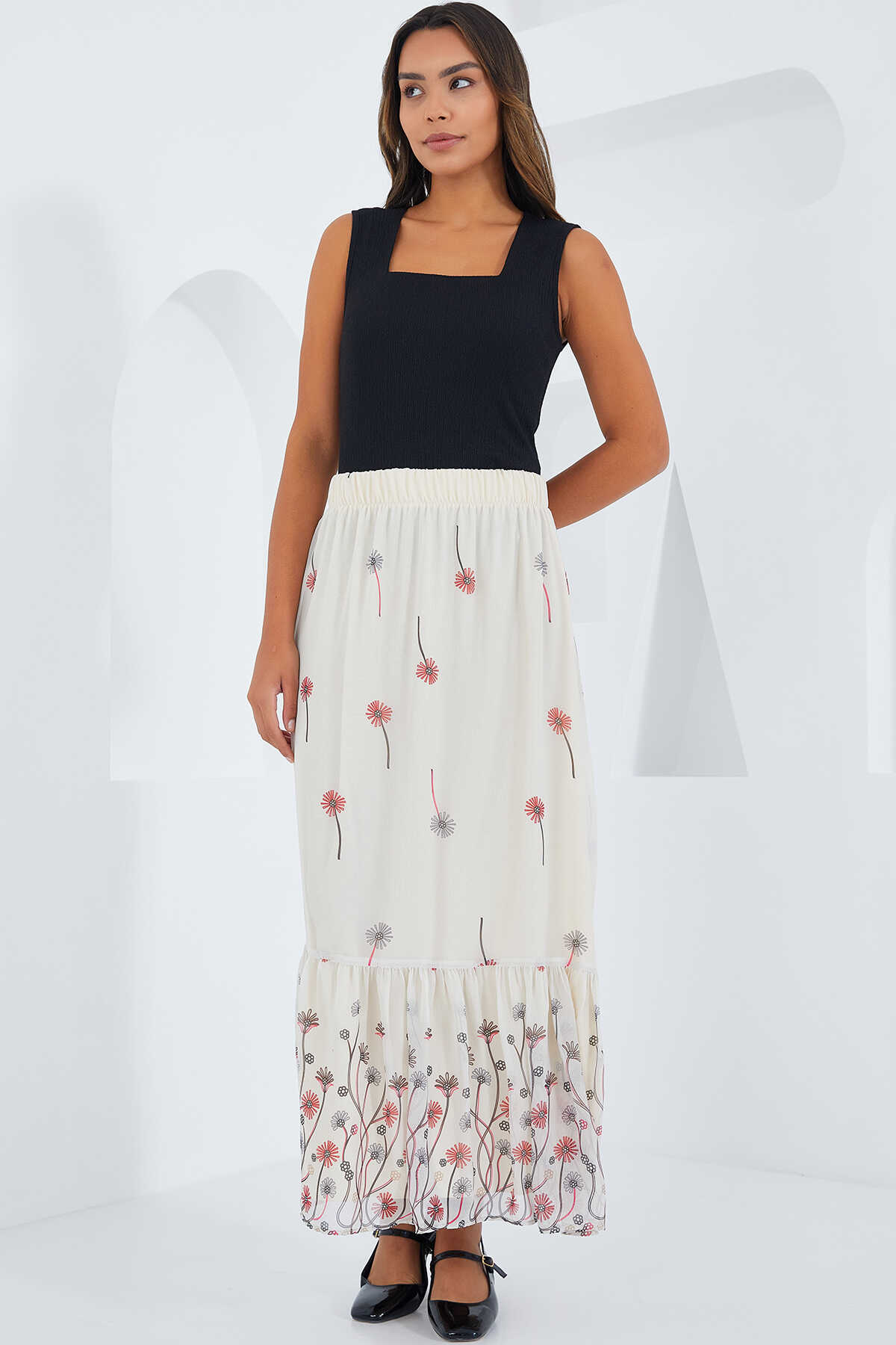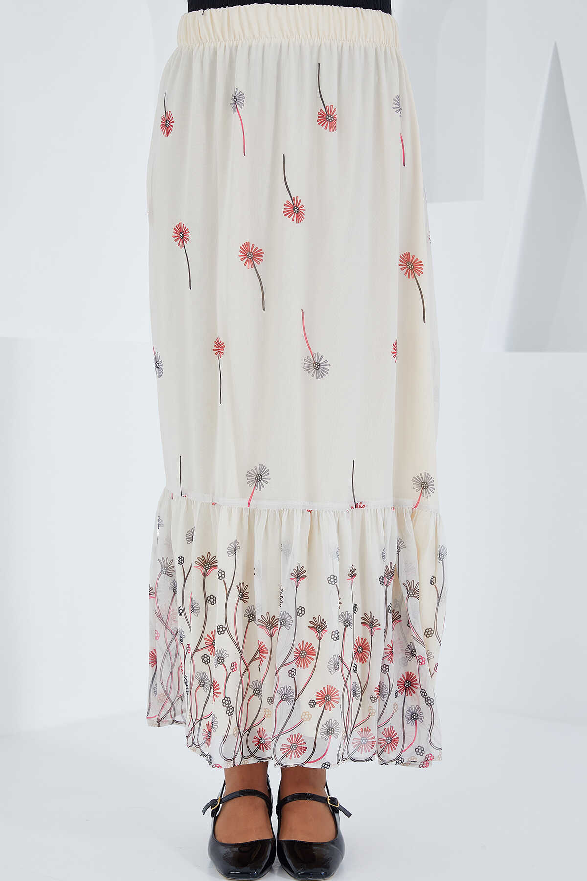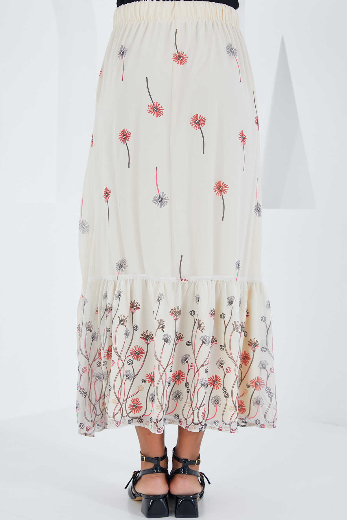Kadın Ekru Desenli Şifon Etek 8010 - Kombin