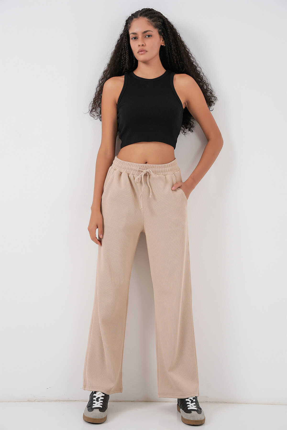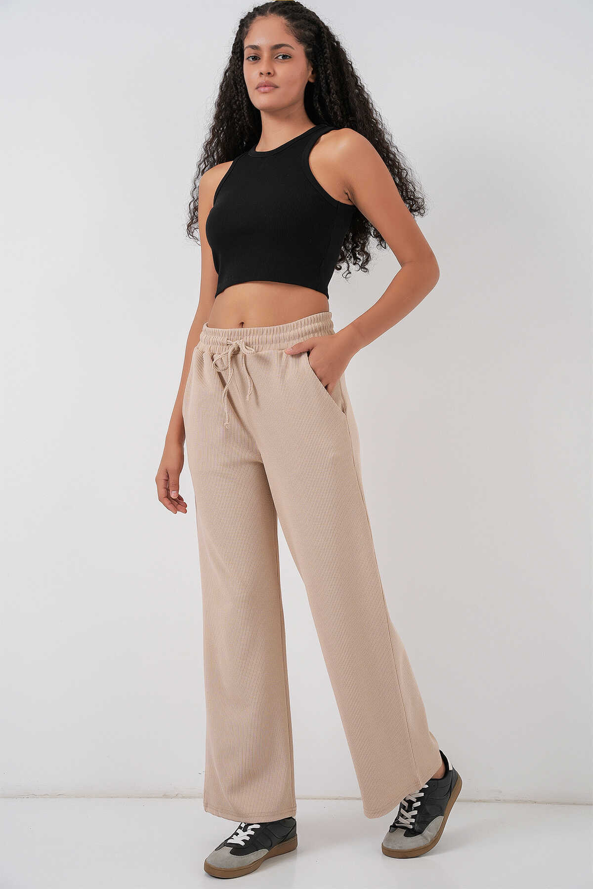 Kadın Fitilli Pantolon 30053 - Bej - Kombin