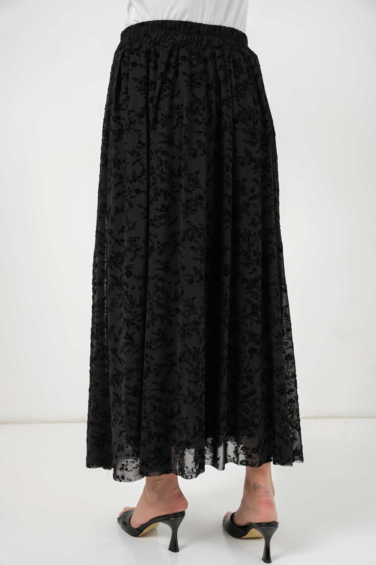 Kadın Flok Baskılı Astarlı Etek 8069 - Siyah