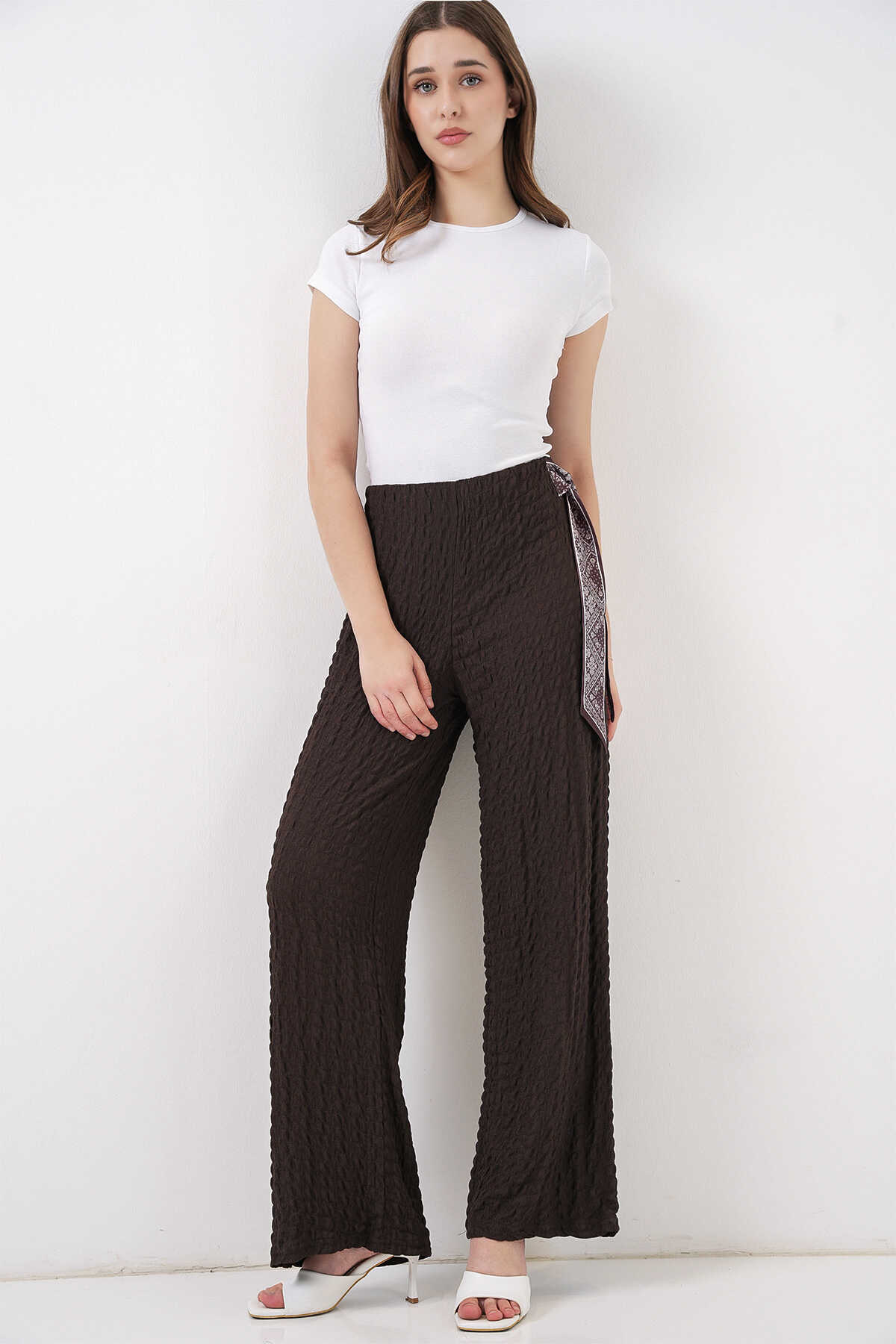 Kadin Fularli Örme Pantolon 30070