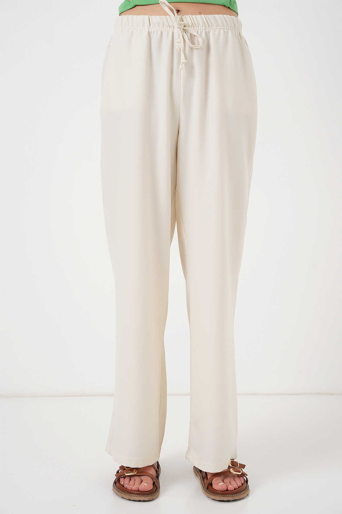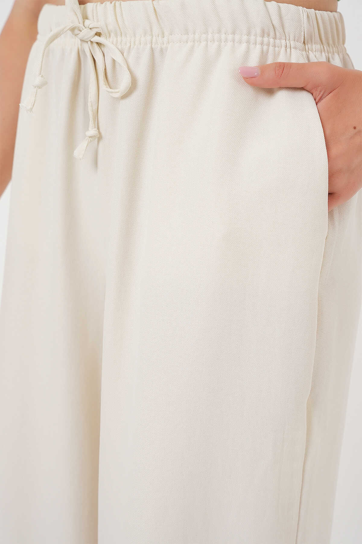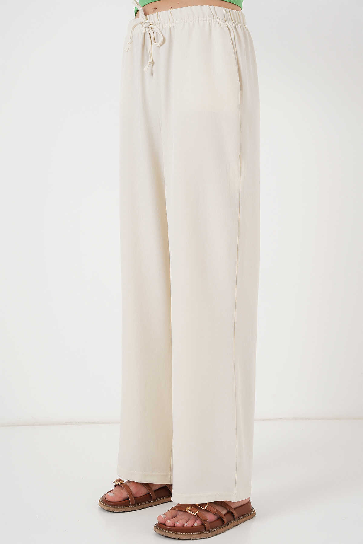 Kadın Geniş Paça Keten Pantolon 6735 - Ekru - Kombin
