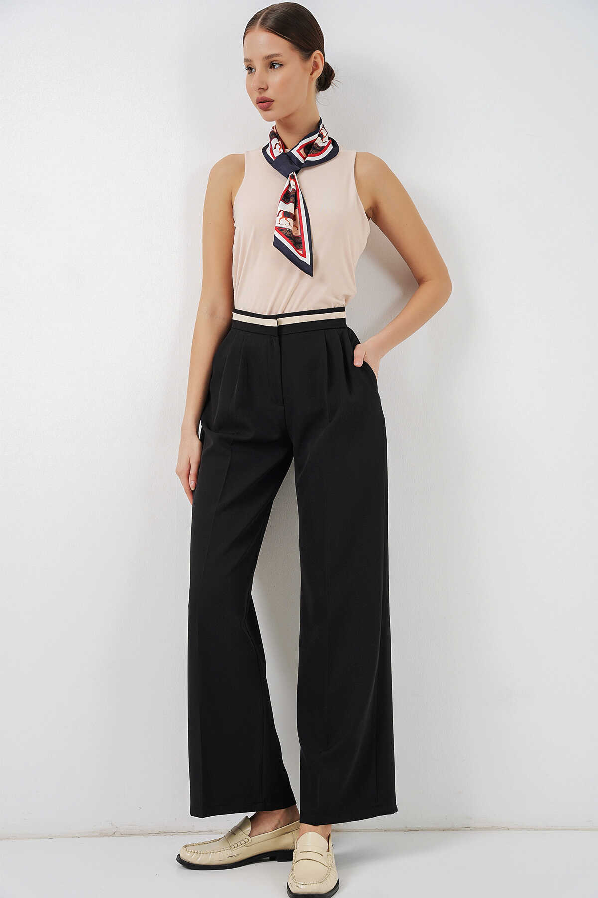 Kadın Geniş Paça Kumaş Pantolon 30088 - Siyah - Kombin