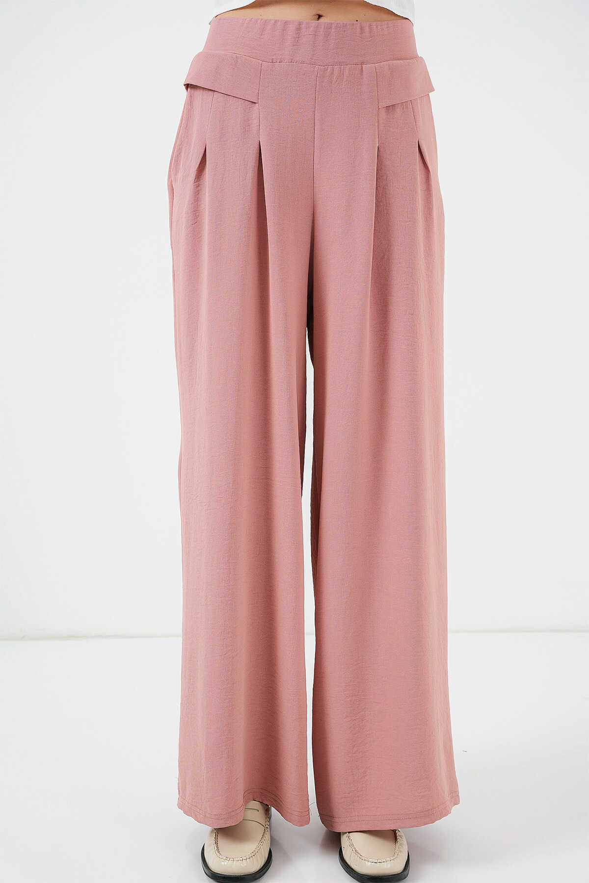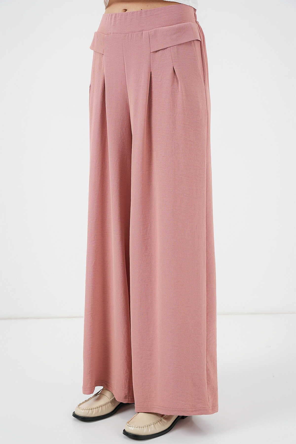 Kadın Geniş Paça Pileli Pantolon 6718 - Gül Kurusu