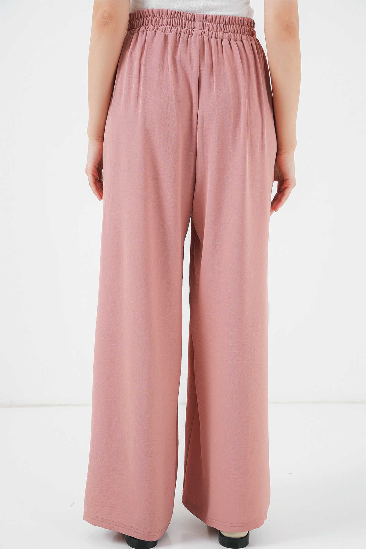 Kadın Geniş Paça Pileli Pantolon 6718 - Gül Kurusu - Kombin