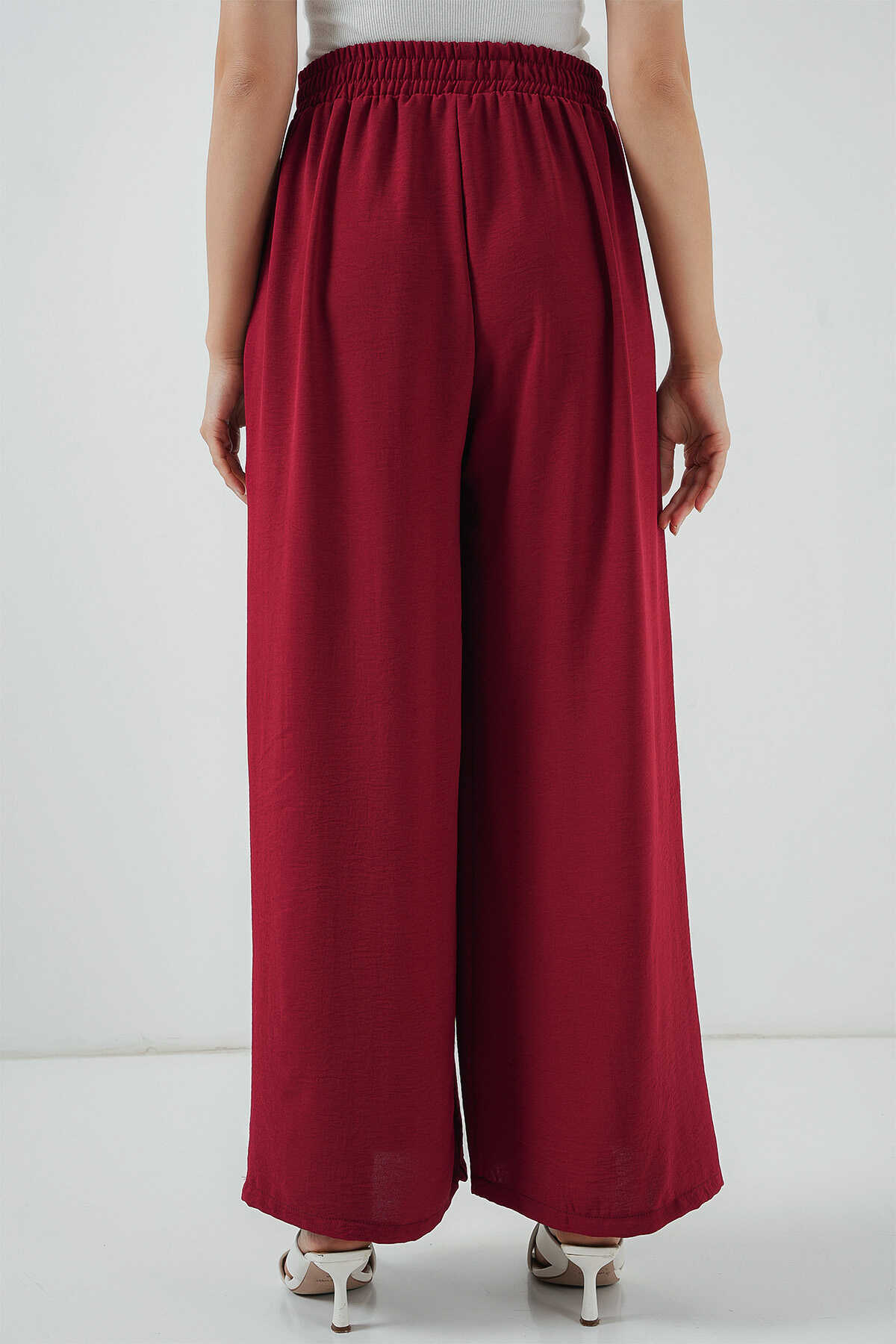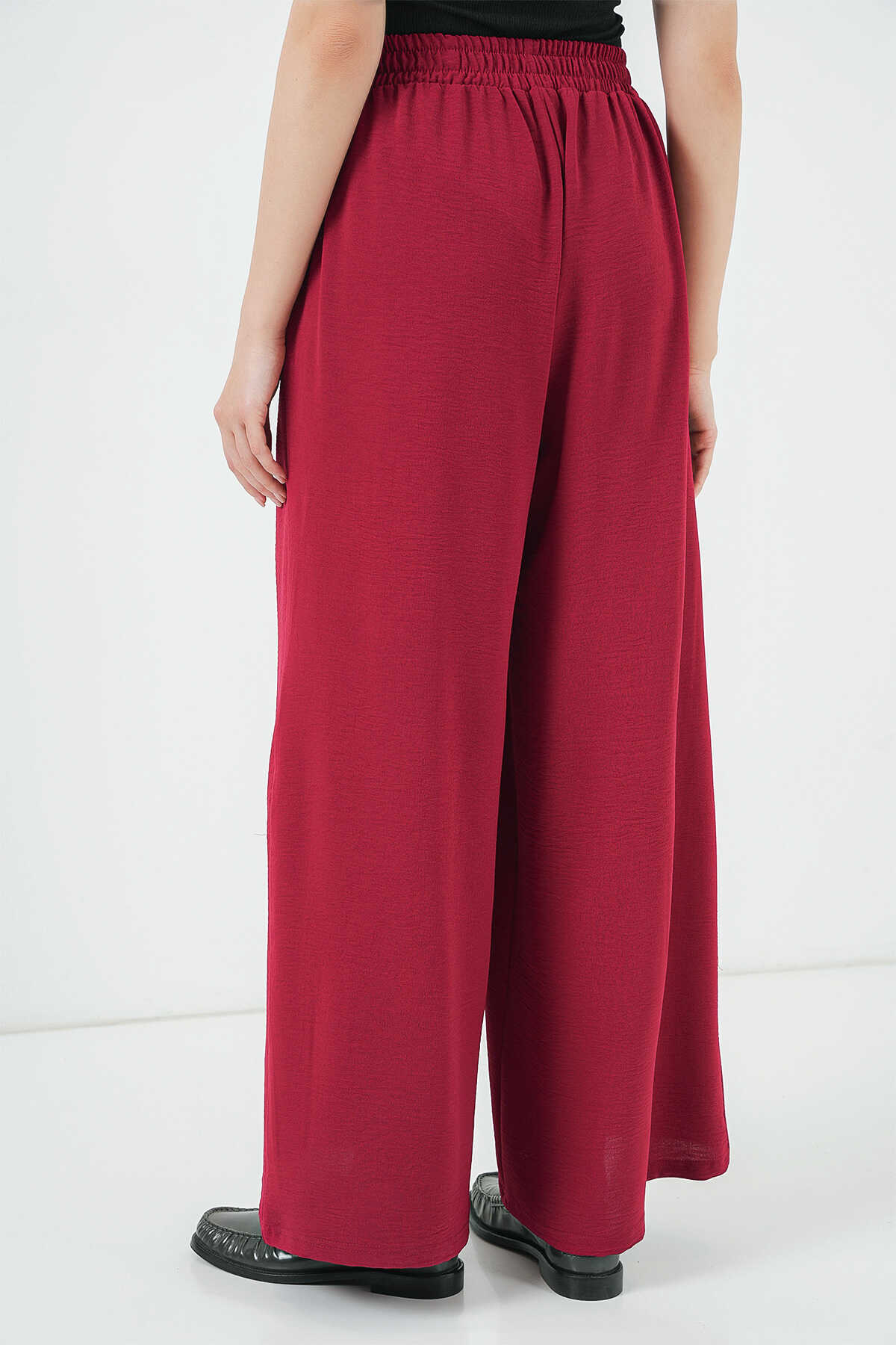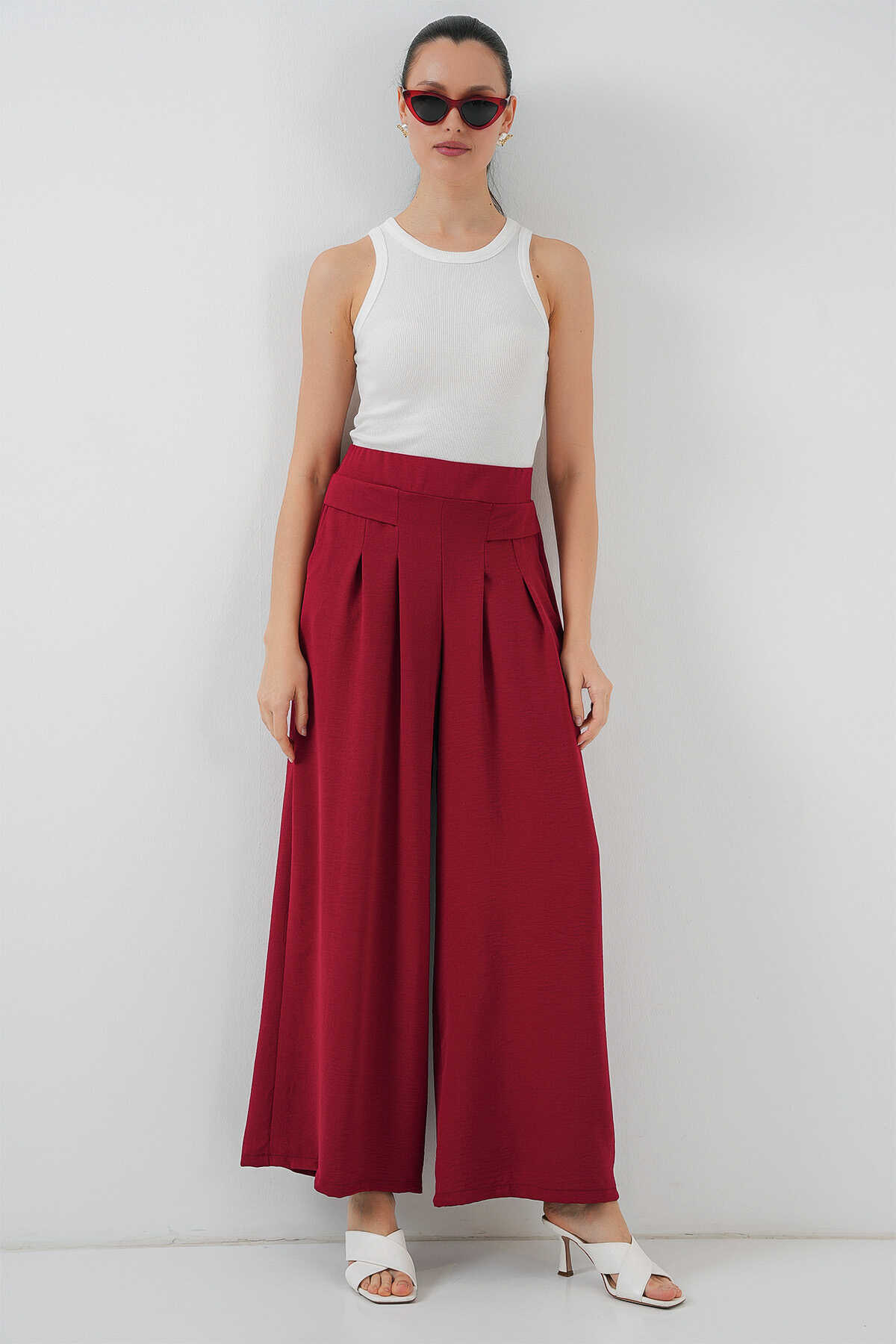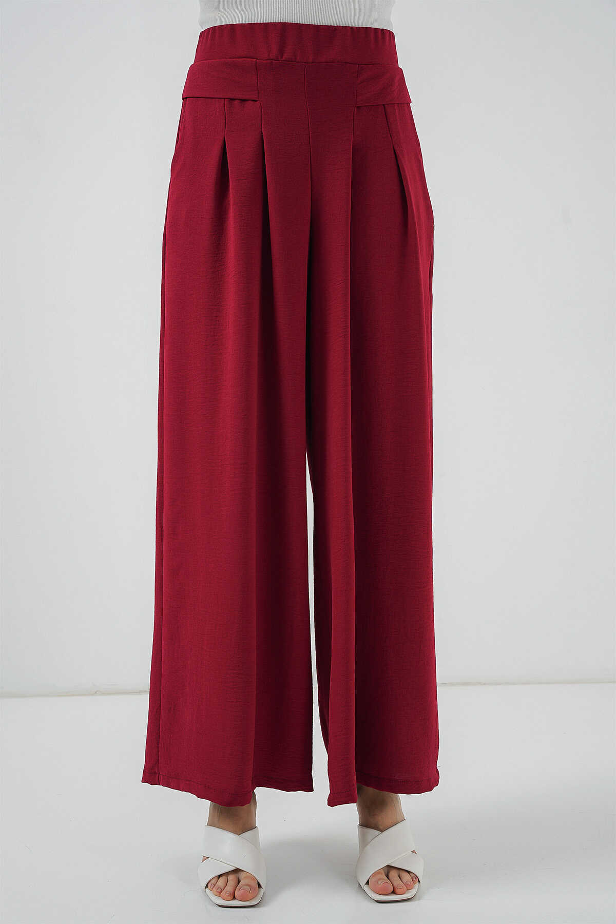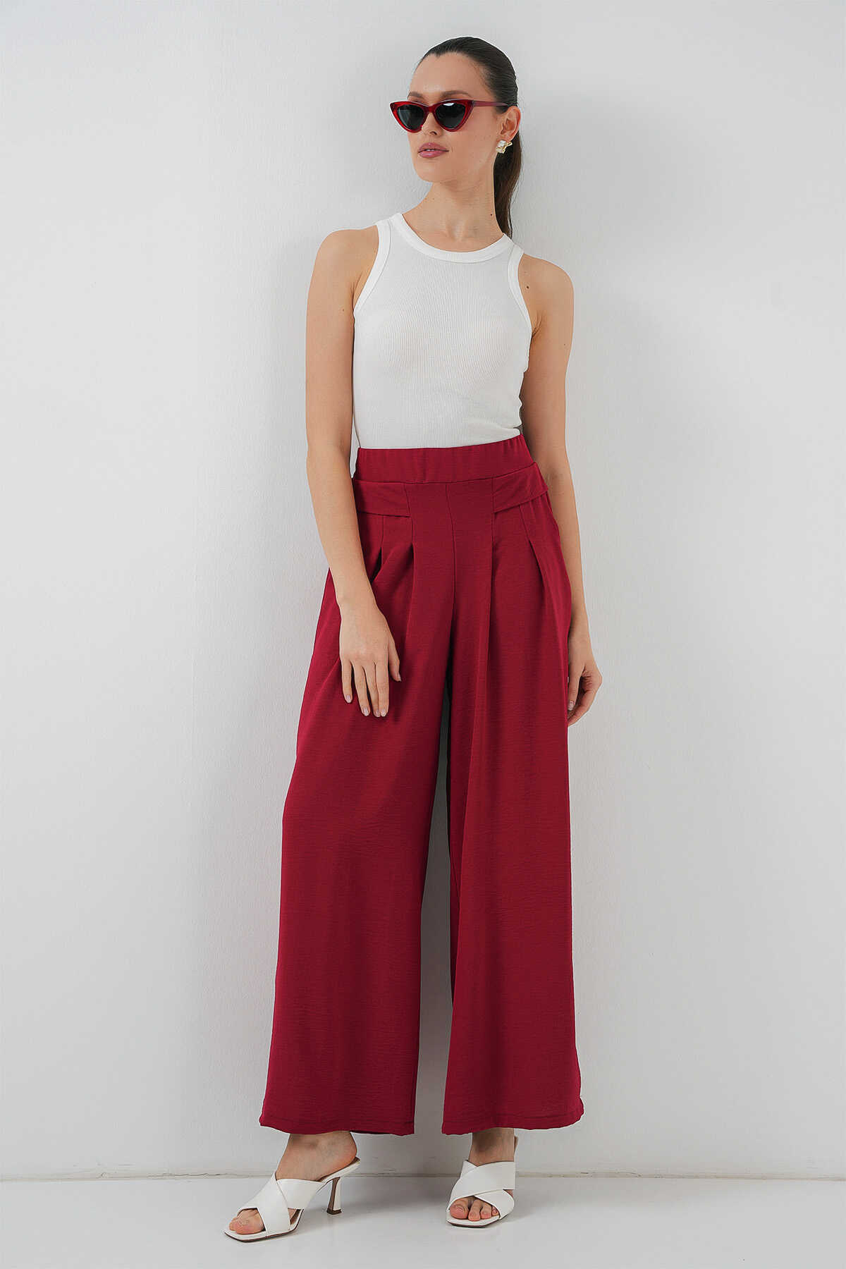 Kadın Geniş Paça Pileli Pantolon 6718 - Kırmızı - Kombin
