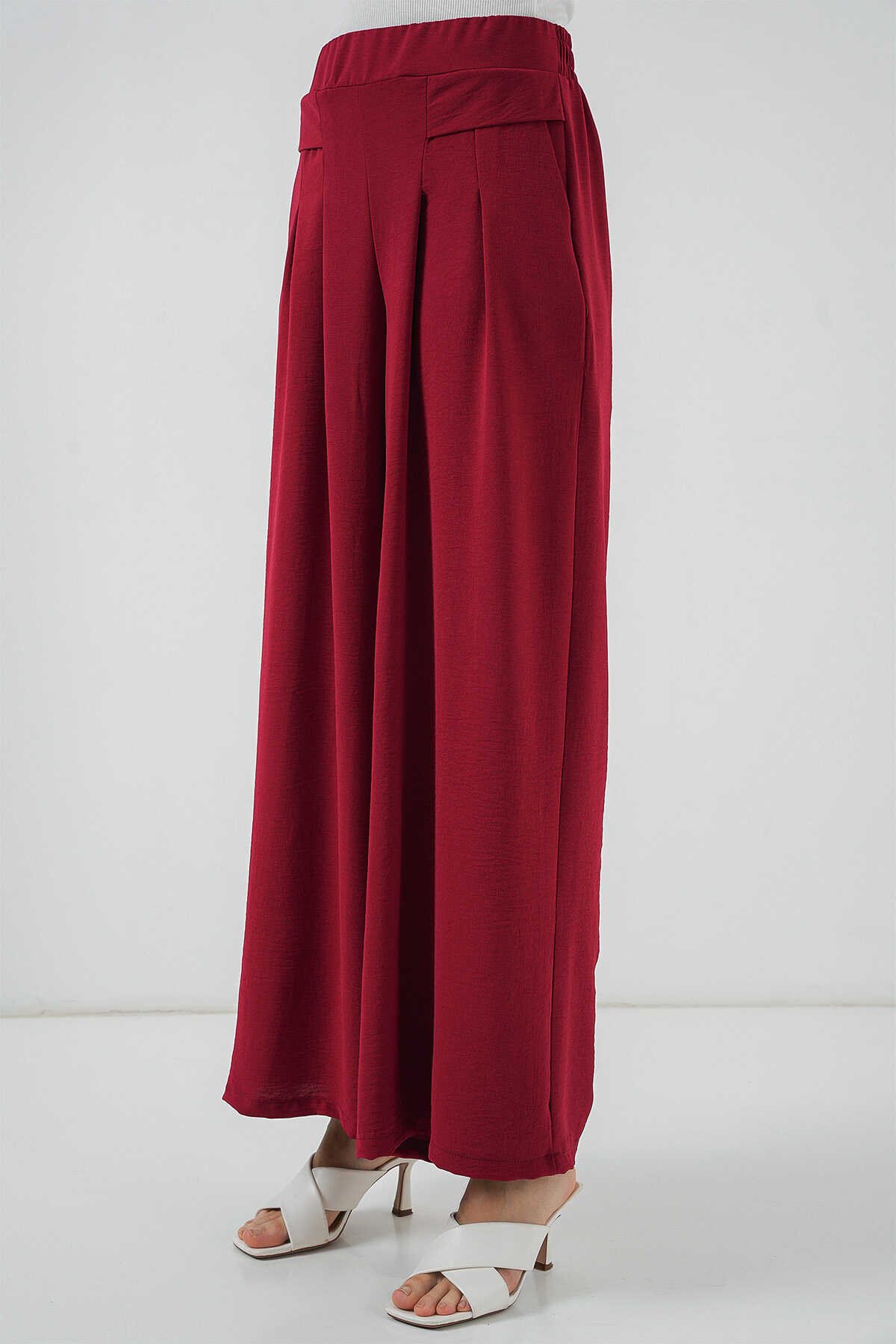 Kadın Geniş Paça Pileli Pantolon 6718 - Kırmızı