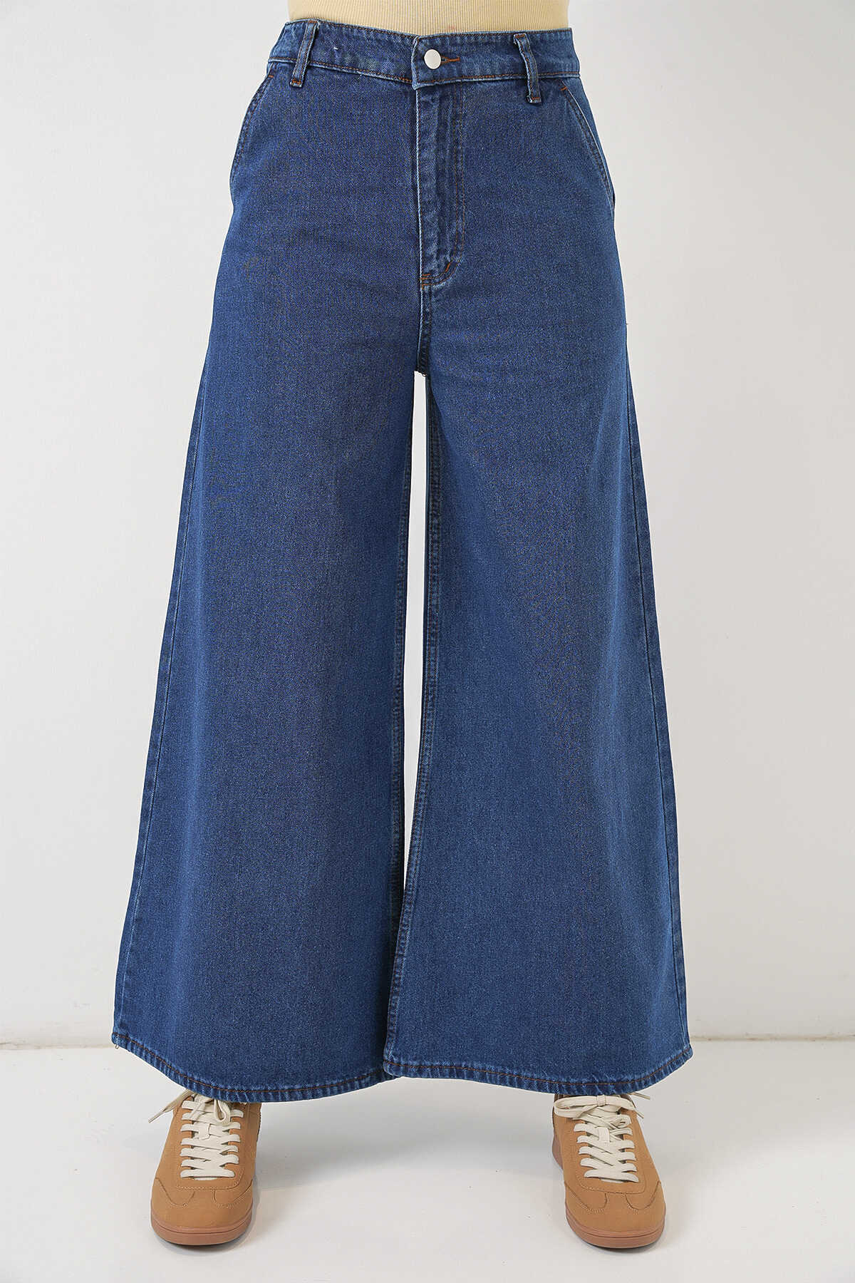 Kadin Genis Paça Yüksek Bel Kot Pantolon 30080