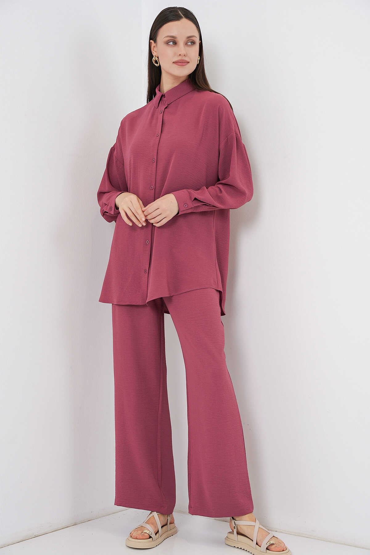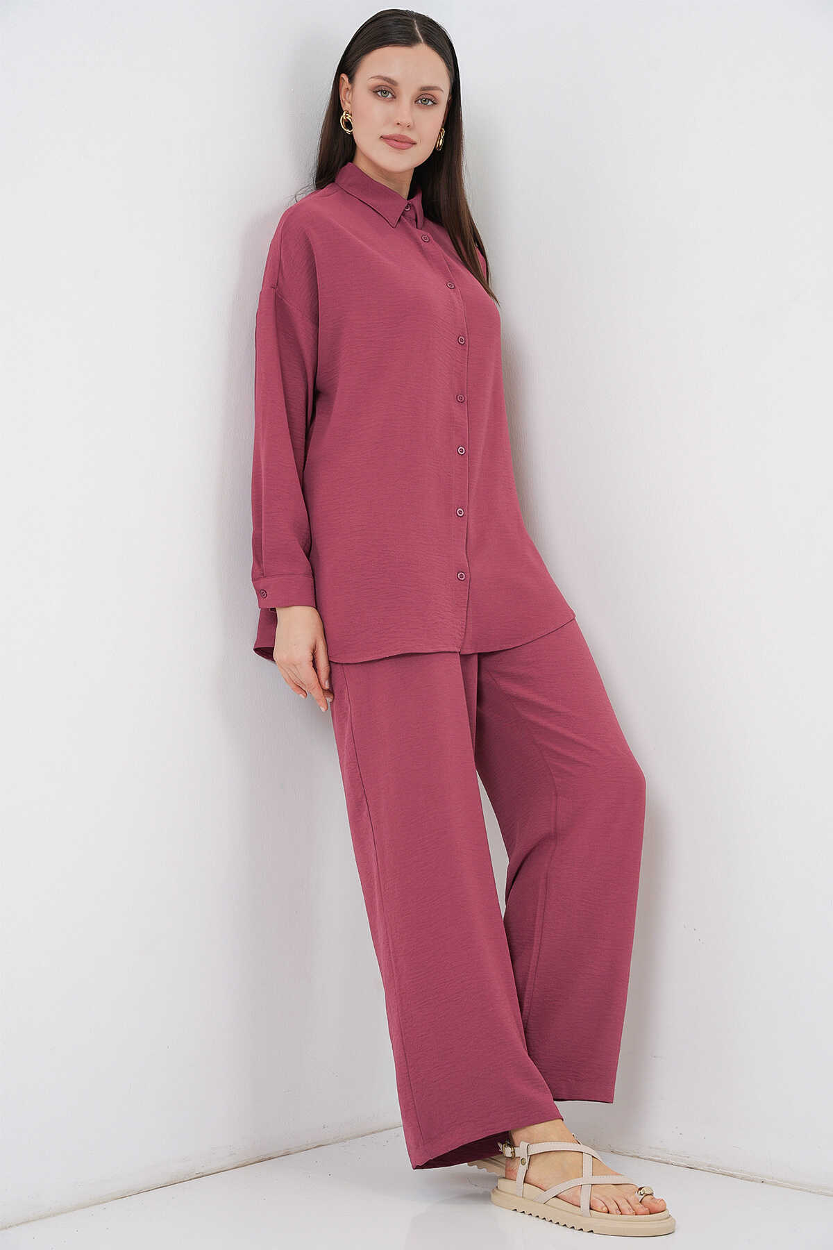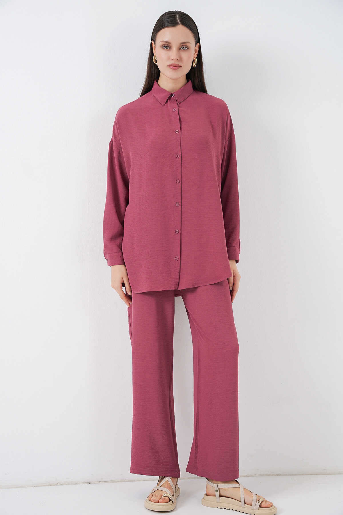 Kadın Gömlek Pantolon İkili Takım 30063 - Gül Kurusu - Kombin