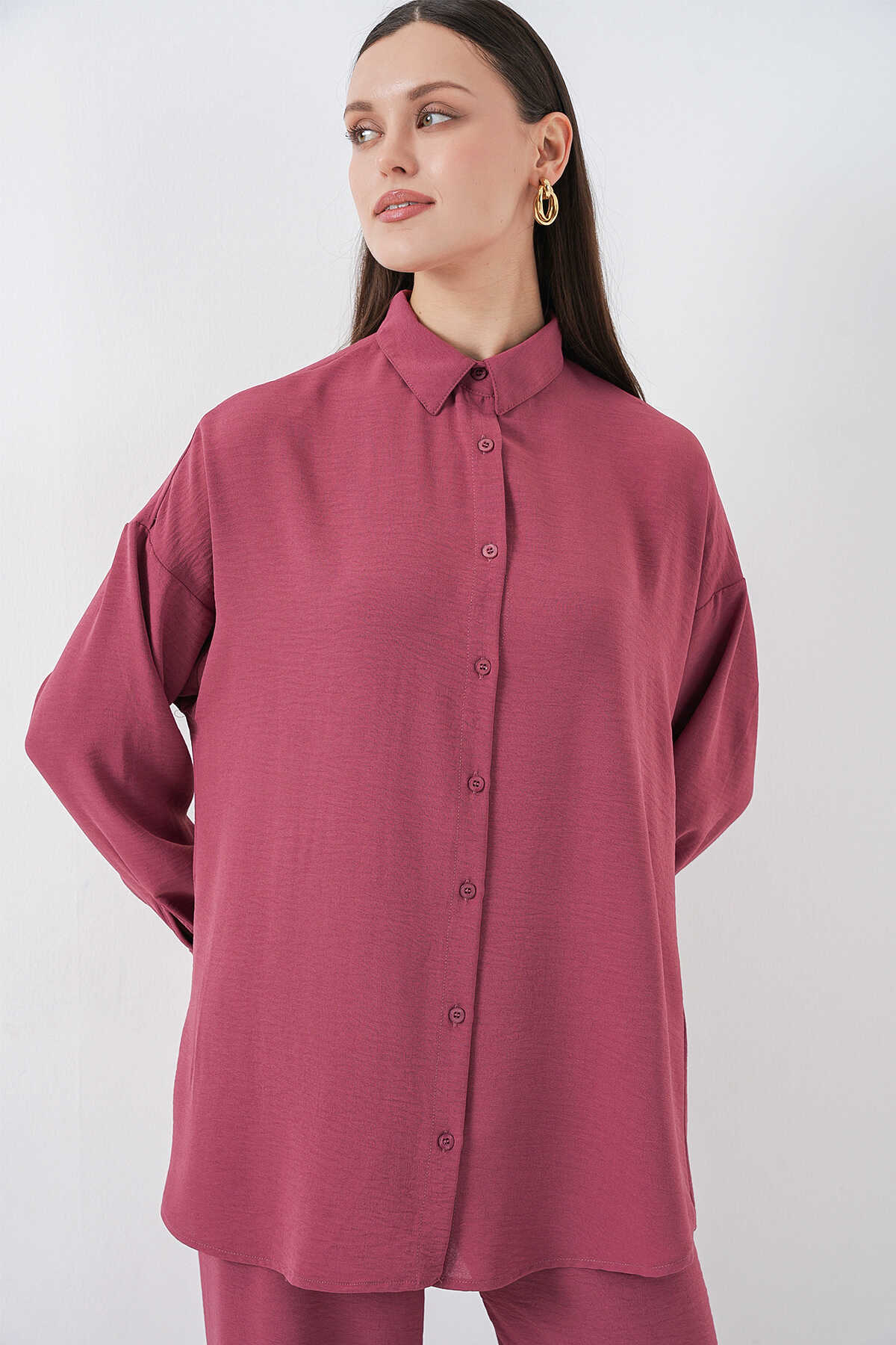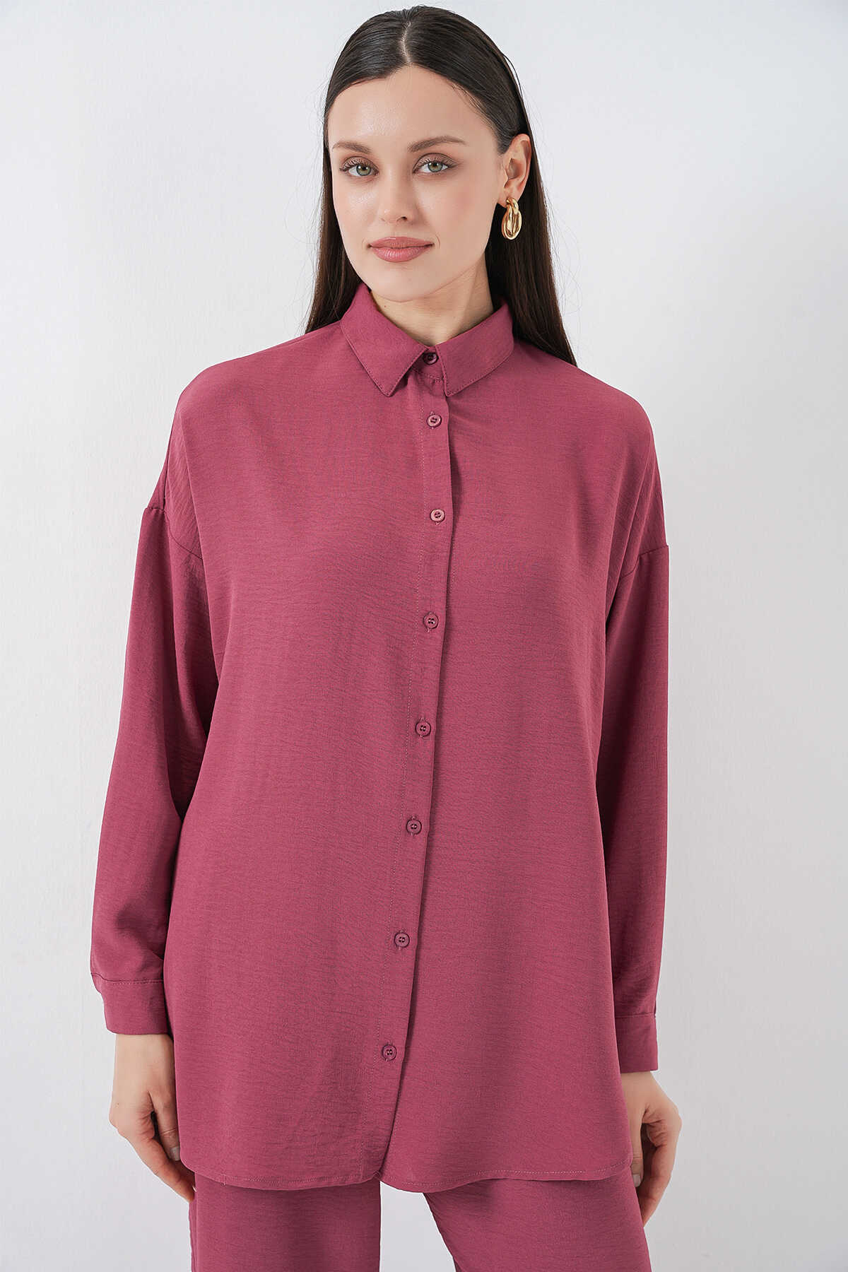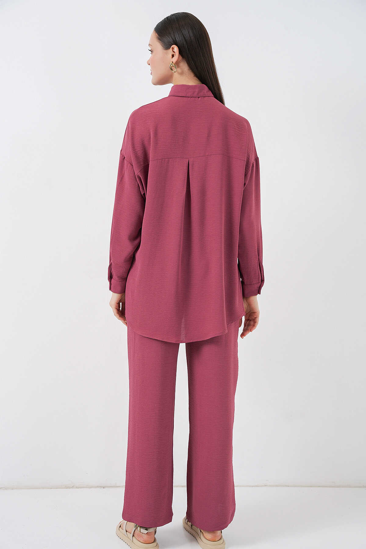 Kadın Gömlek Pantolon İkili Takım 30063 - Gül Kurusu - Kombin