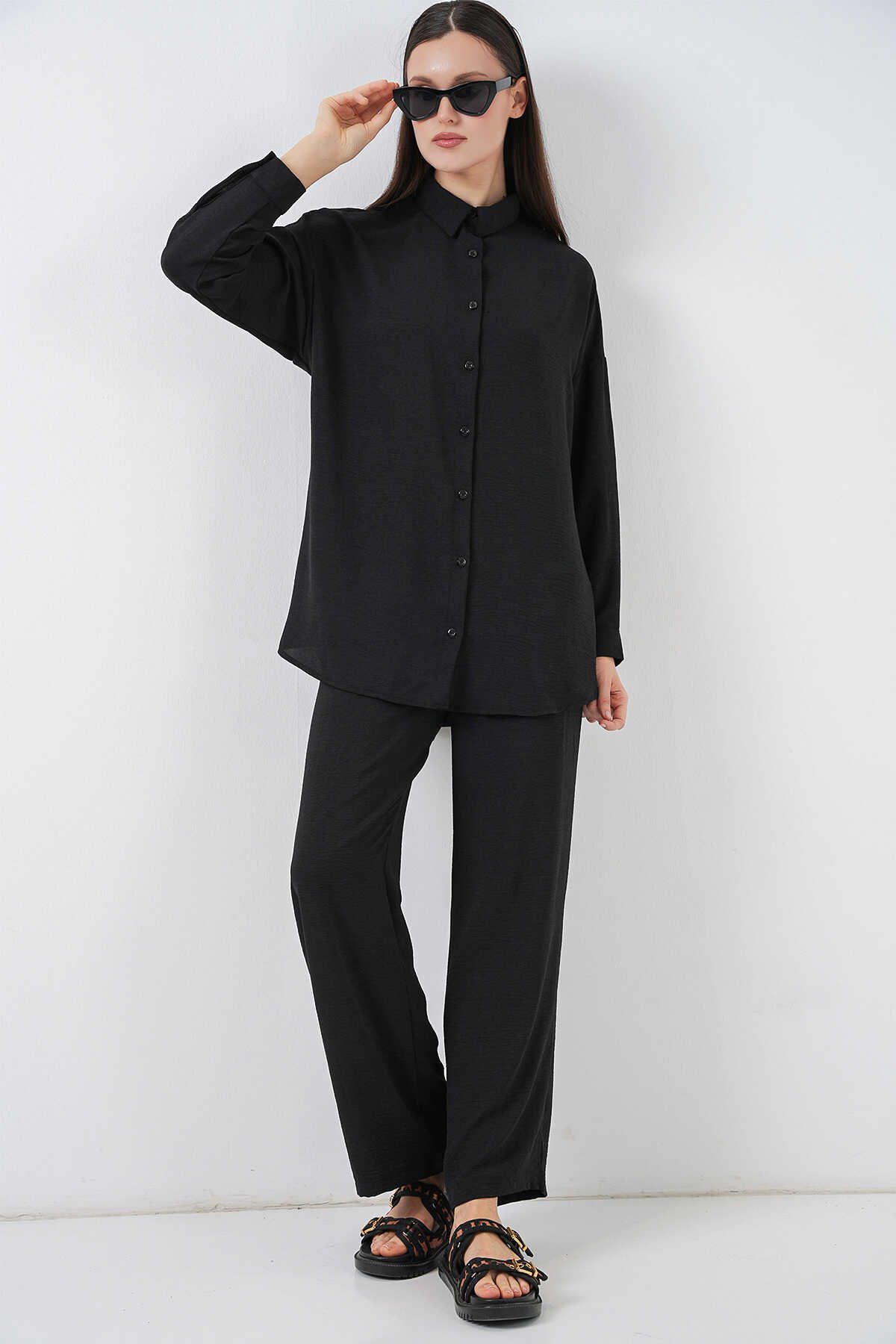 Kadın Gömlek Pantolon İkili Takım 30063 - Siyah - Kombin