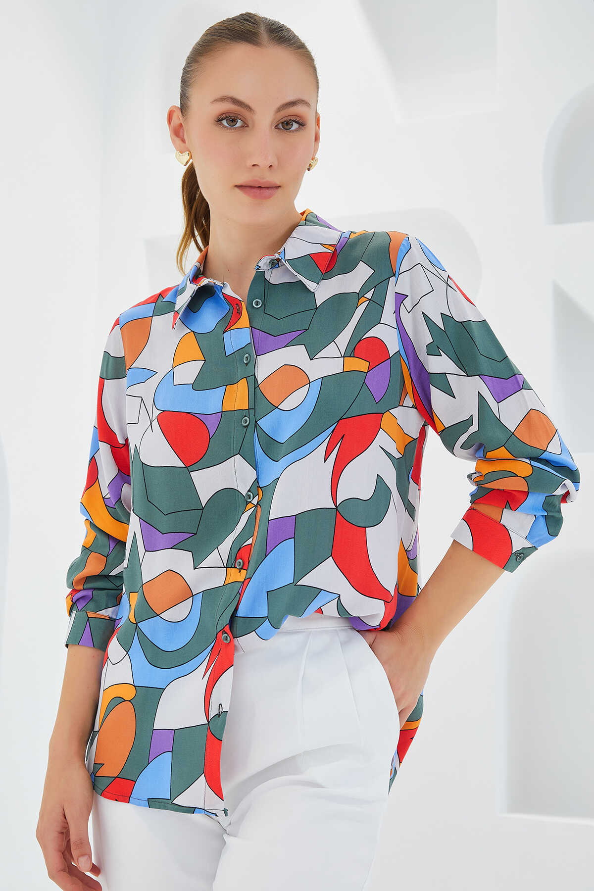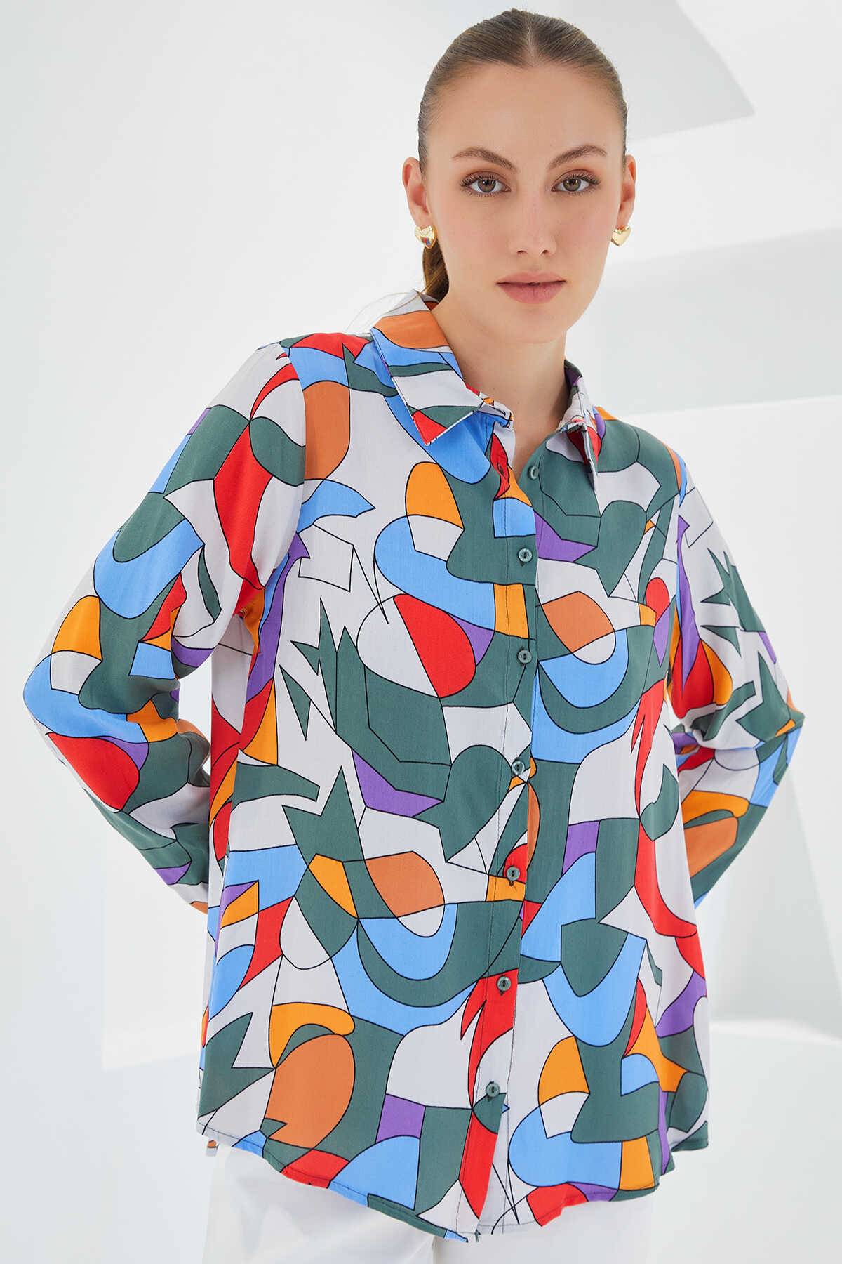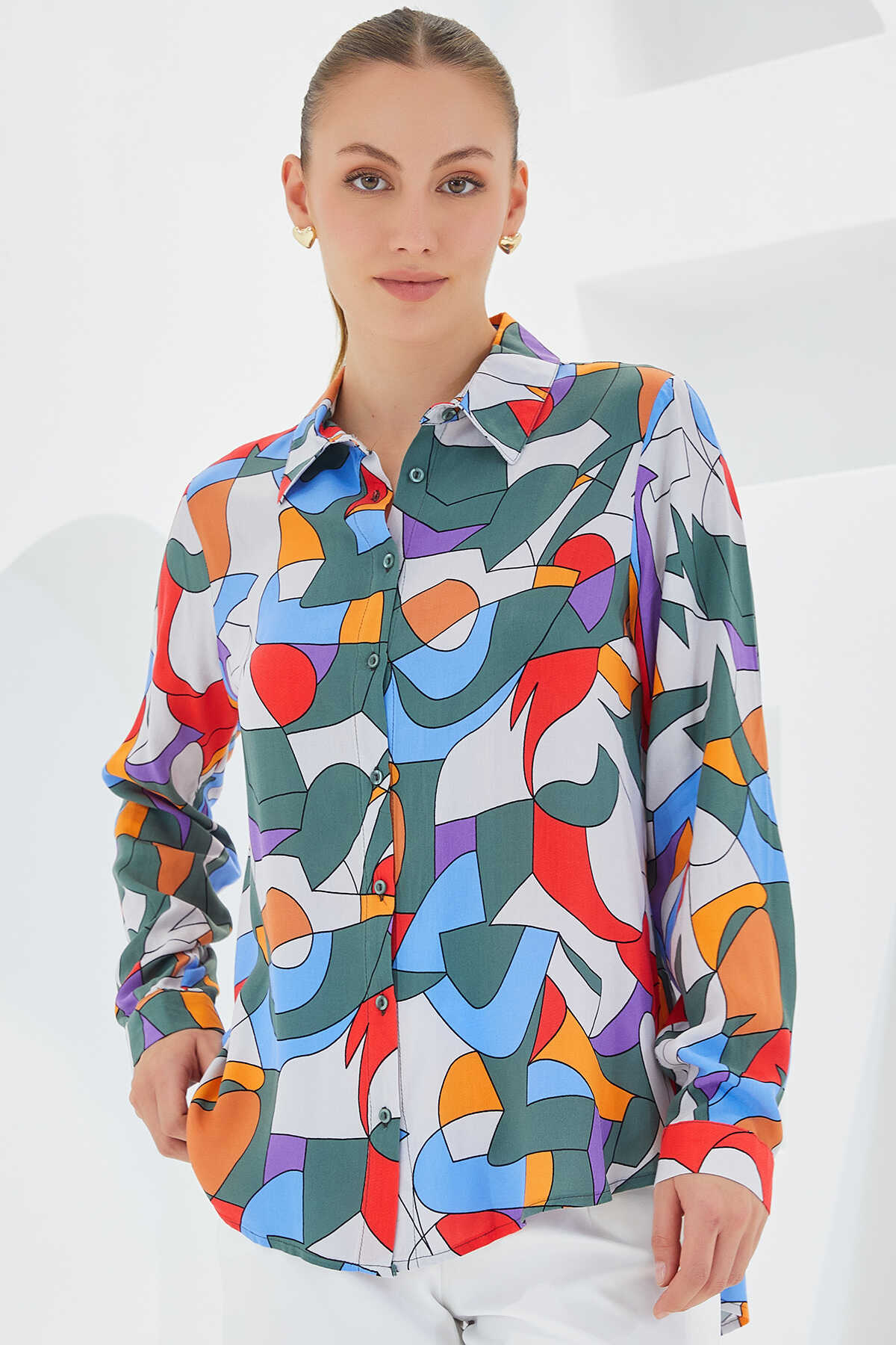 3721 Grafik Desenli Gömlek - E.Haki - Kombin