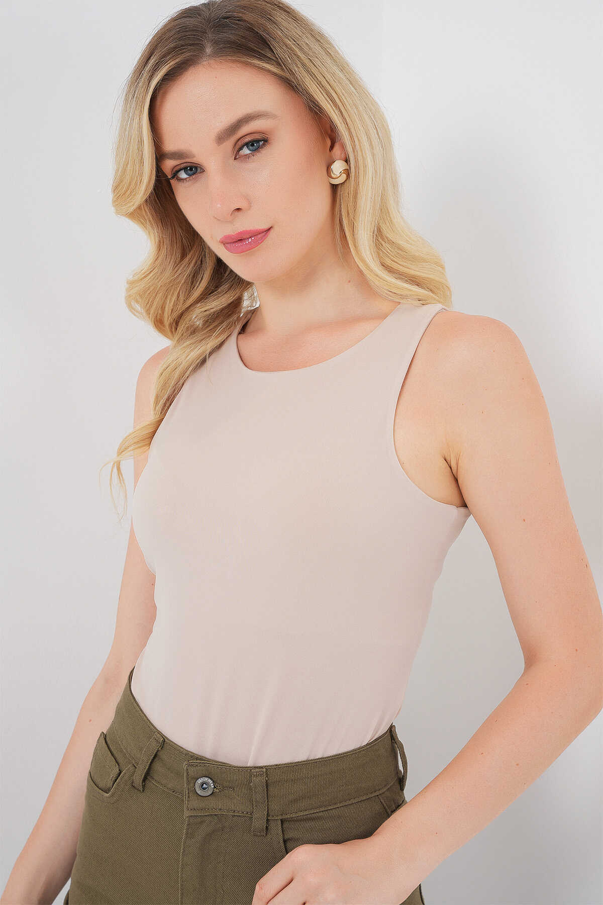 Kadın Halter Yaka Çıtçıtlı Body 972 - Bej - Kombin