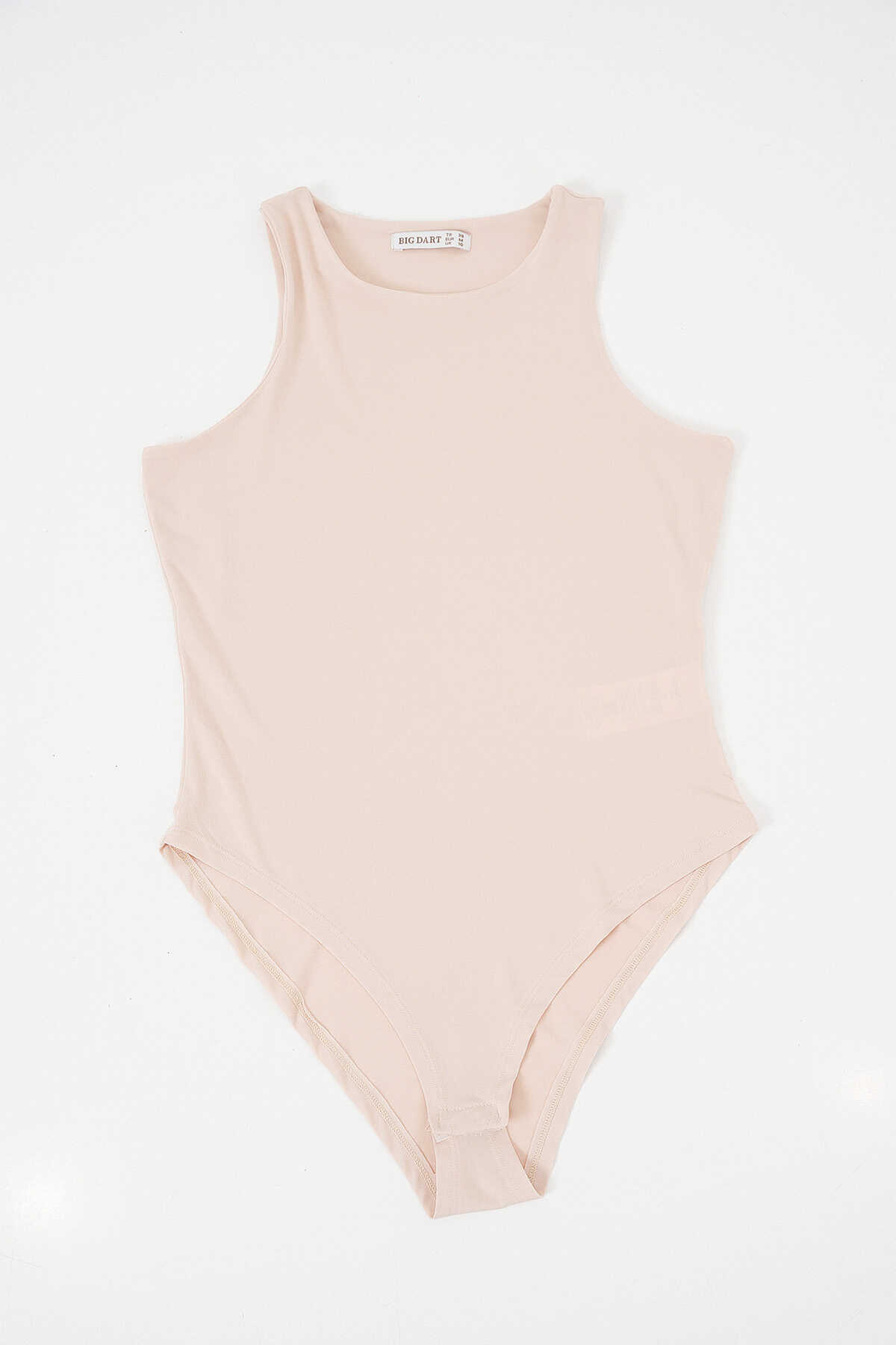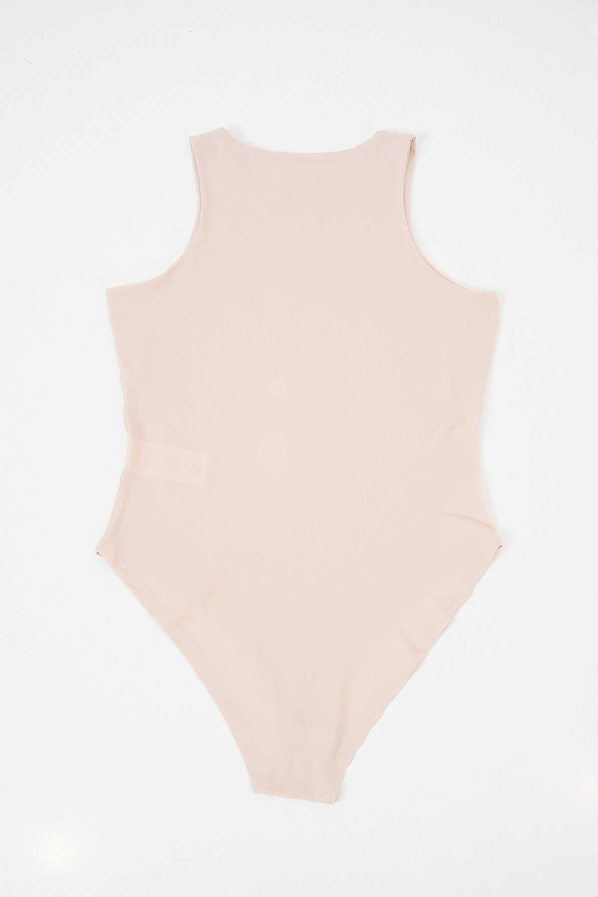 Kadın Halter Yaka Çıtçıtlı Body 972 - Bej