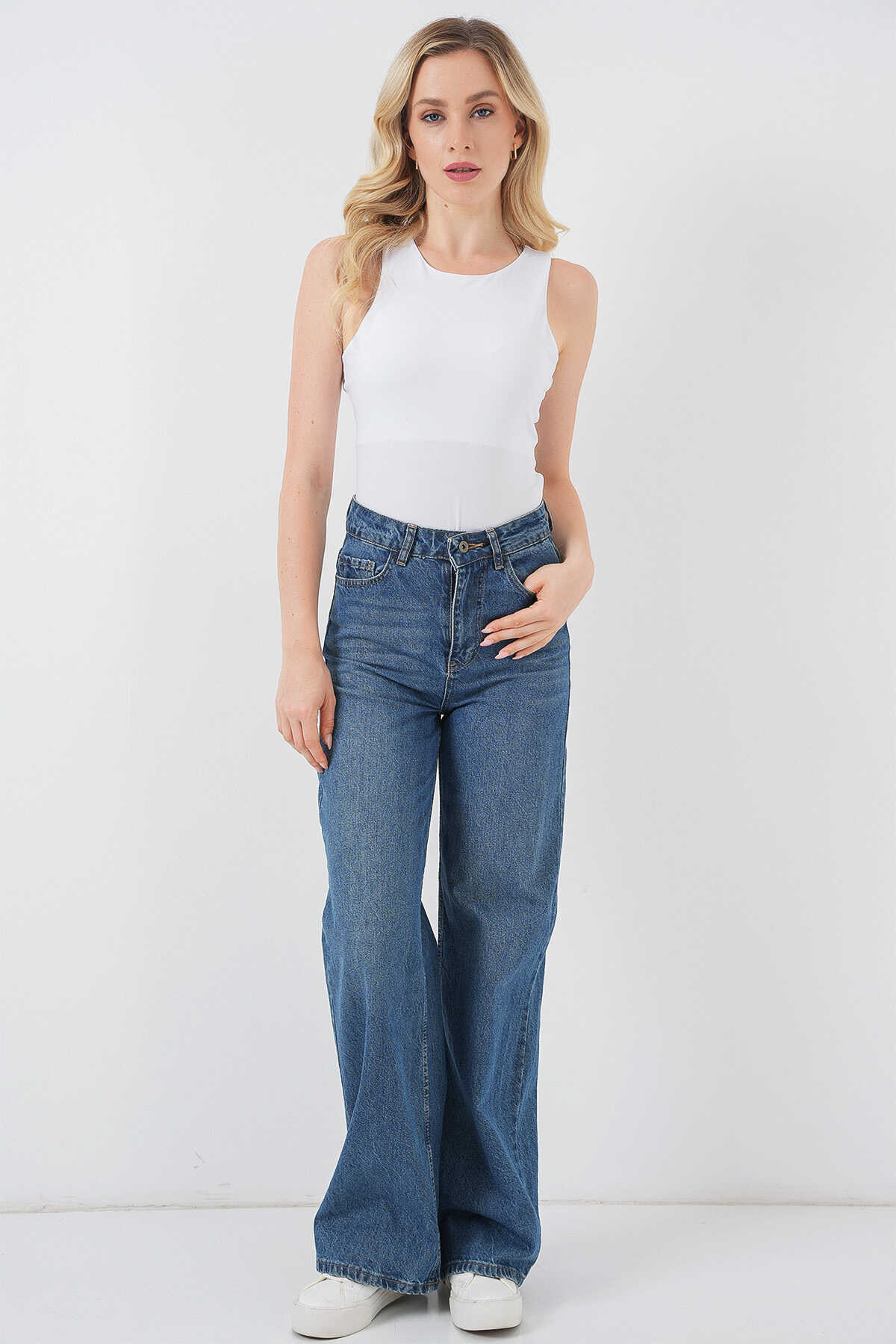 Kadın Halter Yaka Çıtçıtlı Body 972 - Beyaz - Kombin