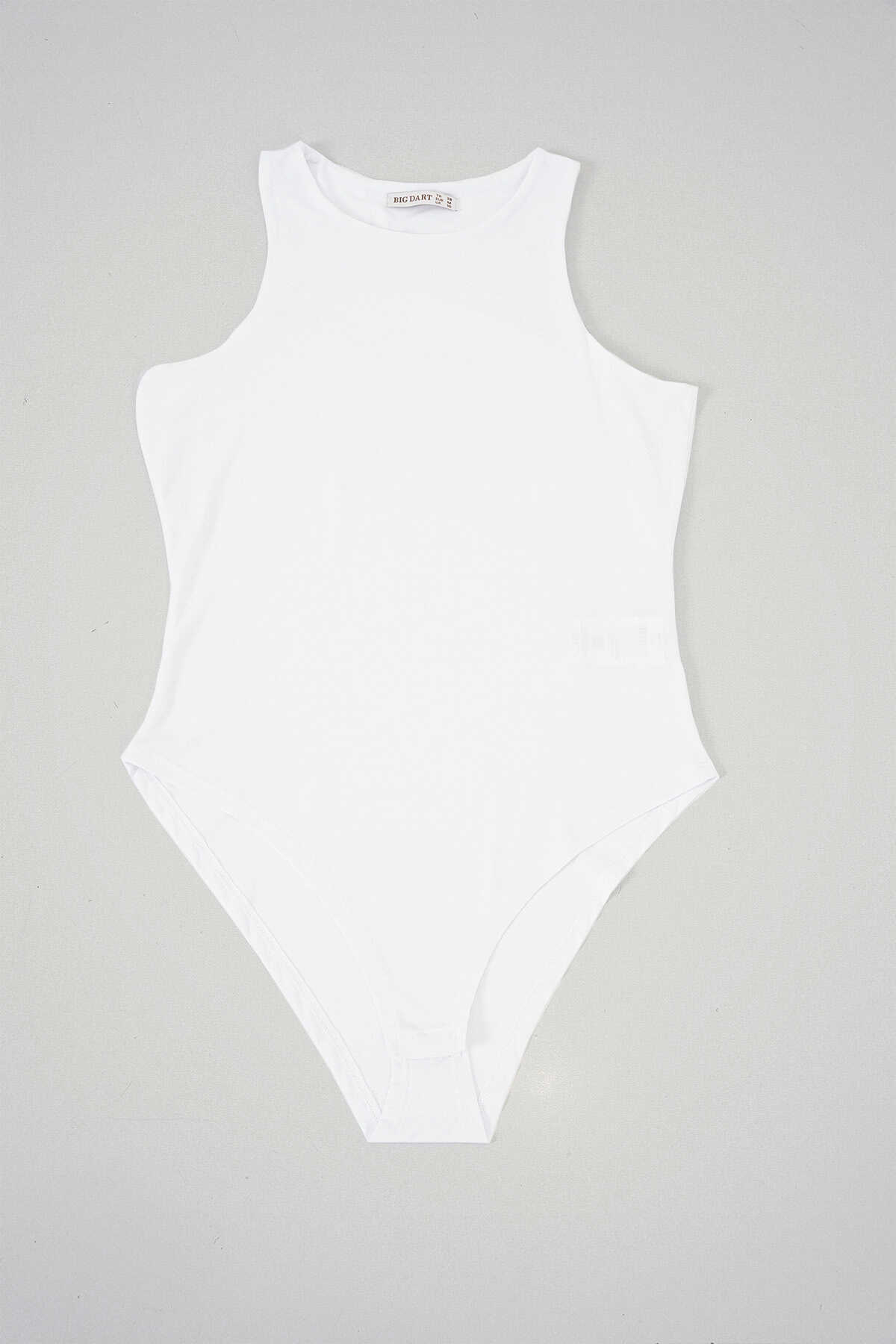 Kadın Halter Yaka Çıtçıtlı Body 972 - Beyaz