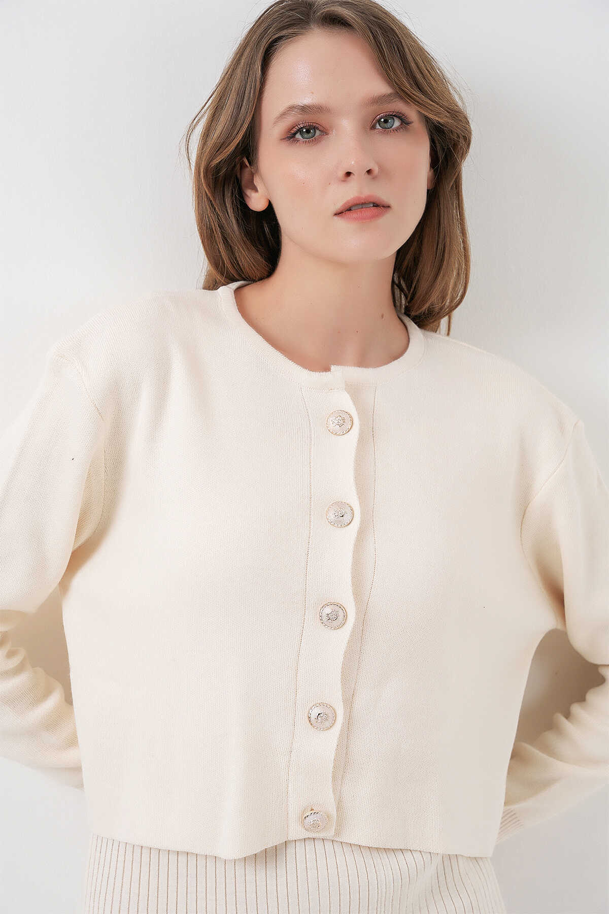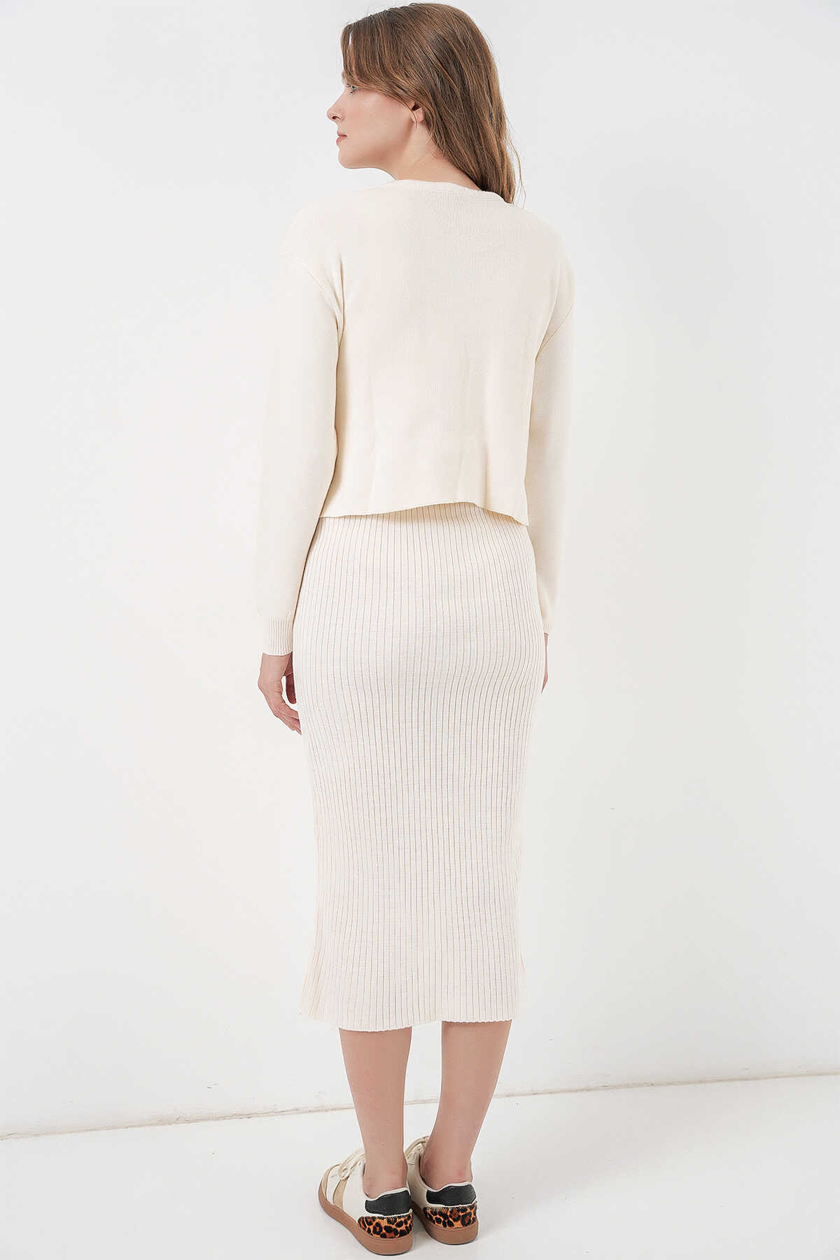 Kadın Hırka Elbise Triko İkili Takım 15960 - Ekru - Kombin