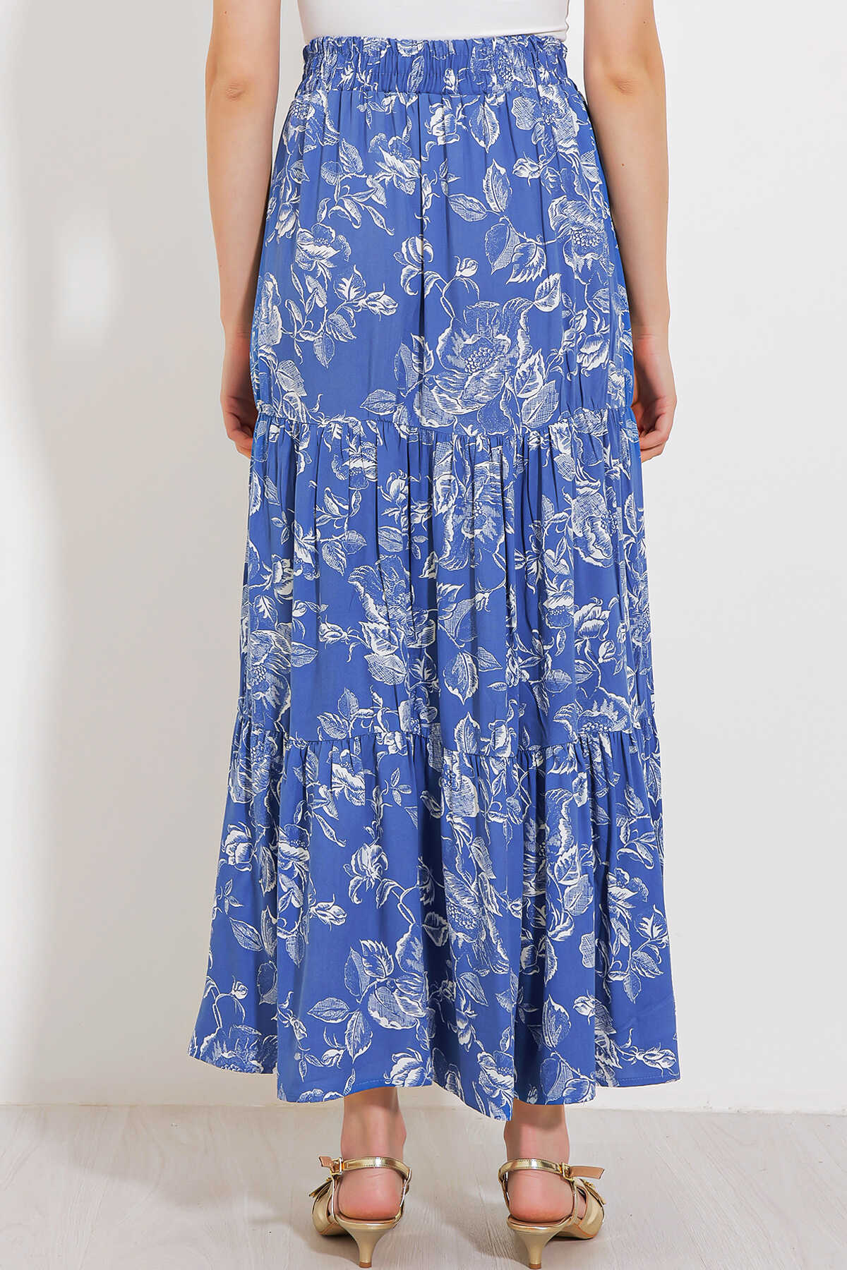 Kadın İndigo Desenli Uzun Viskon Etek 1898 - Kombin