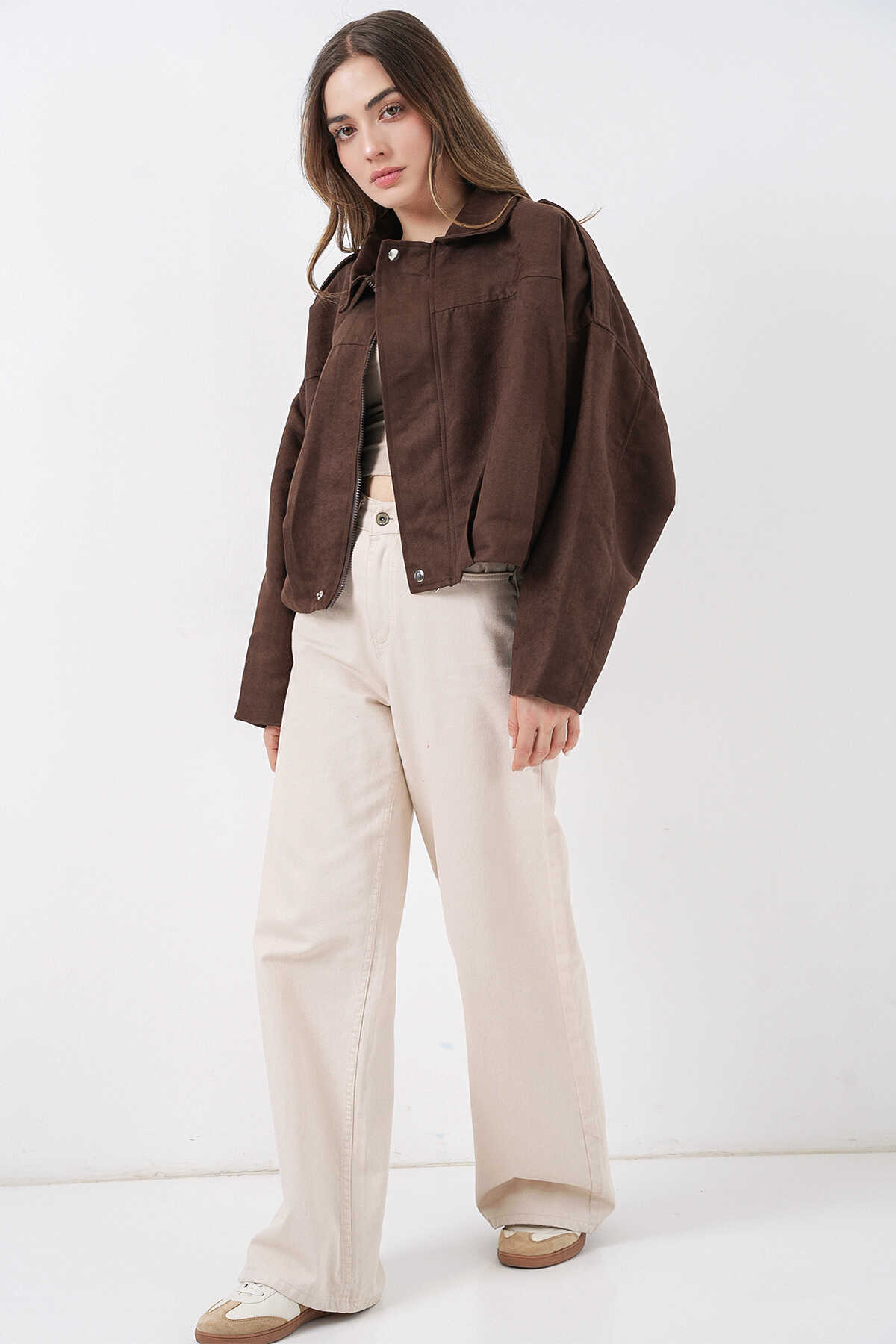 Kadın Kahverengi Oversize Süet Ceket 1055 - Kombin