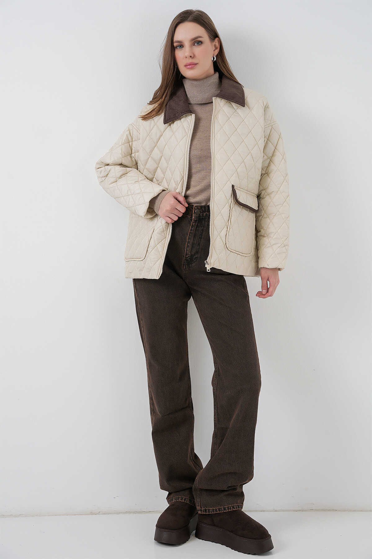 Kadın Kapitone Overisze Mont 5229 - Ekru - Kombin