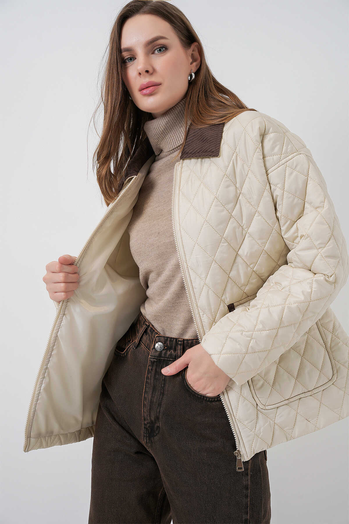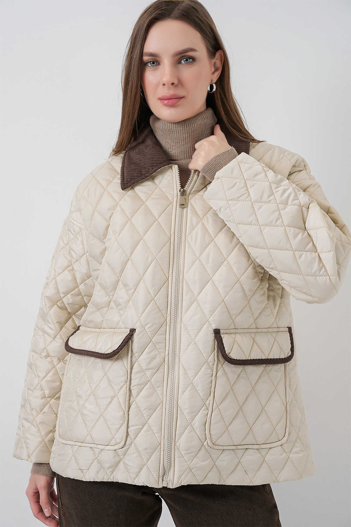 Kadın Kapitone Overisze Mont 5229 - Ekru