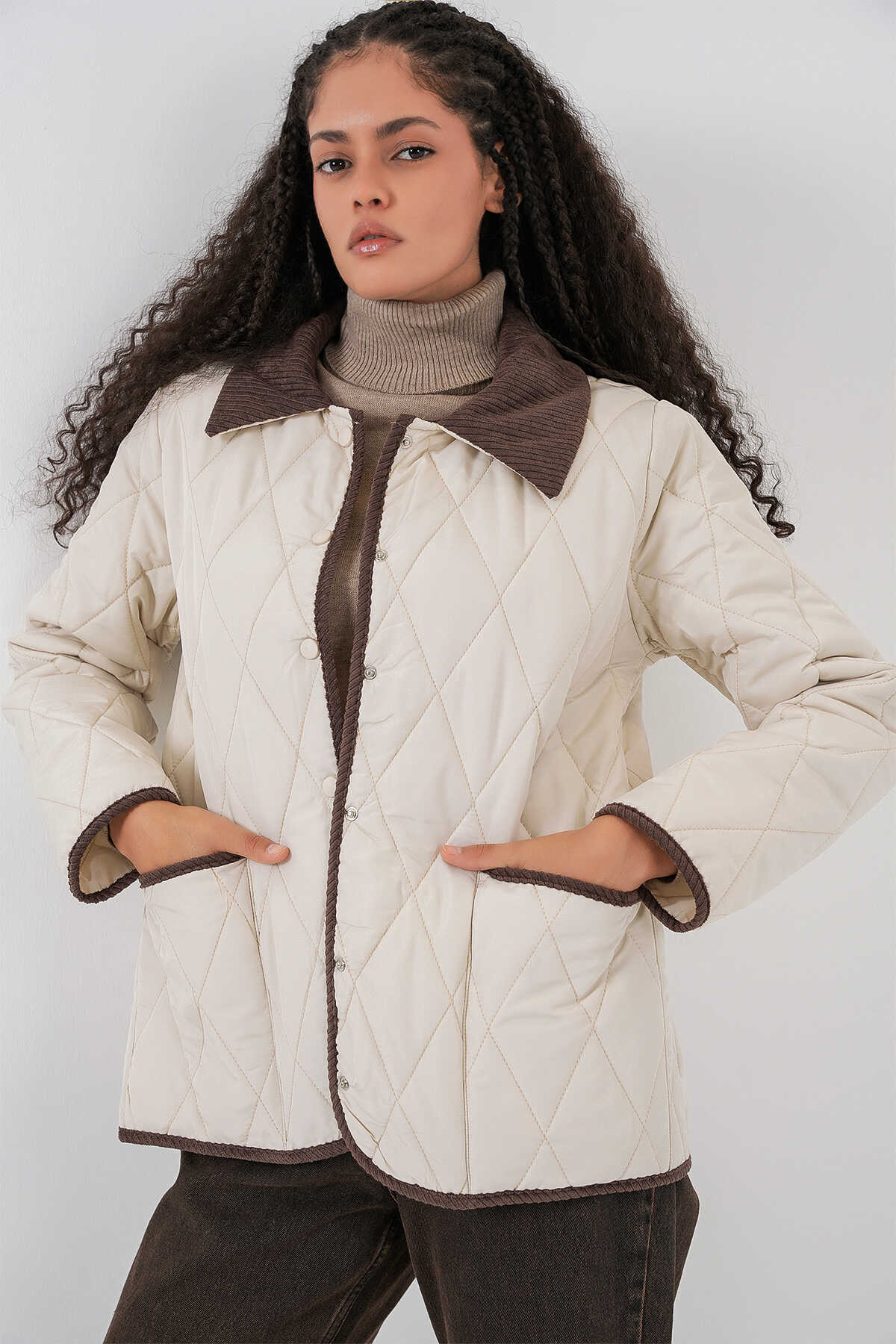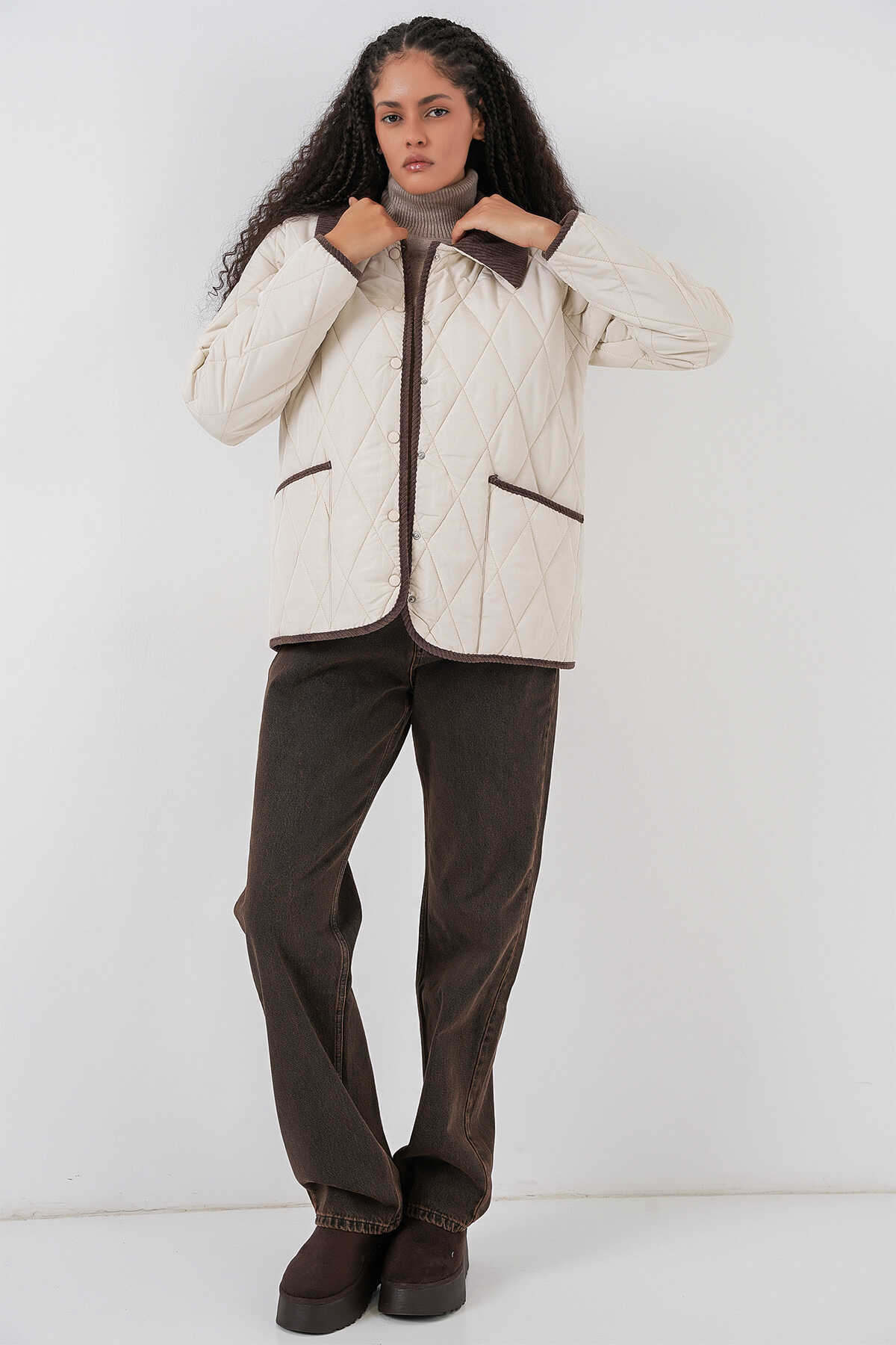 Kadin Kapitone Çift Renk Oversize Mont Ceket