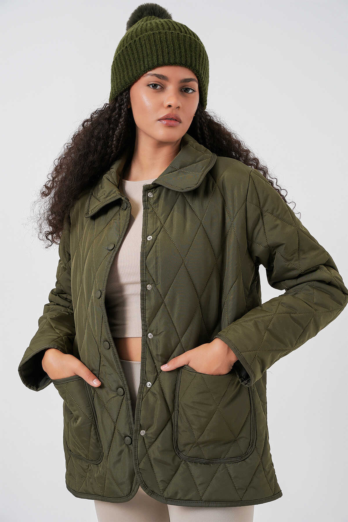 Kadin Kapitone Çift Renk Oversize Mont Ceket