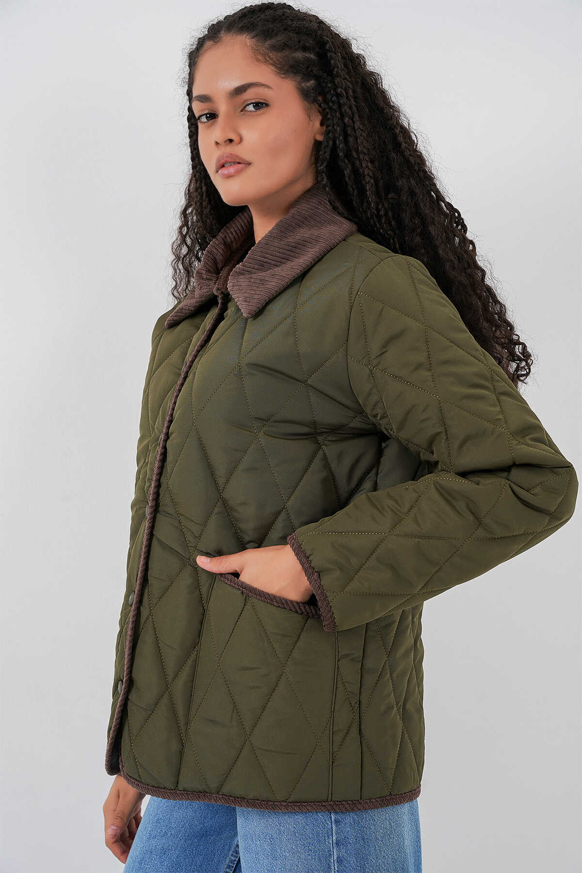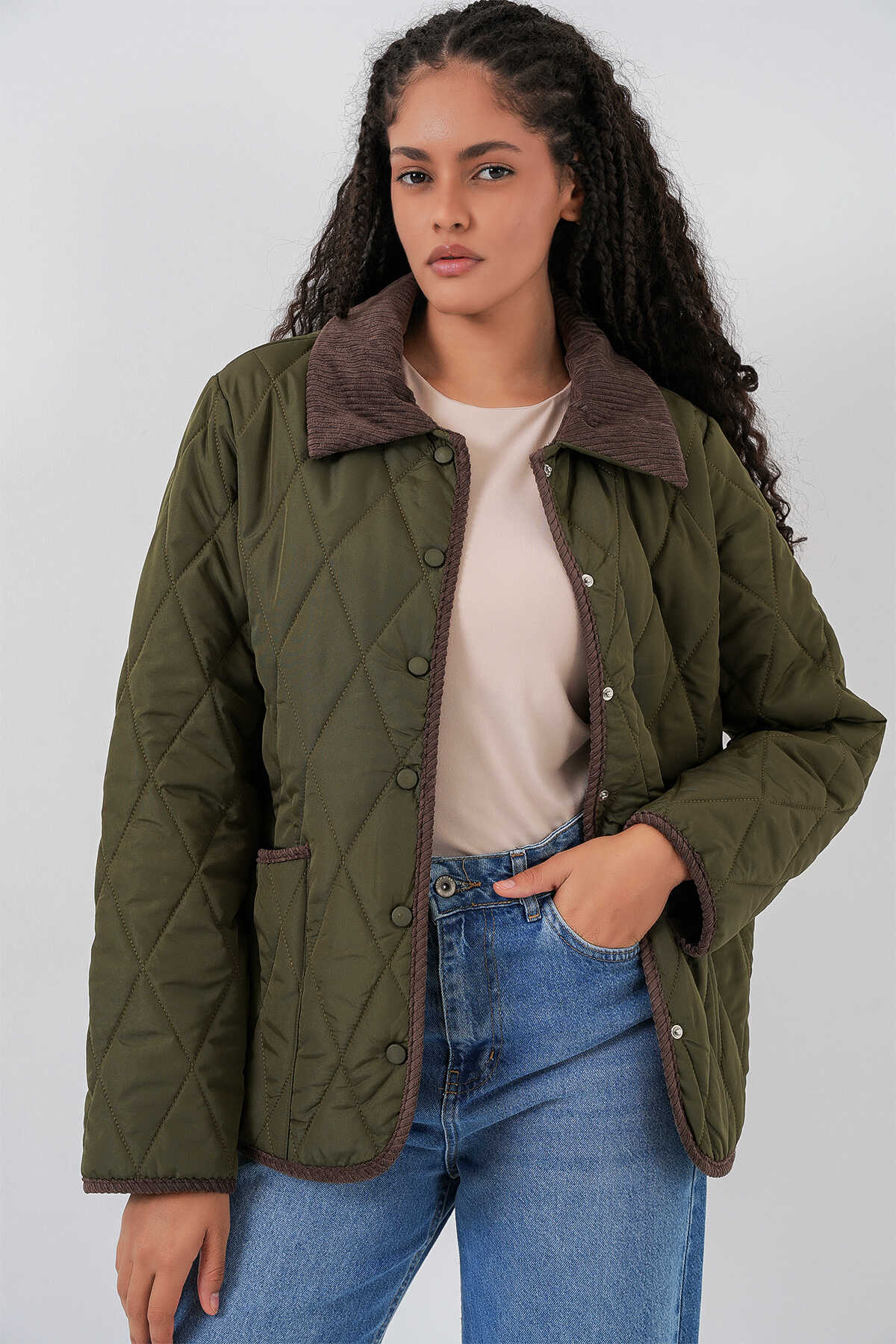 Kadin Kapitone Çift Renk Oversize Mont Ceket