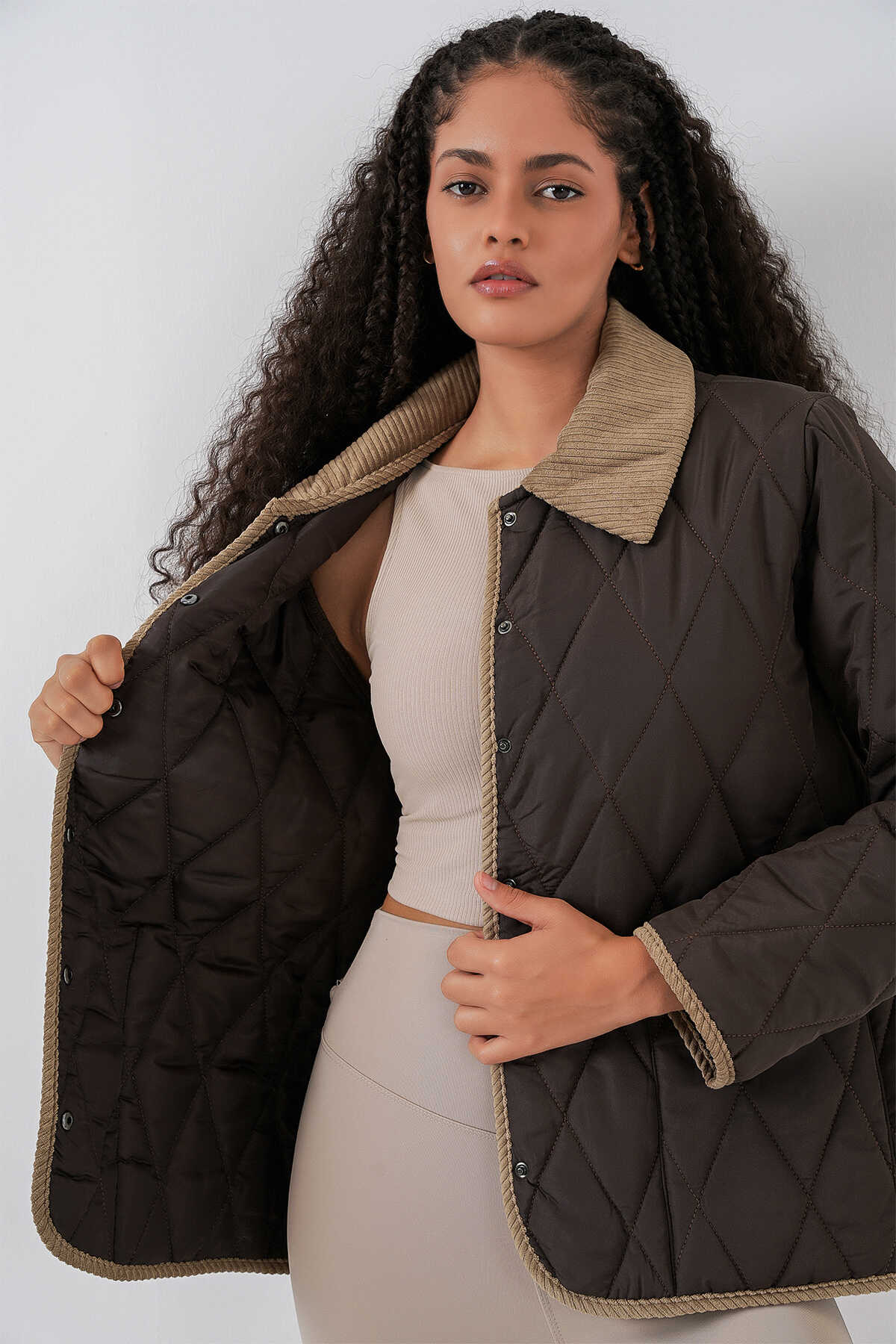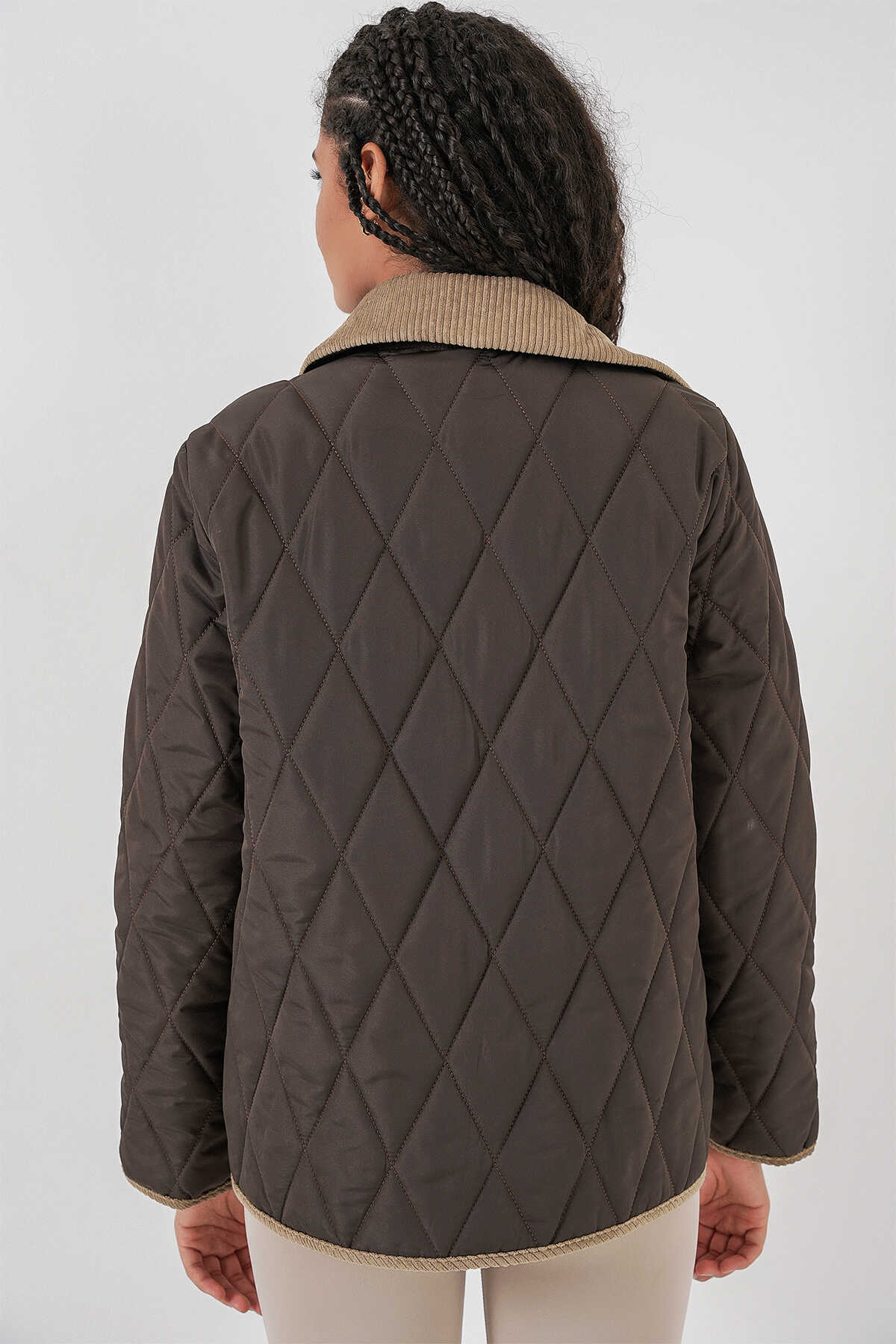 Kadin Kapitone Çift Renk Oversize Mont Ceket