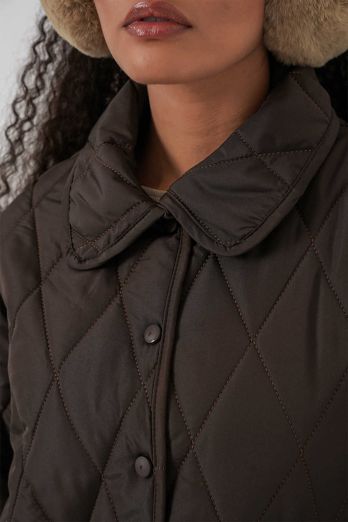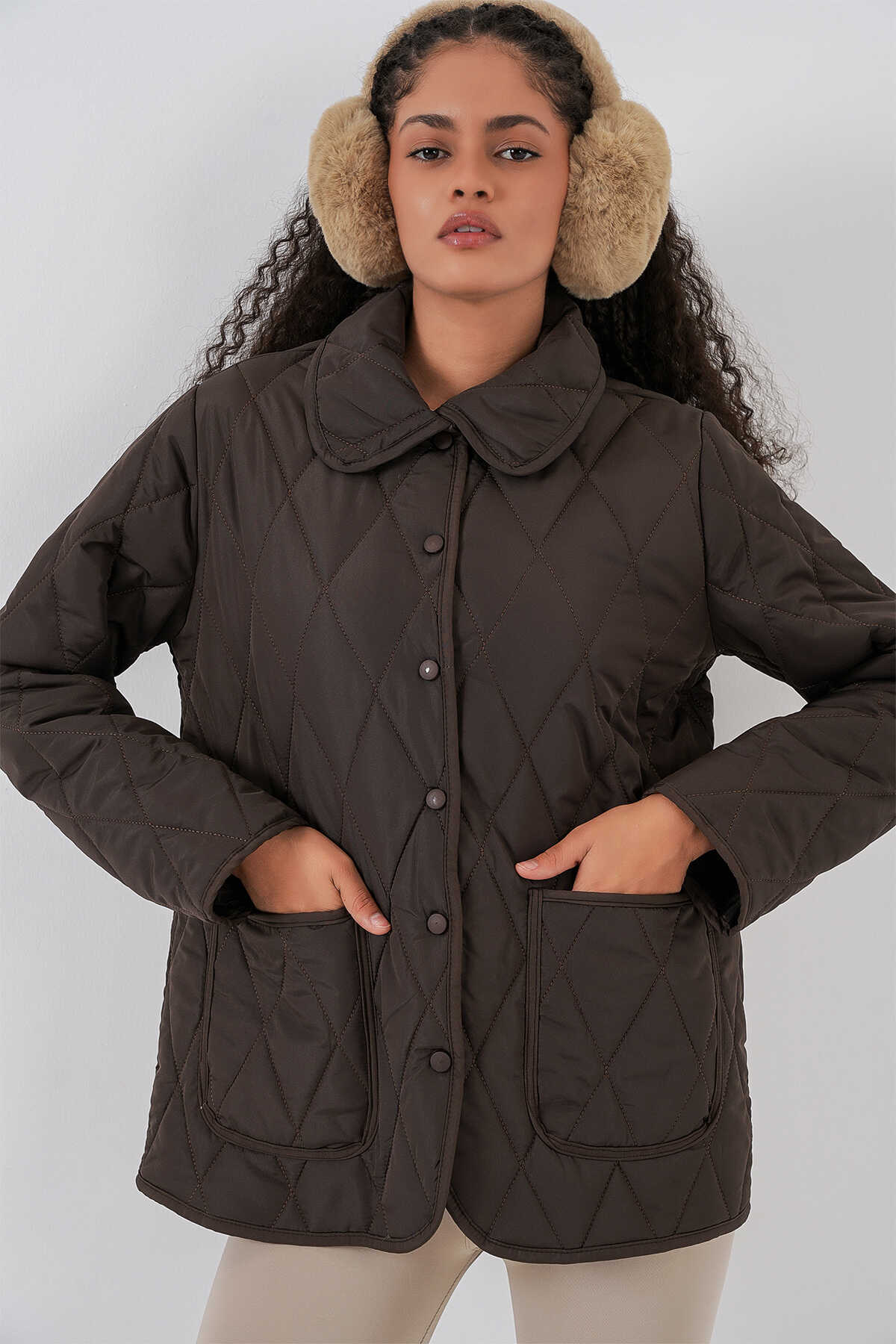 Kadın Kapitone Oversize Mont 5226 - Kahverengi - Kombin