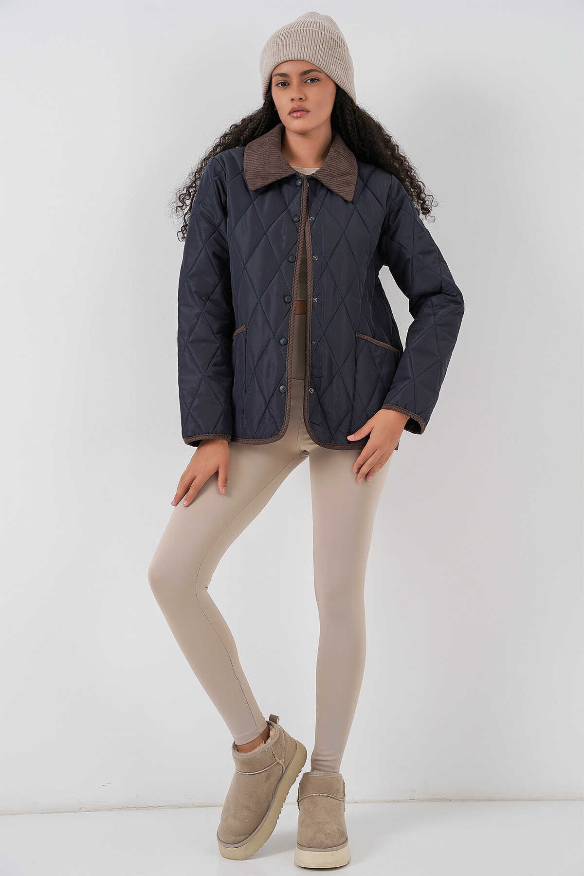 Kadın Kapitone Oversize Mont 5226 - Lacivert Kahve - Kombin