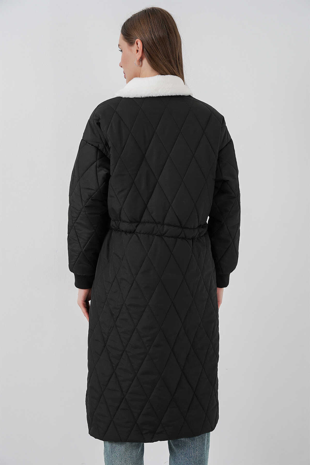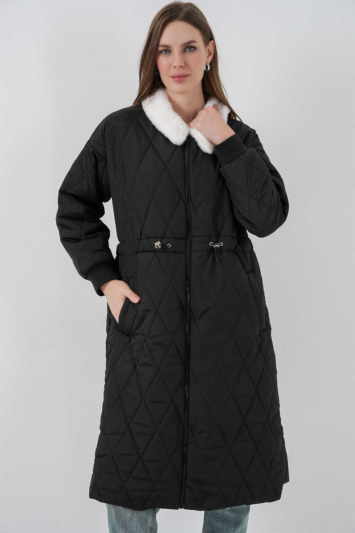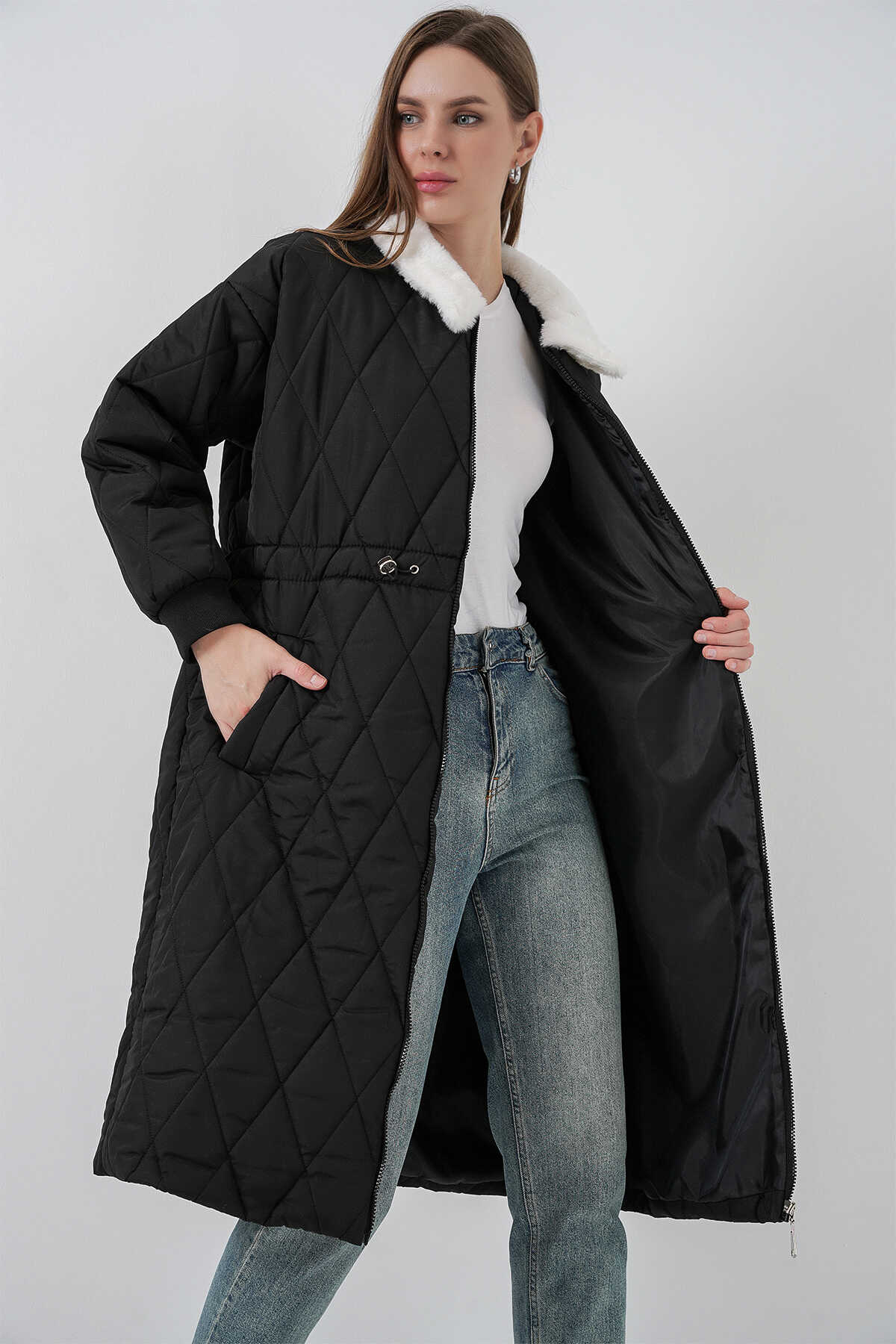 Kadın Kapitone Uzun Şişme Mont 5221 - Siyah - Kombin