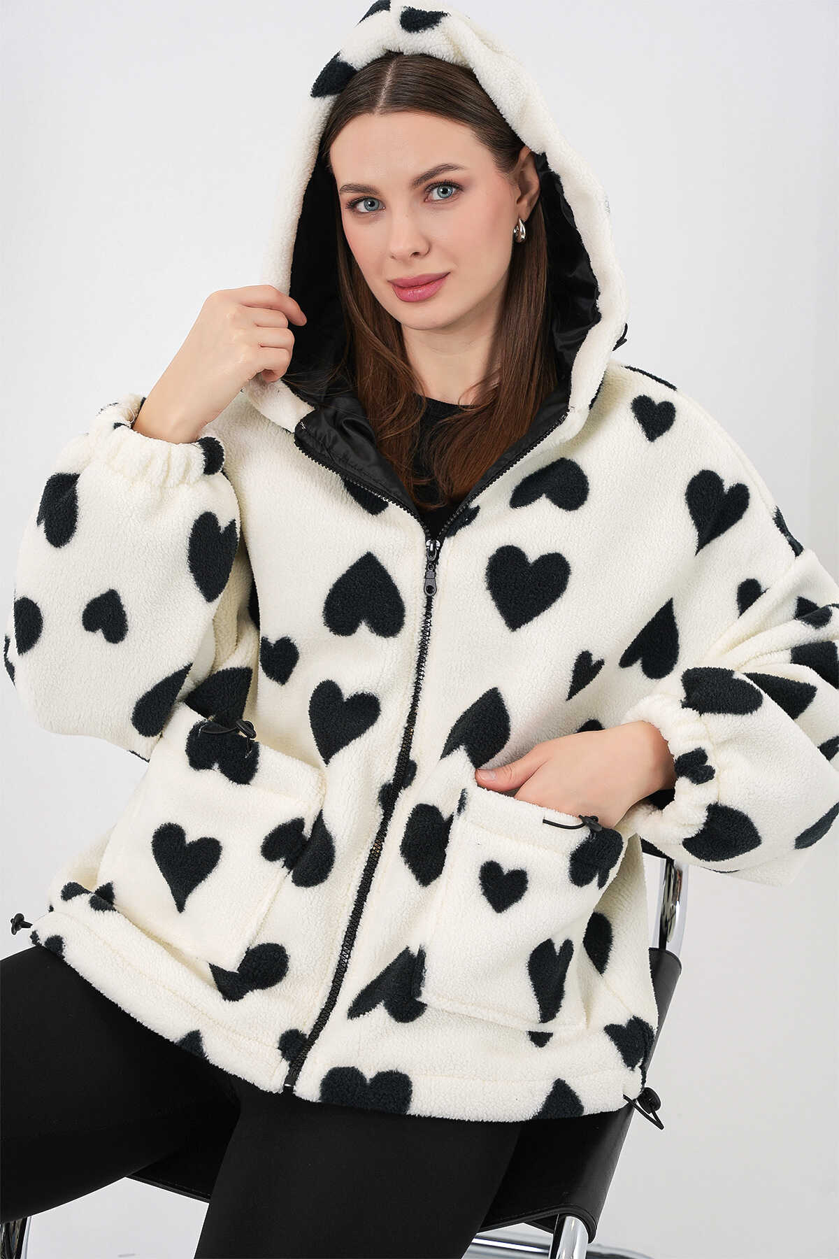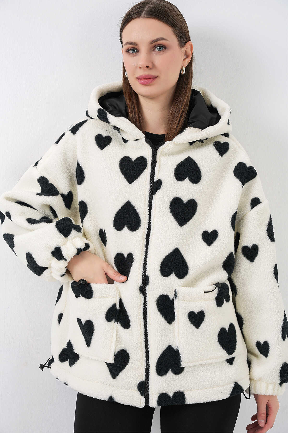 Kadin Kapüsonlu Pelus Ceket 5236ÜRÜNÜMÜZ ASTARLIDIR.