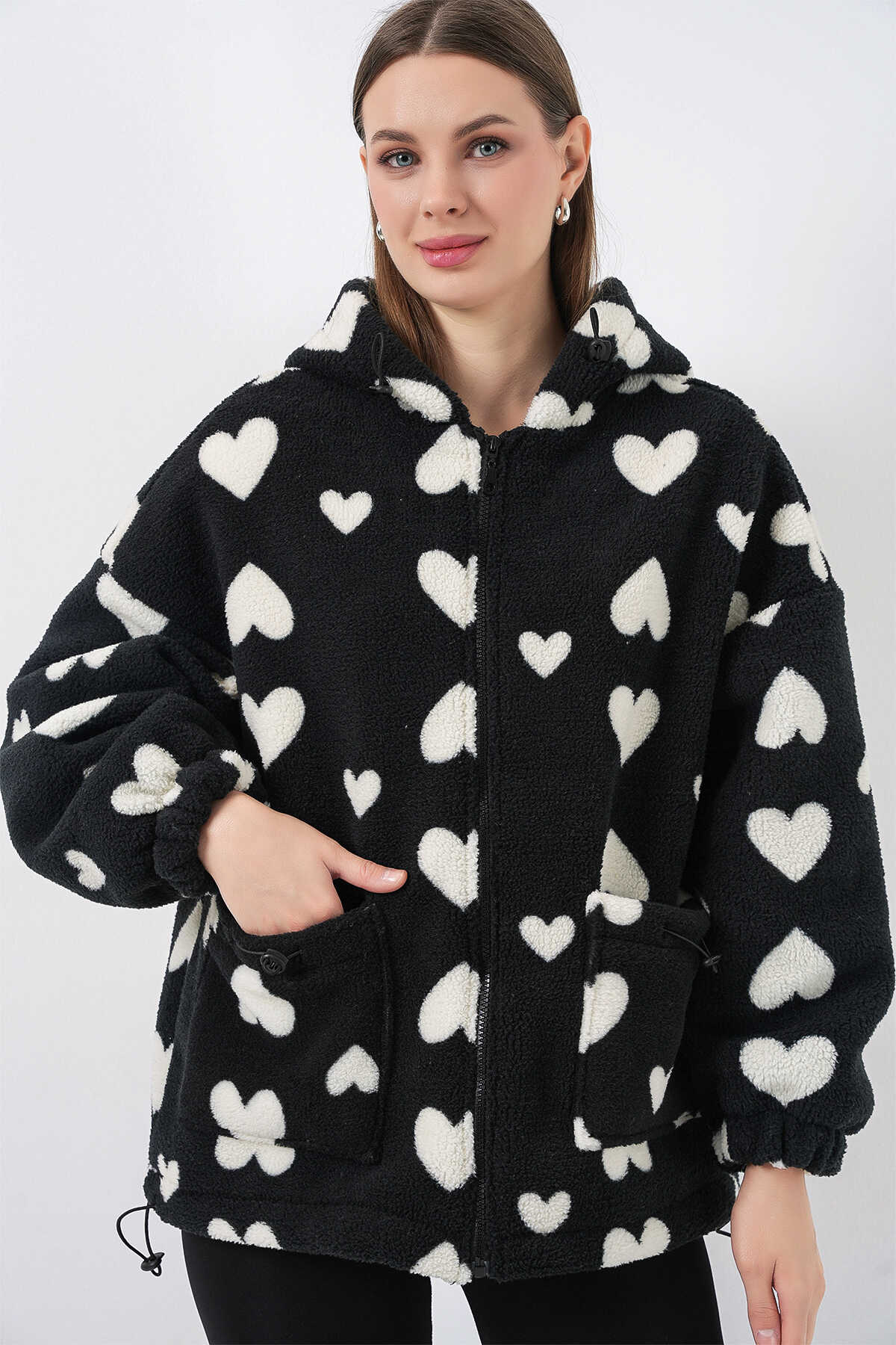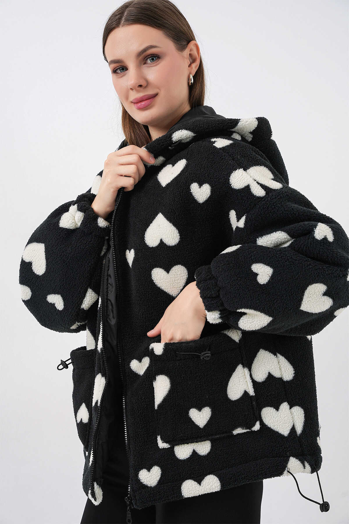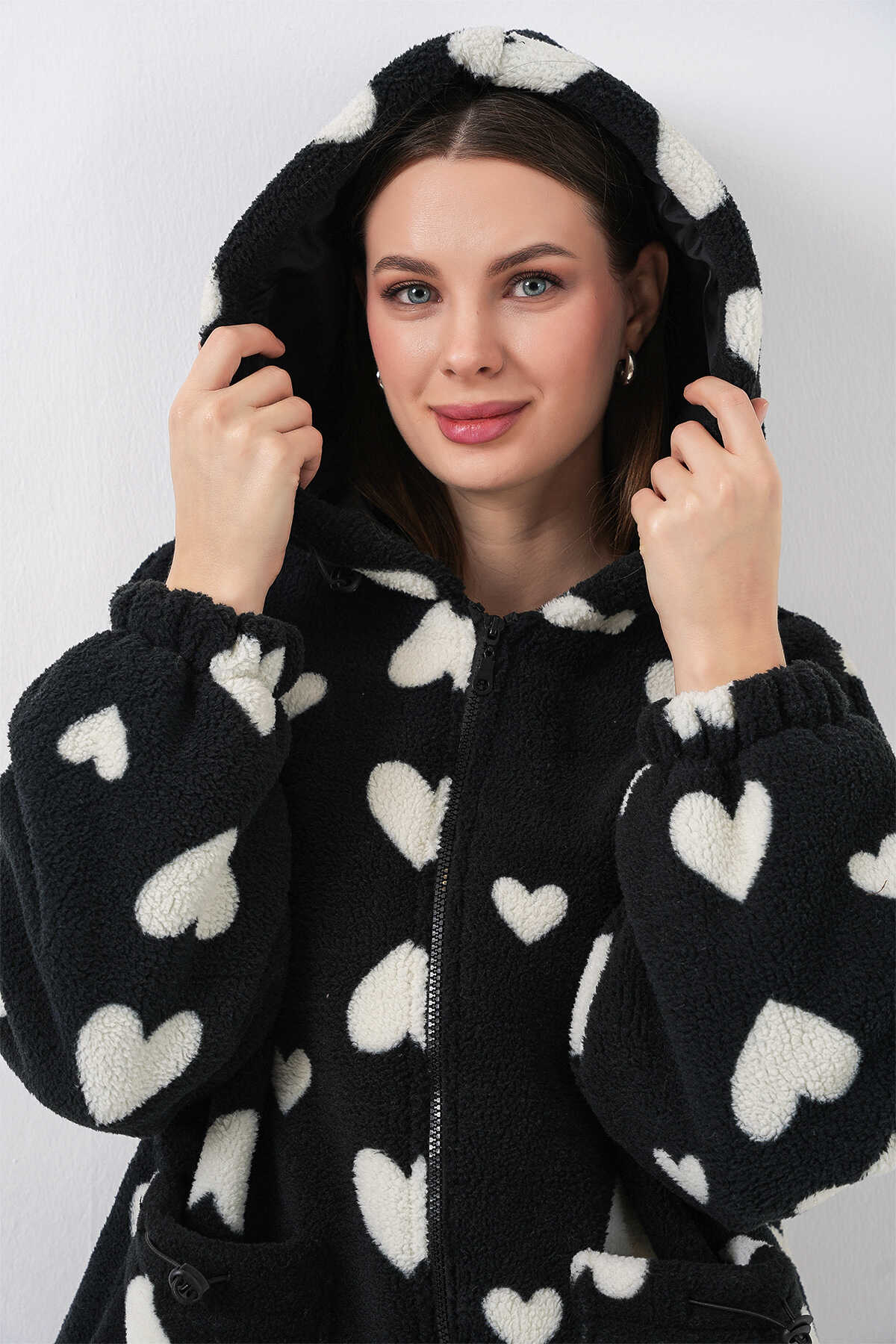 Kadin Kapüsonlu Pelus Ceket 5236ÜRÜNÜMÜZ ASTARLIDIR.
