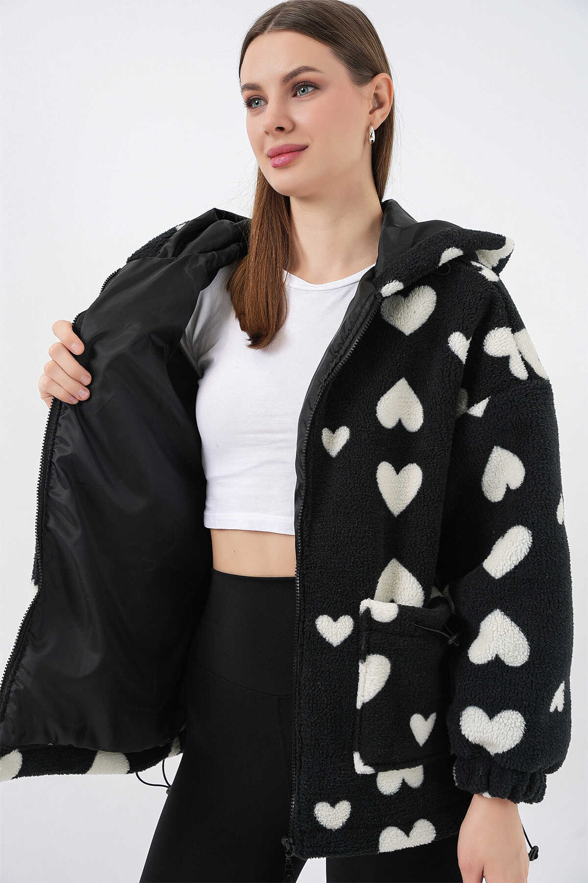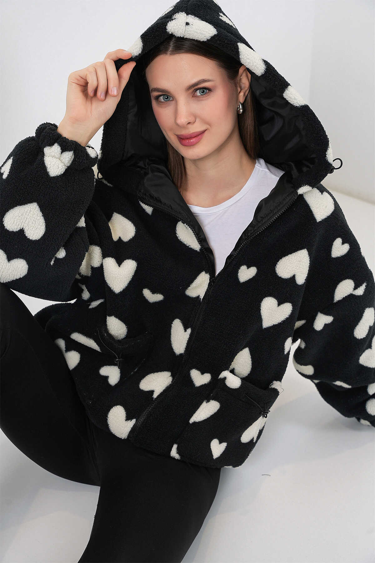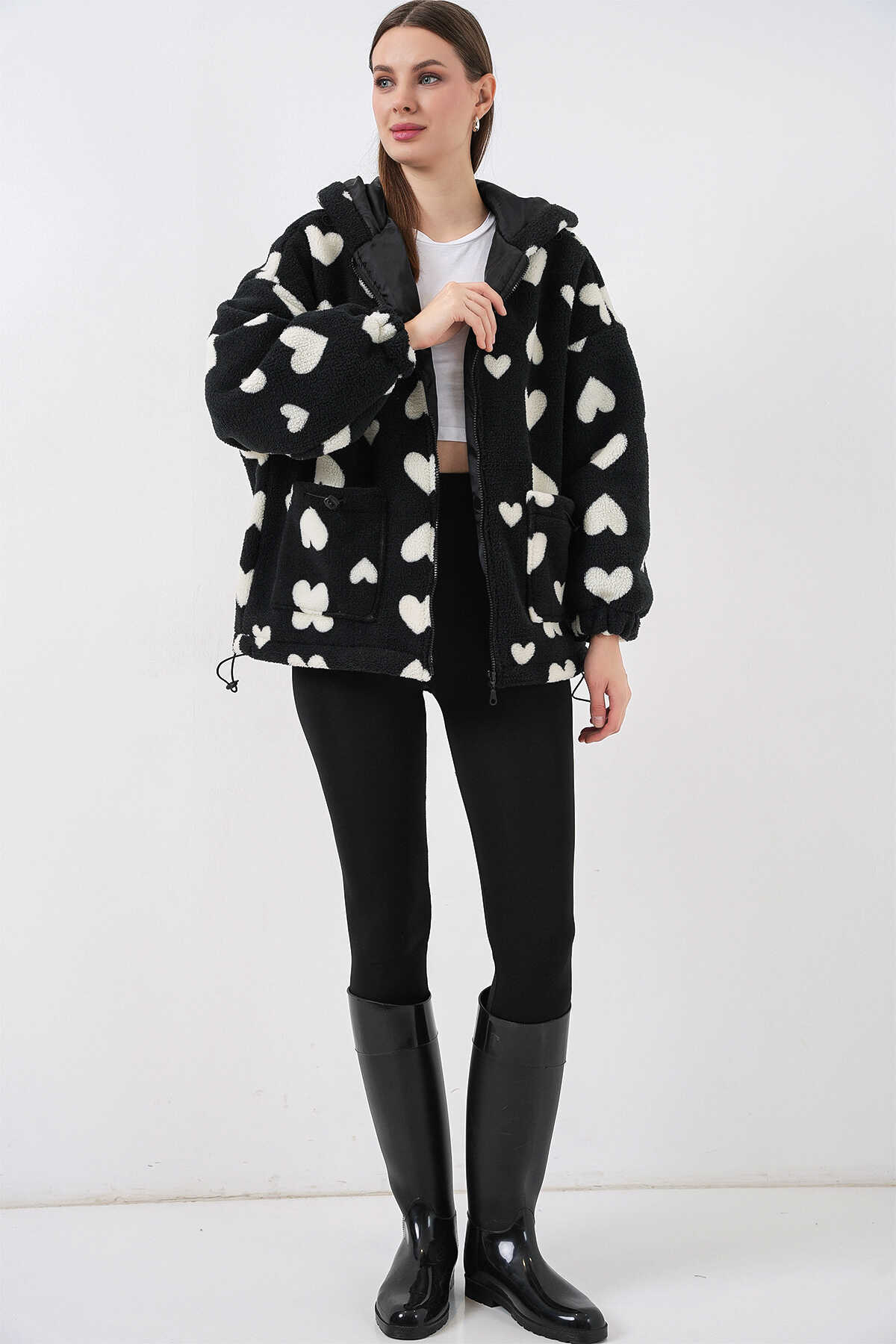 Kadin Kapüsonlu Pelus Ceket 5236ÜRÜNÜMÜZ ASTARLIDIR.
