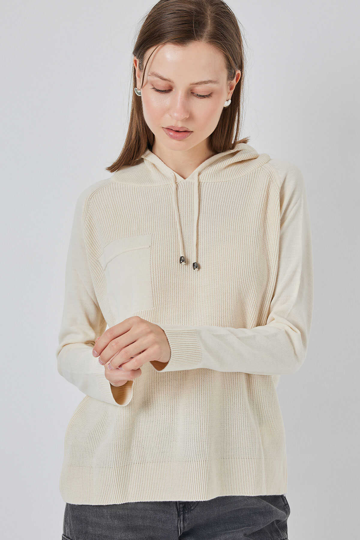 Kadin Kapüsonlu Triko Kazak