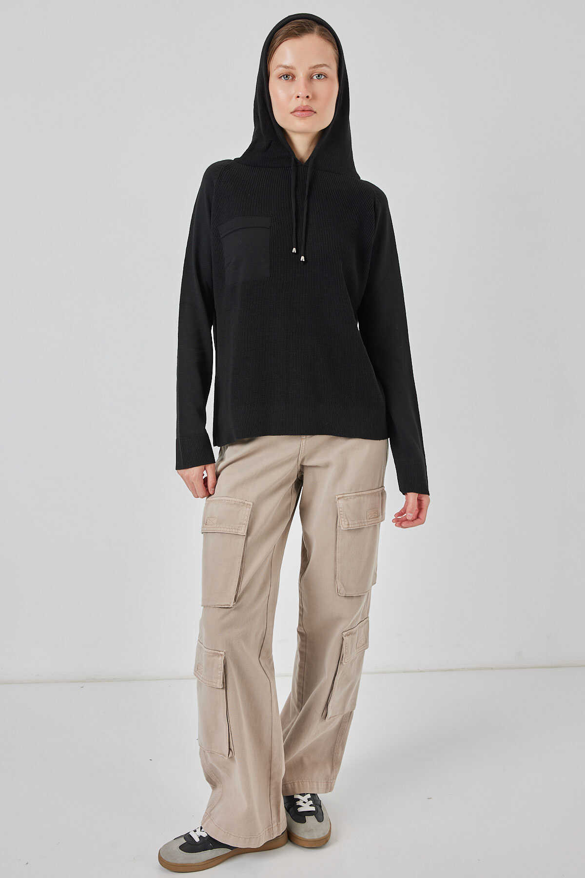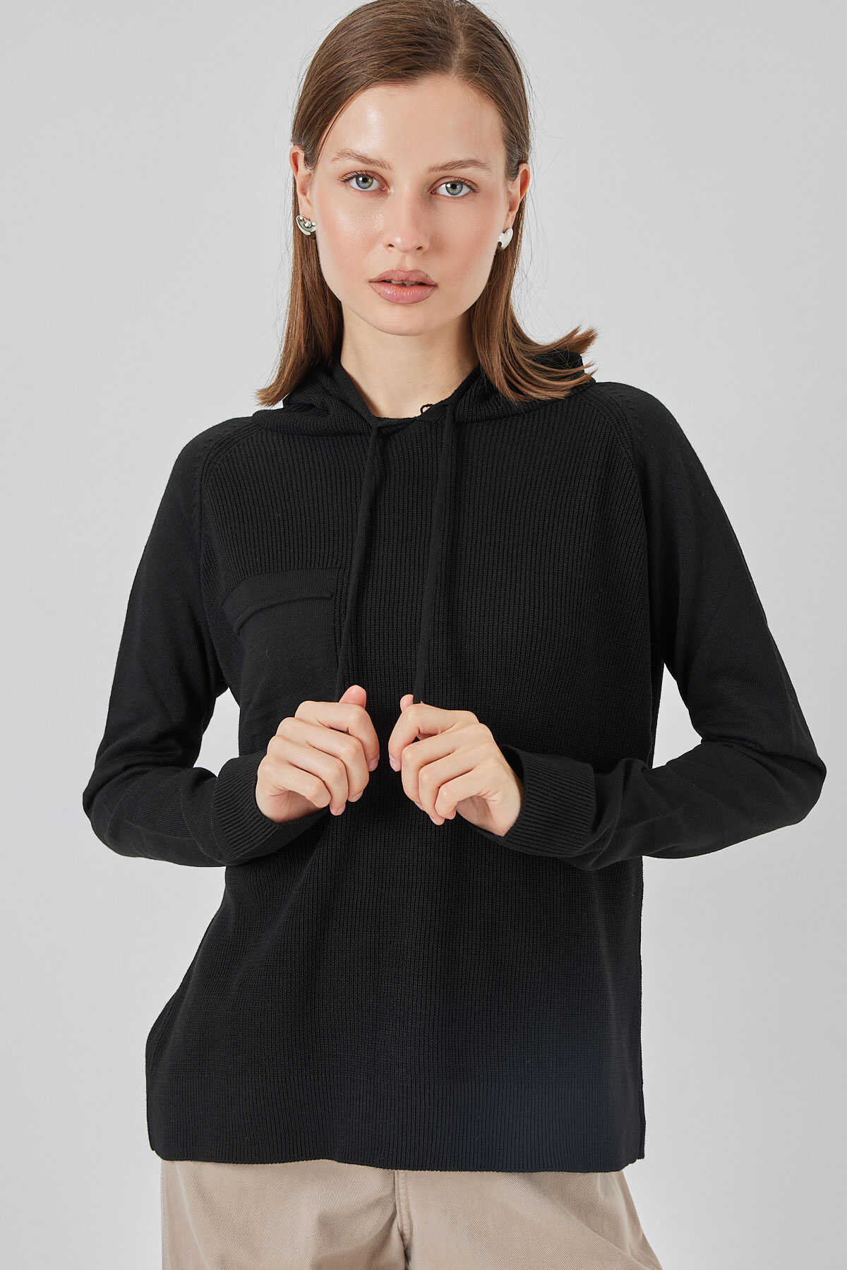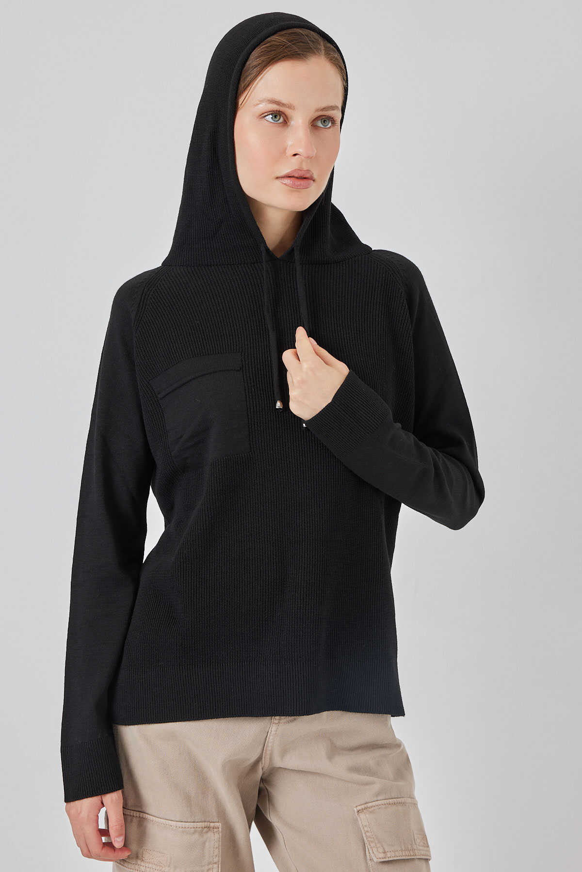 Kadin Kapüsonlu Triko Kazak