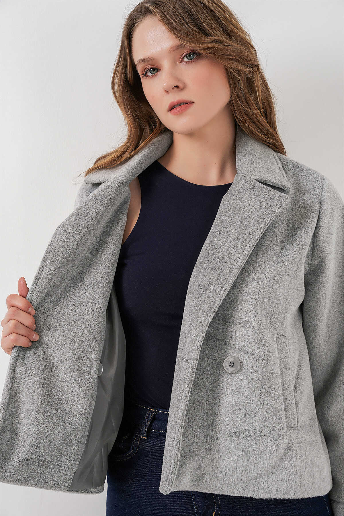 Kadın Kısa Kaşe Ceket 0725 - A.Gri - Kombin