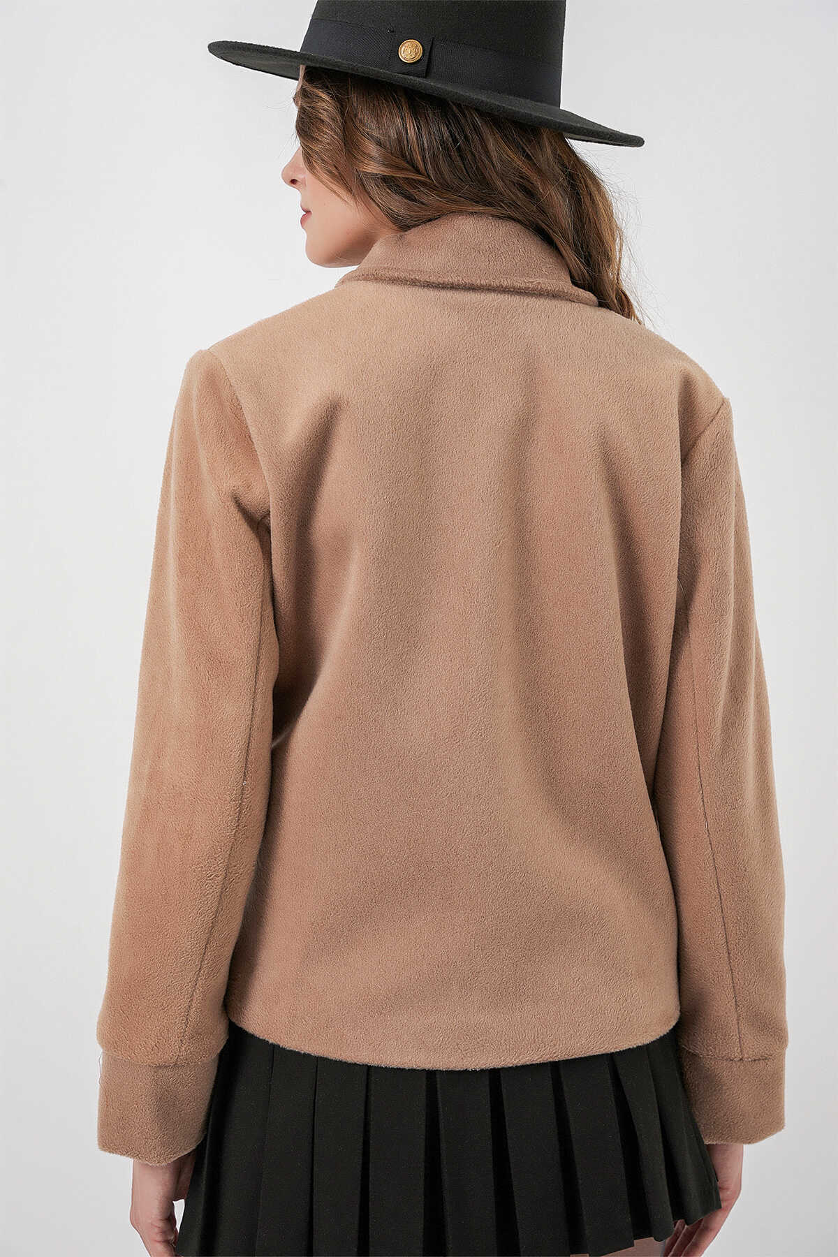 Kadın Kısa Kaşe Ceket 0725 - Bisküvi - Kombin