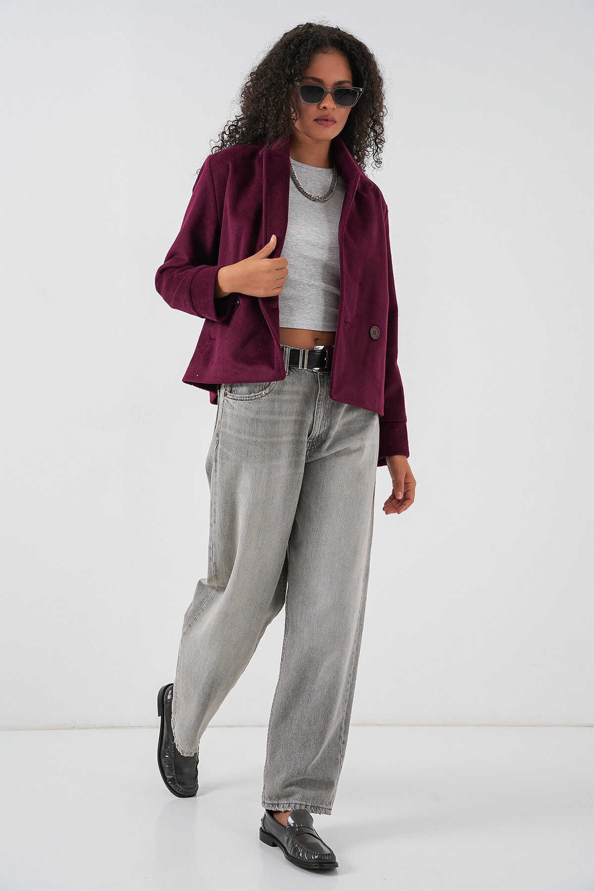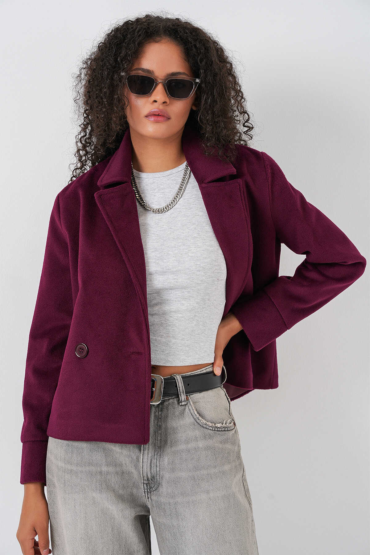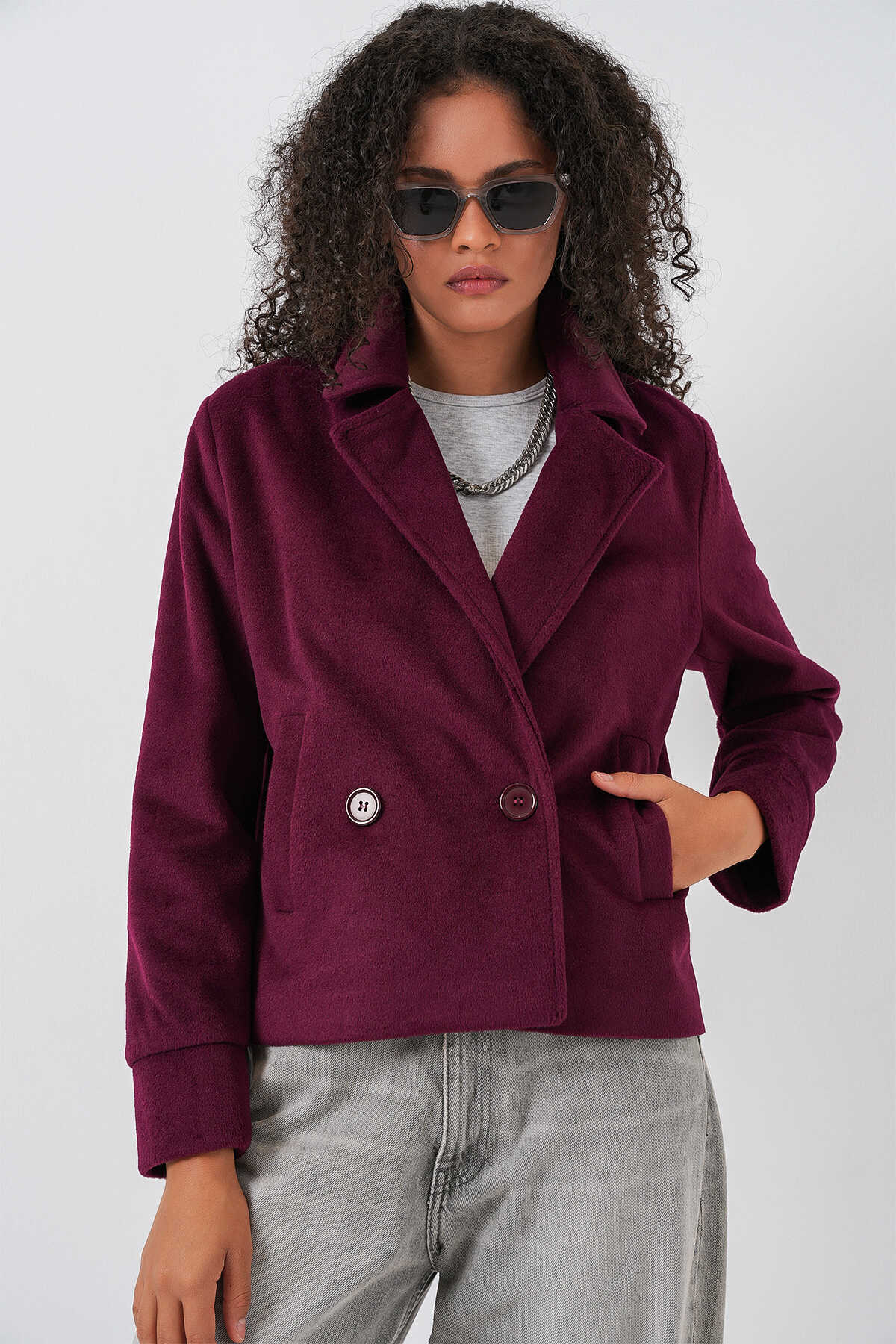 Kadın Kısa Kaşe Ceket 0725 - Bordo - Kombin