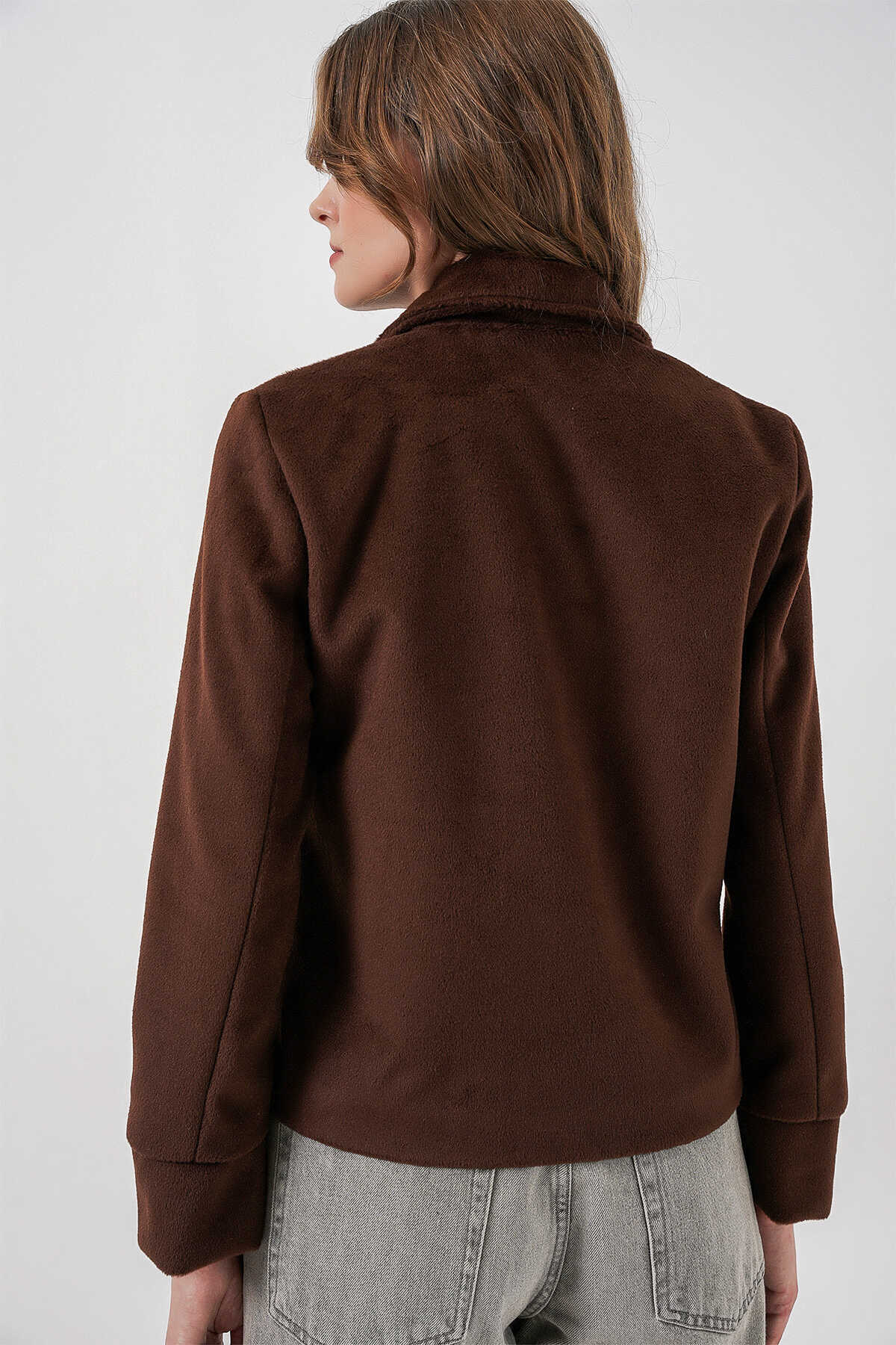 Kadın Kısa Kaşe Ceket 0725 - Kahverengi