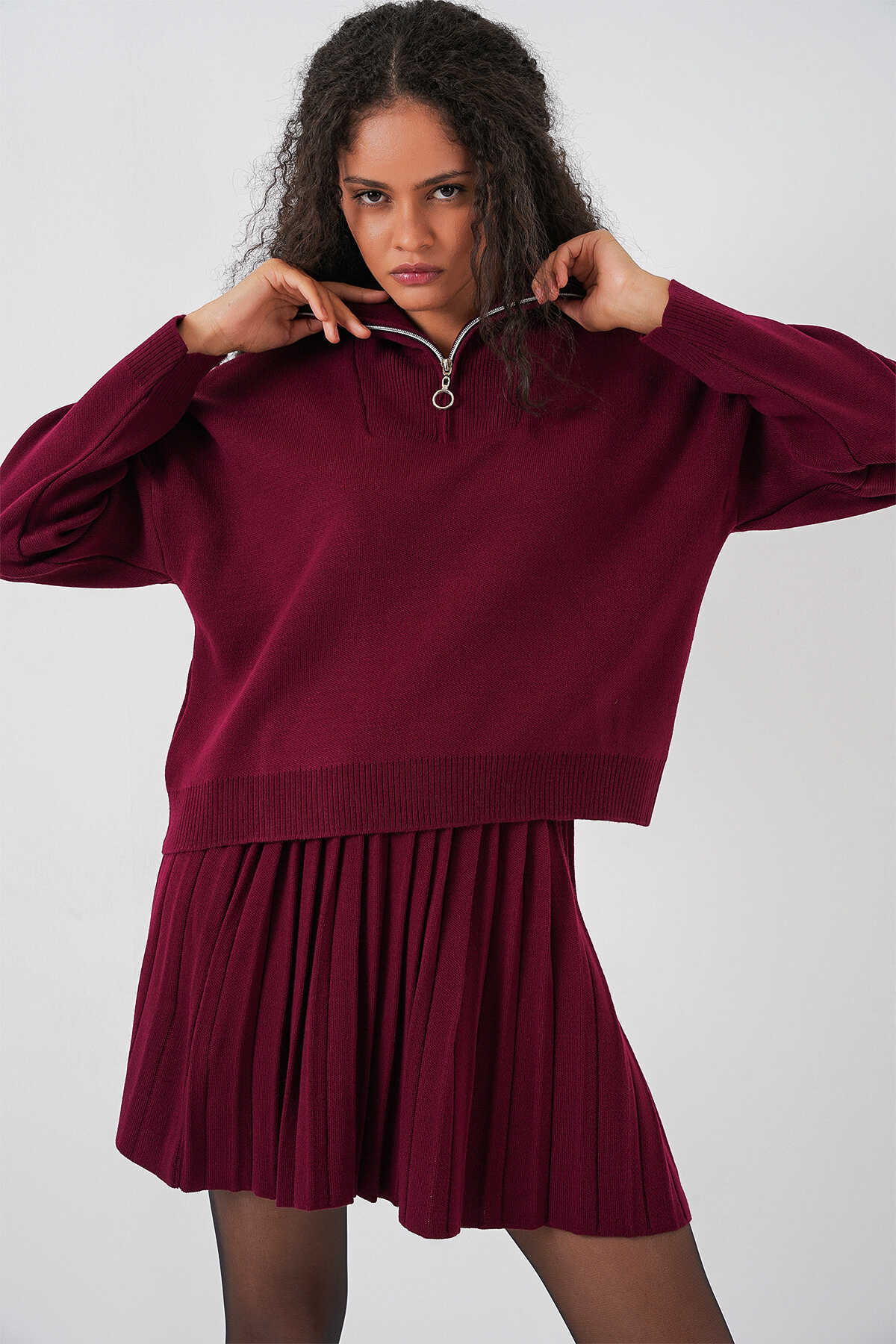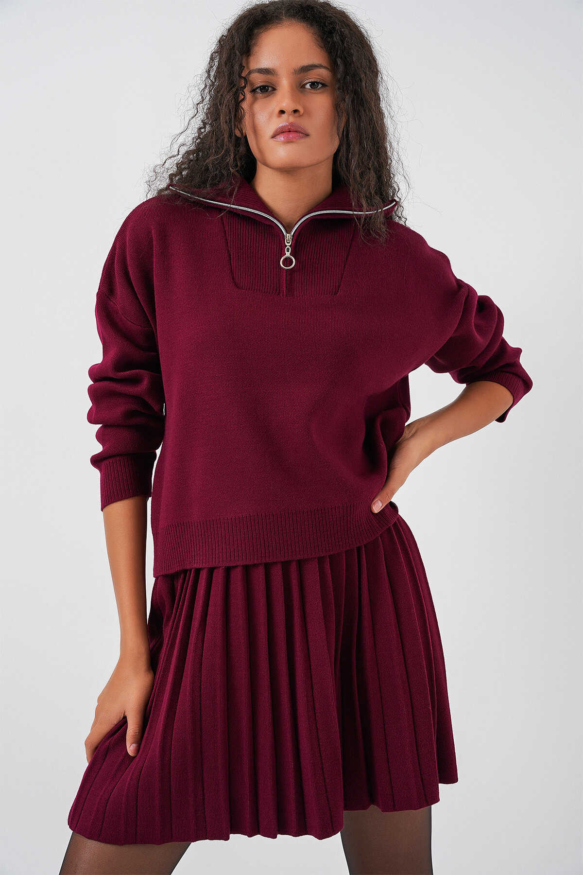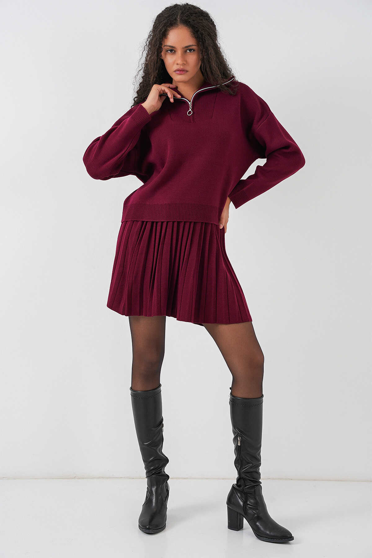 Kadın Kazak Etek İkili Takım 15938 - Bordo - Kombin