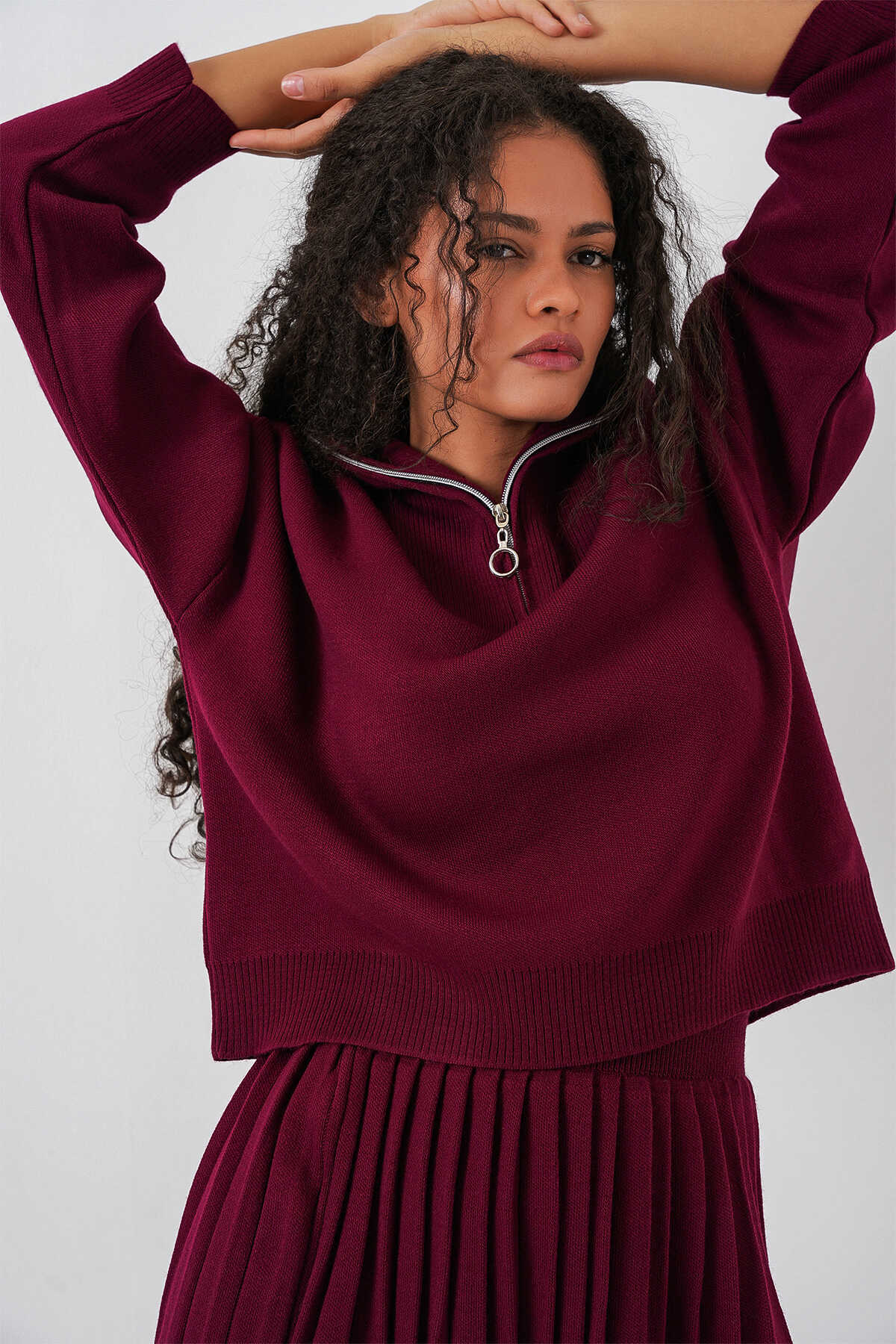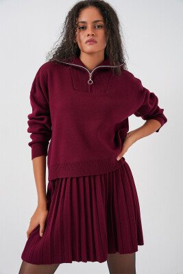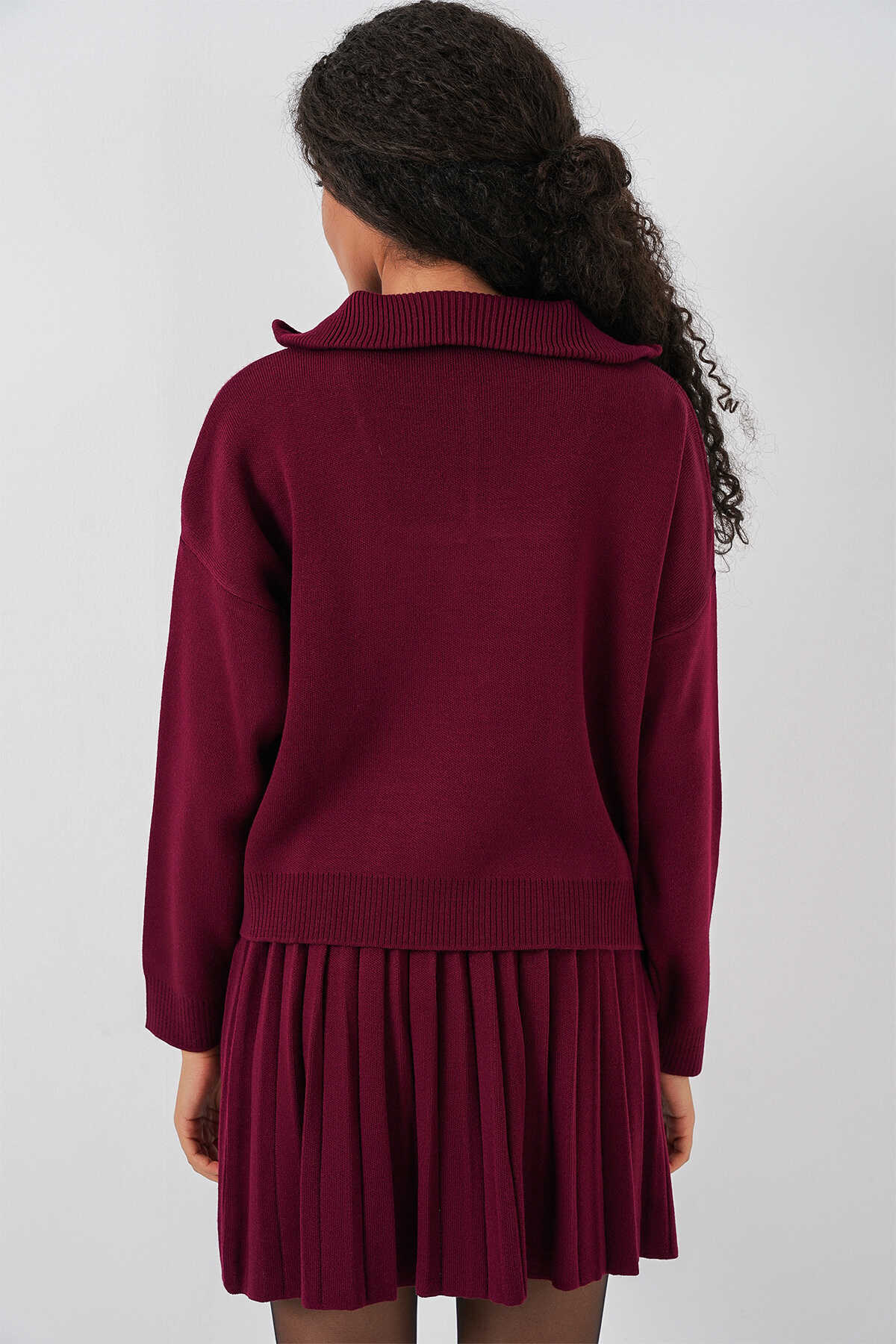 Kadın Kazak Etek İkili Takım 15938 - Bordo