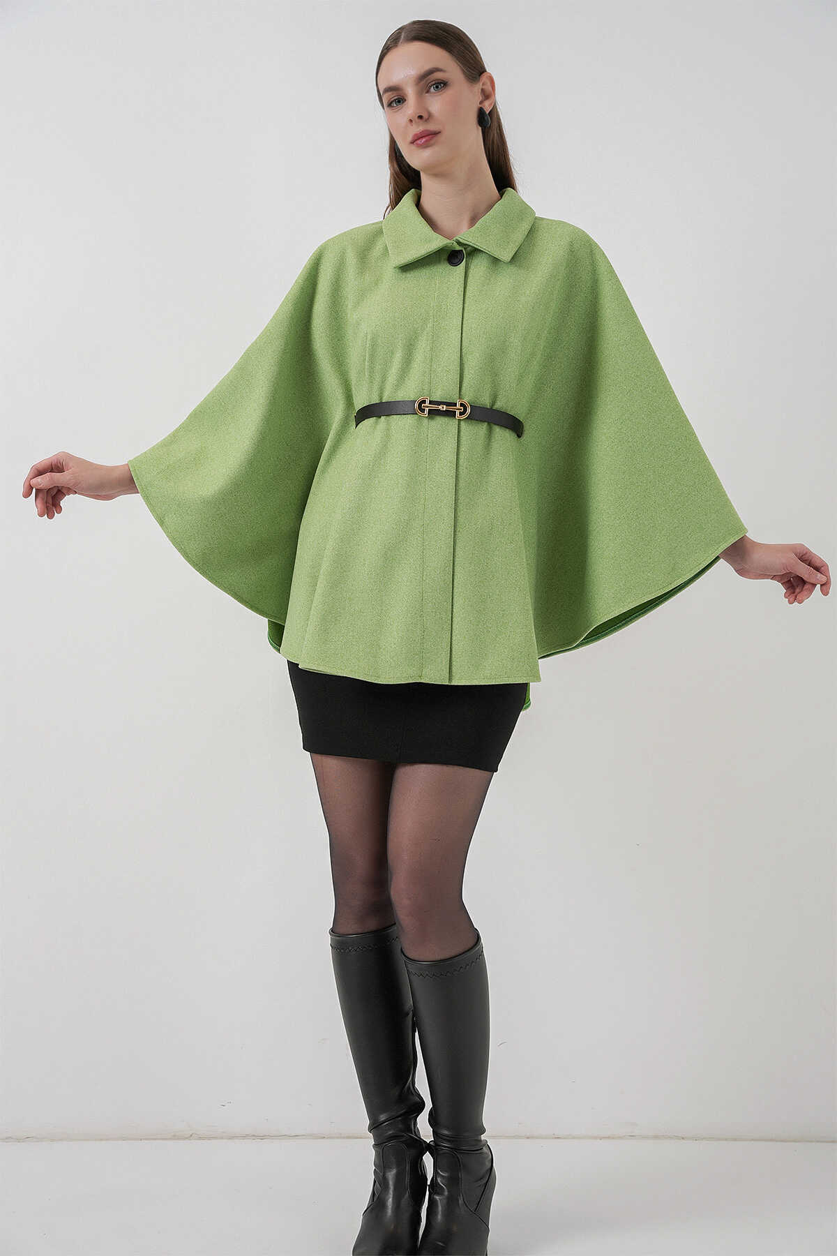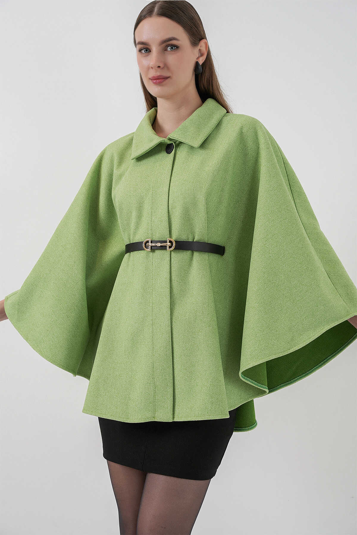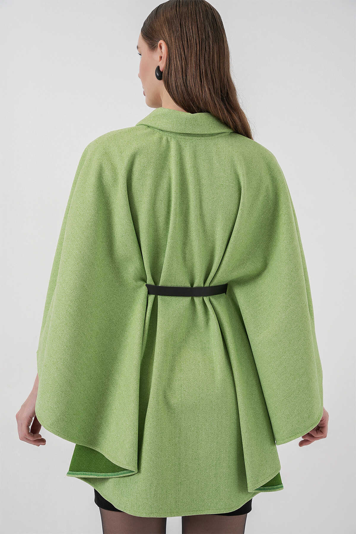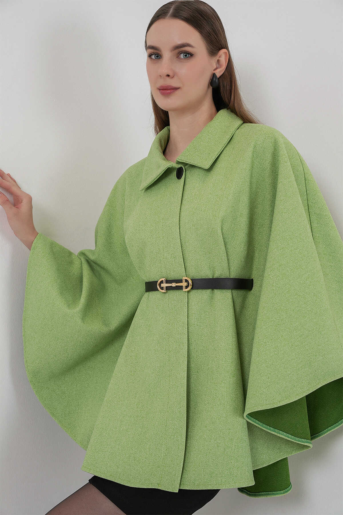 Kadın Kemerli Kaşe Panço 9170 - E.Yeşil - Kombin