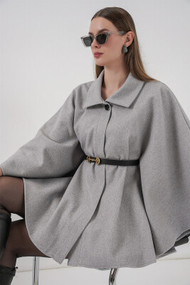 Kadın Kemerli Kaşe Panço 9170 - Gri