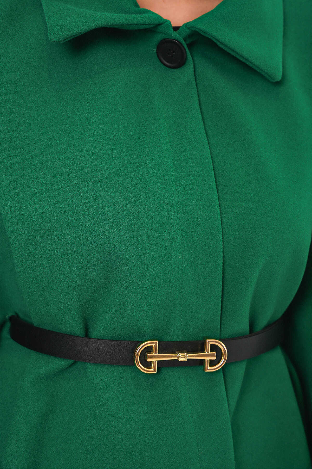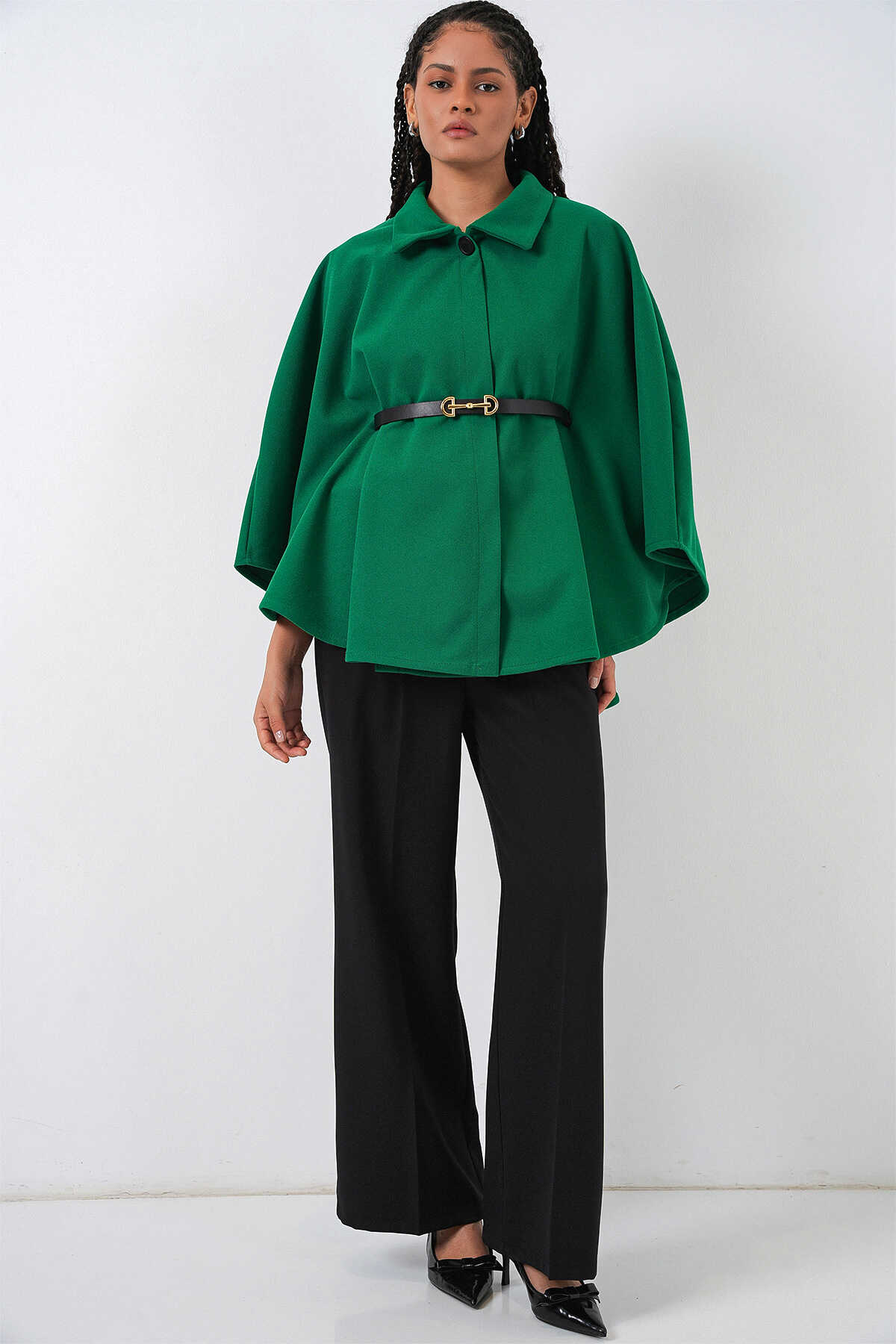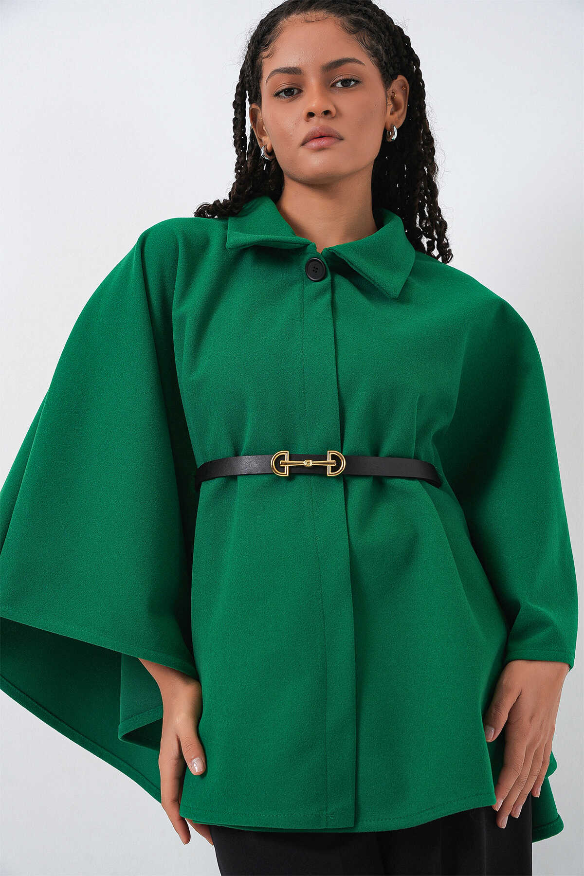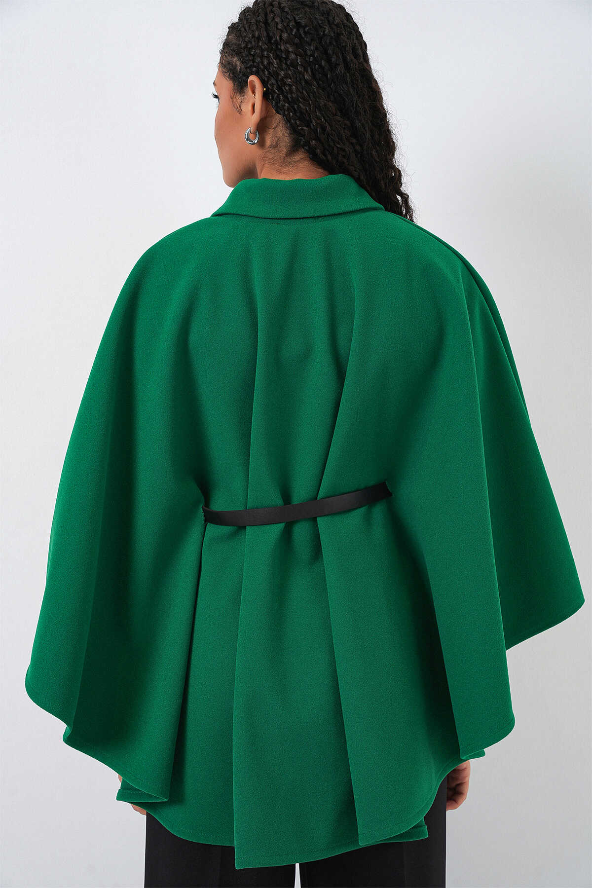 Kadın Kemerli Kaşe Panço 9170 - Koyu Yeşil - Kombin