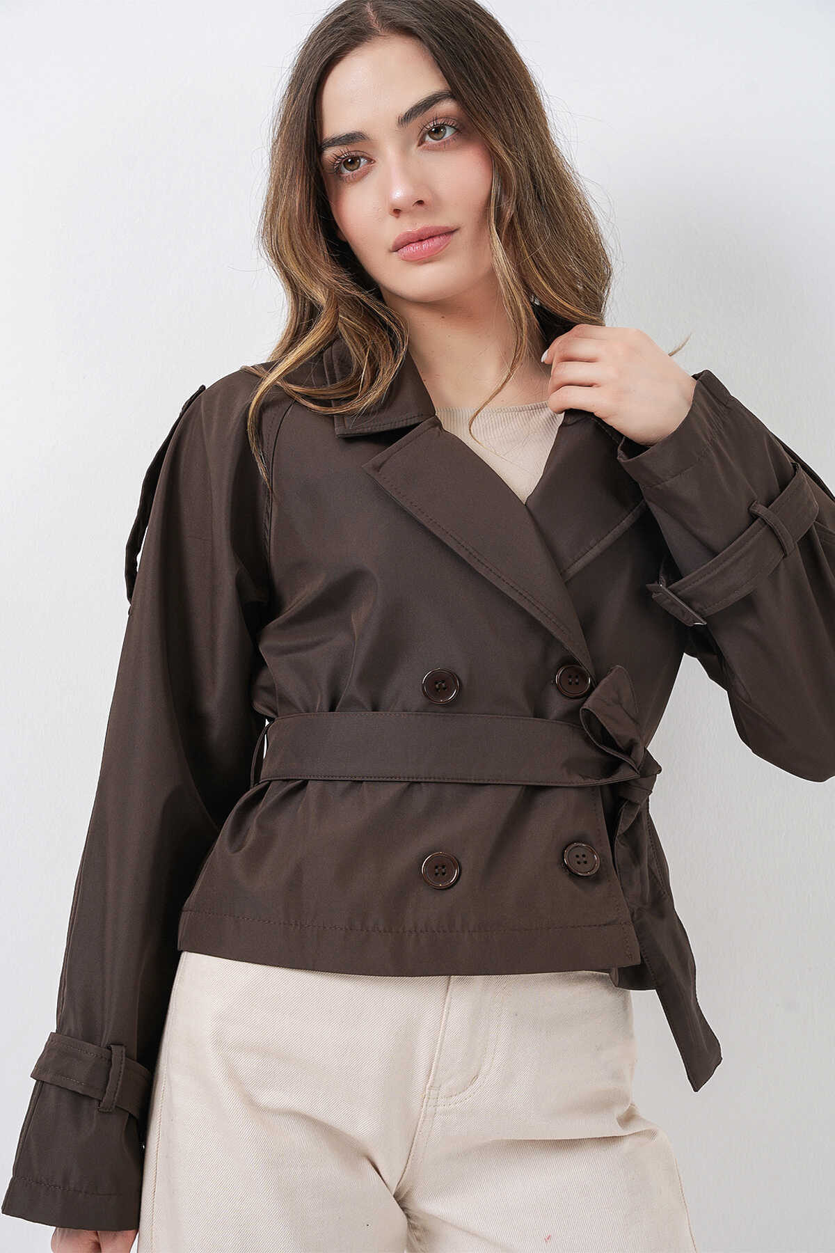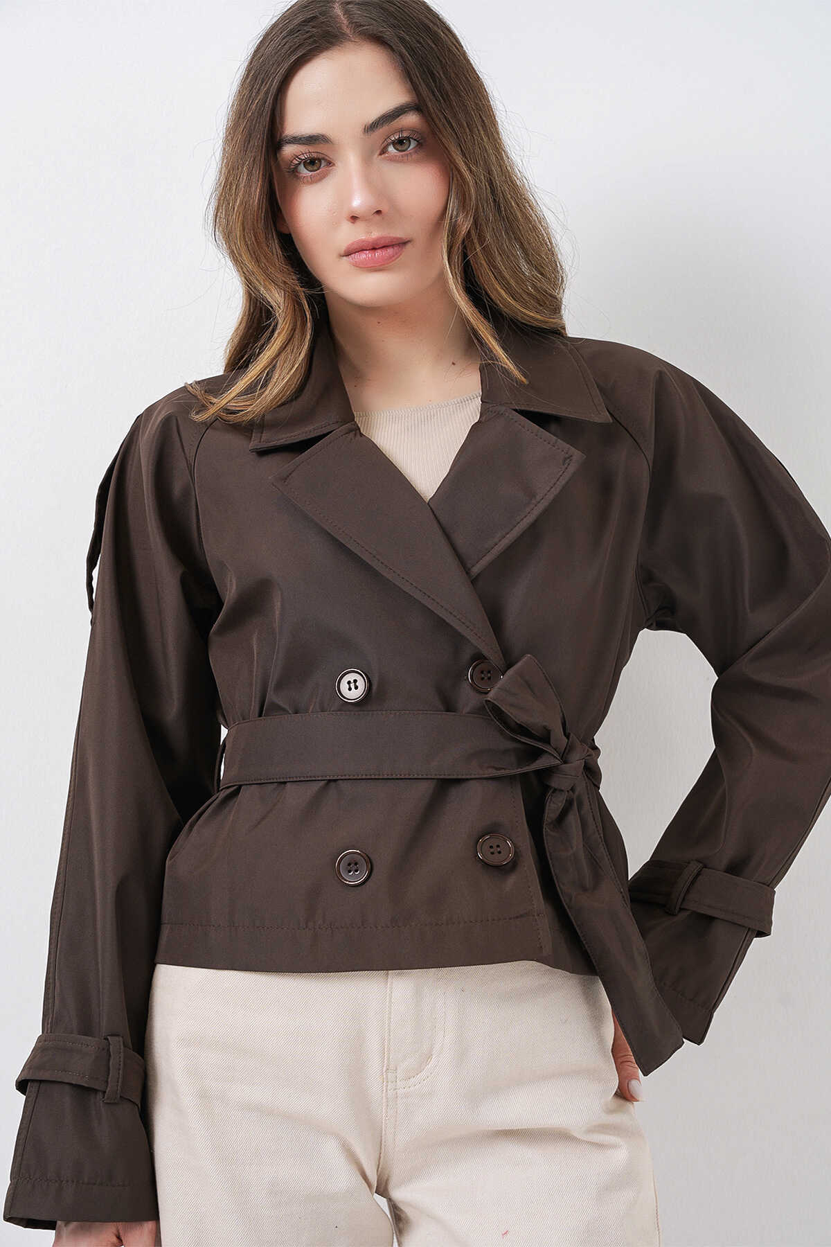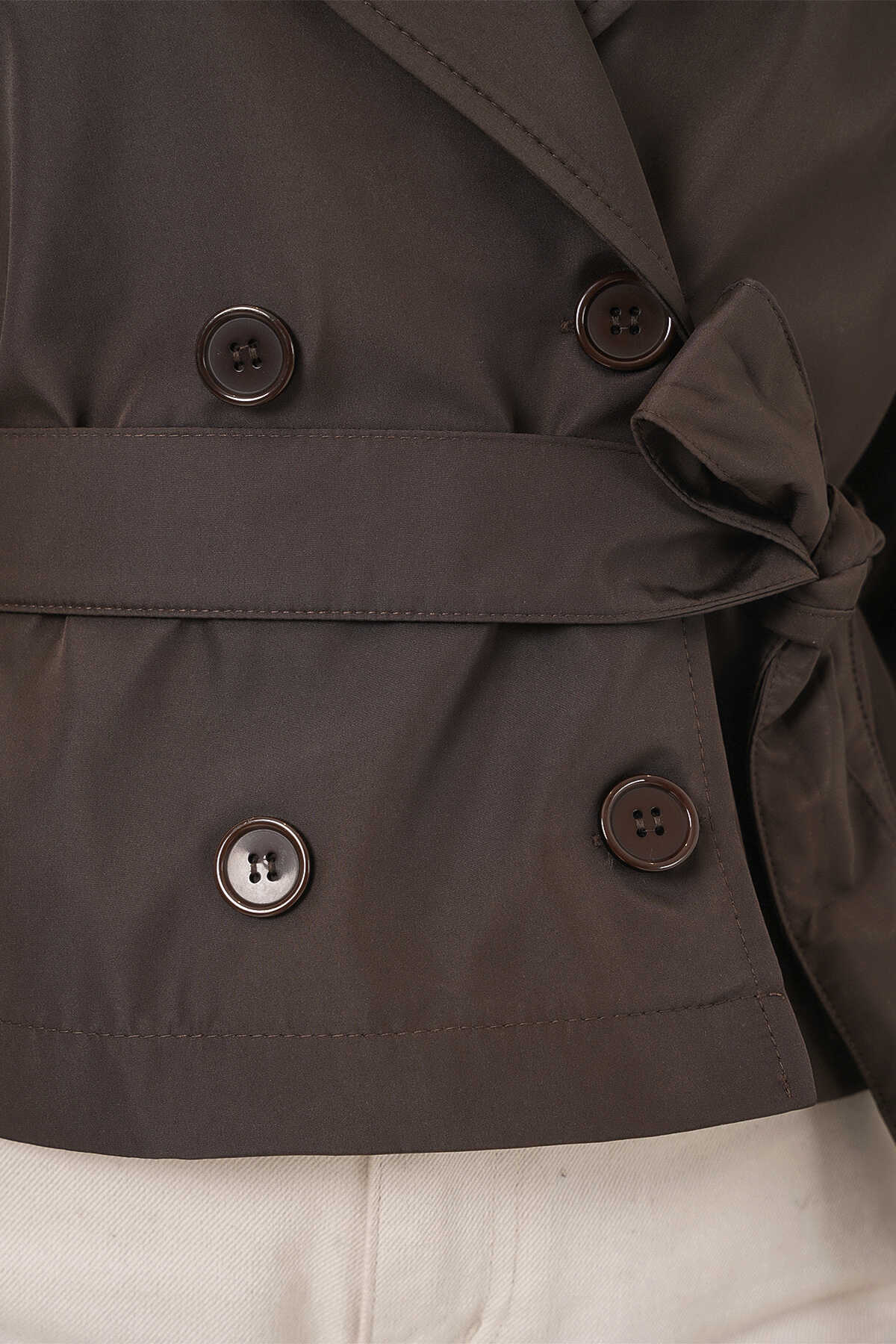 Kadin Kemerli Kisa Trençkot