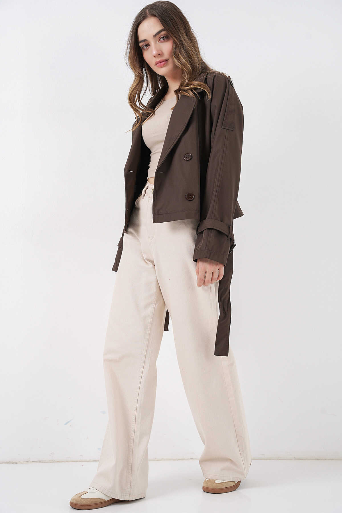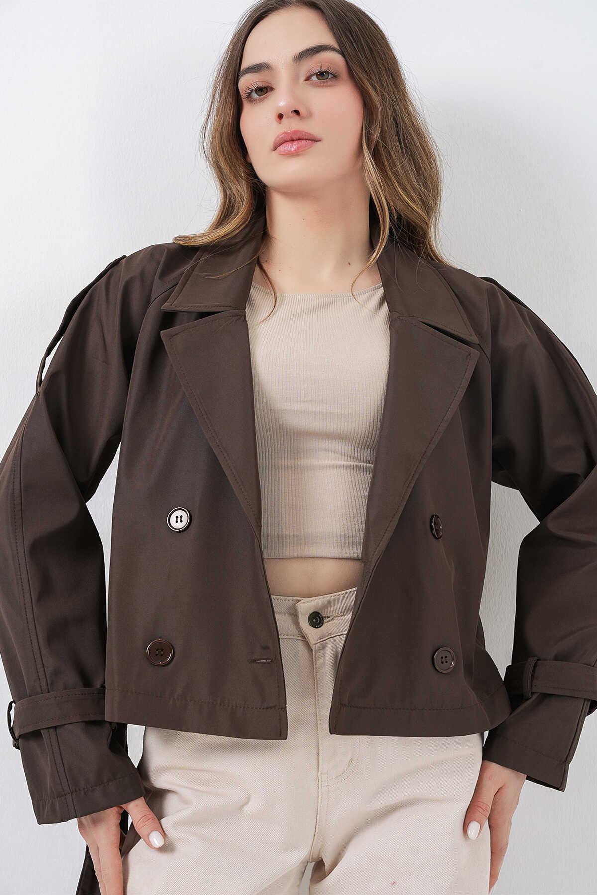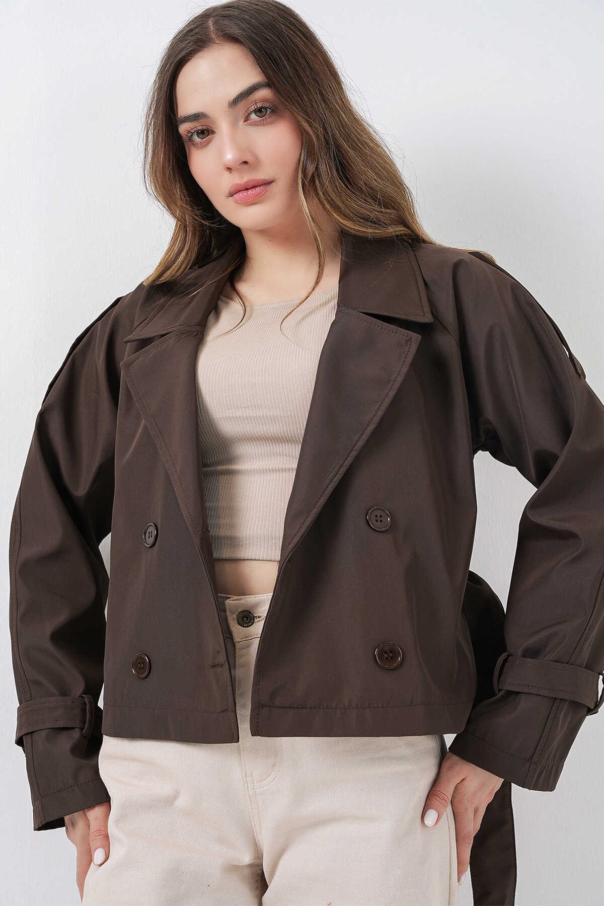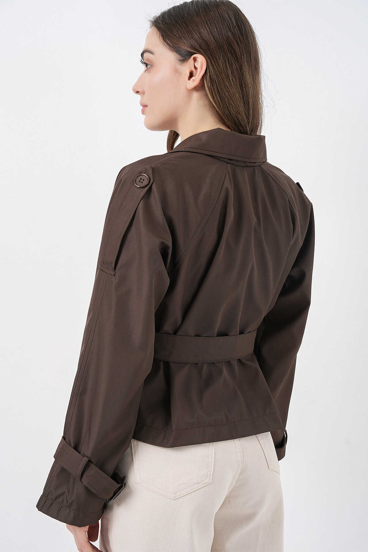 Kadin Kemerli Kisa Trençkot