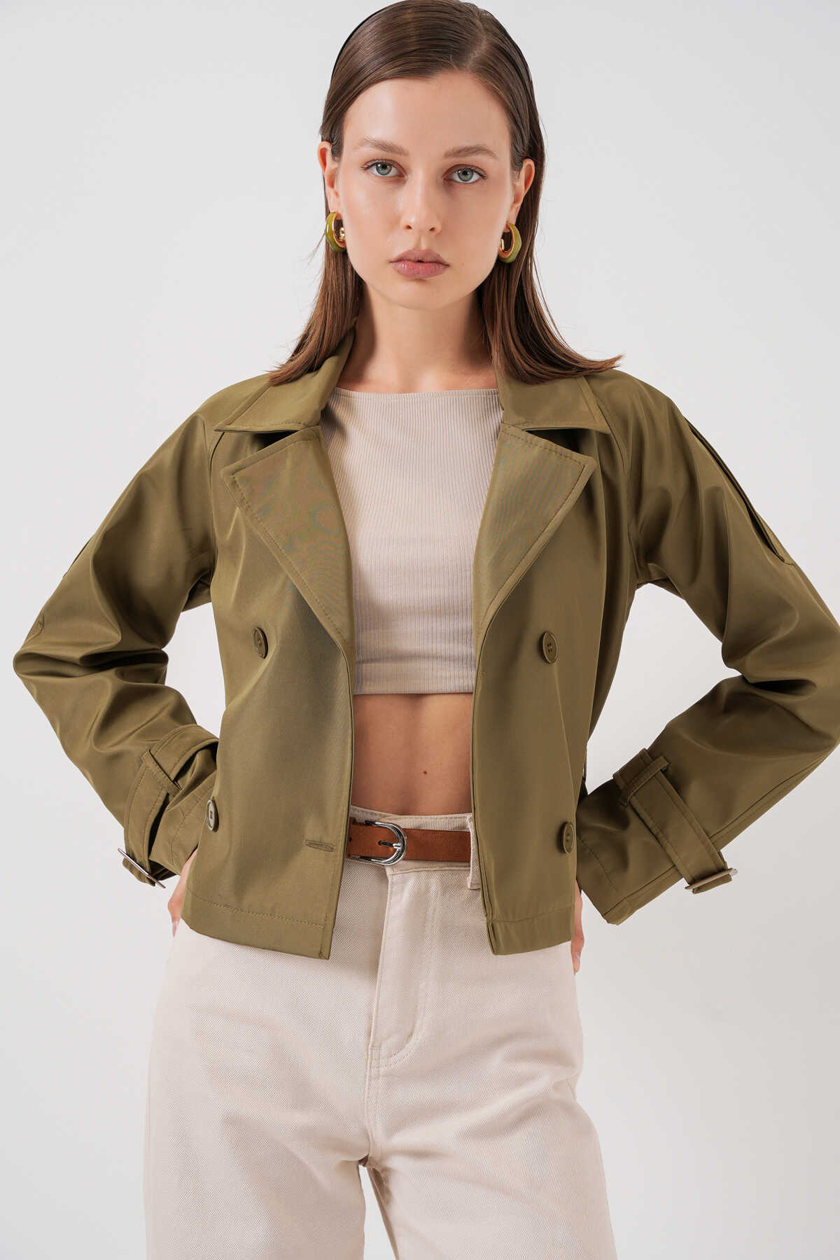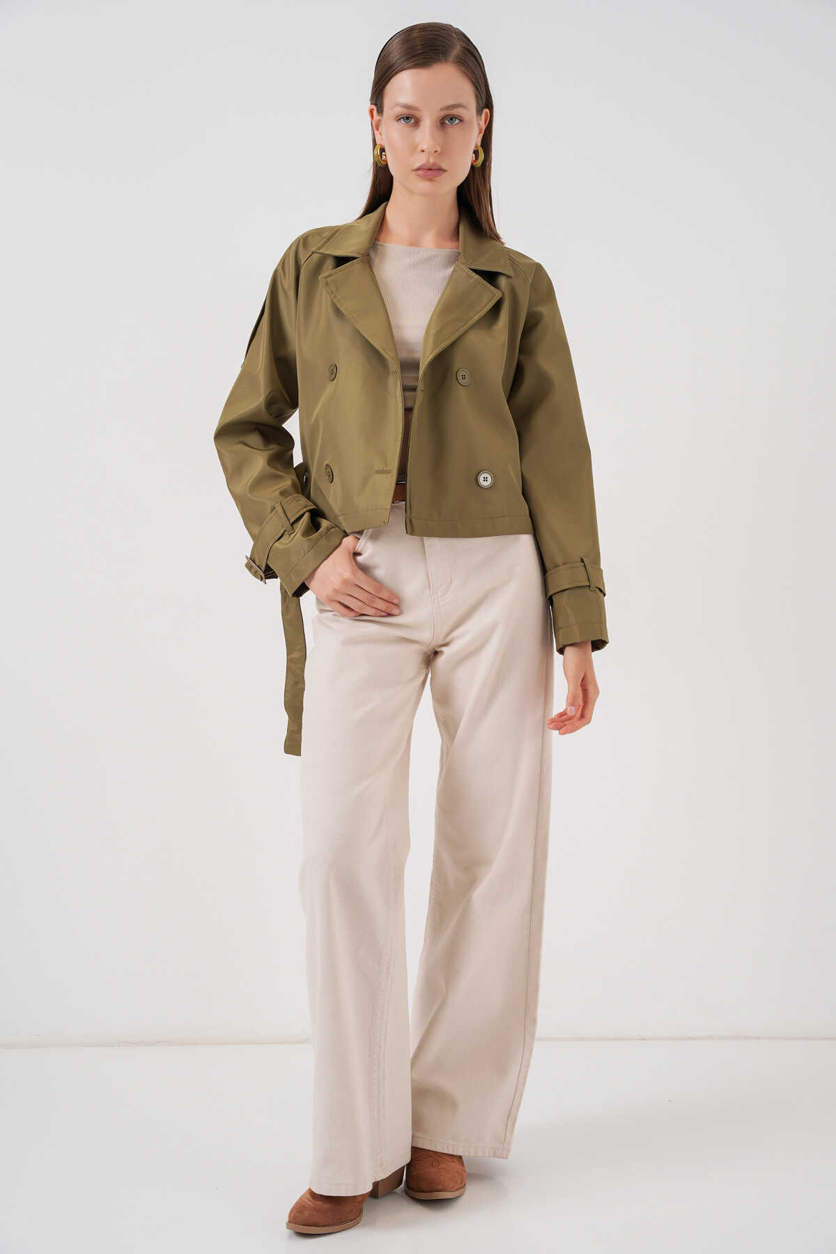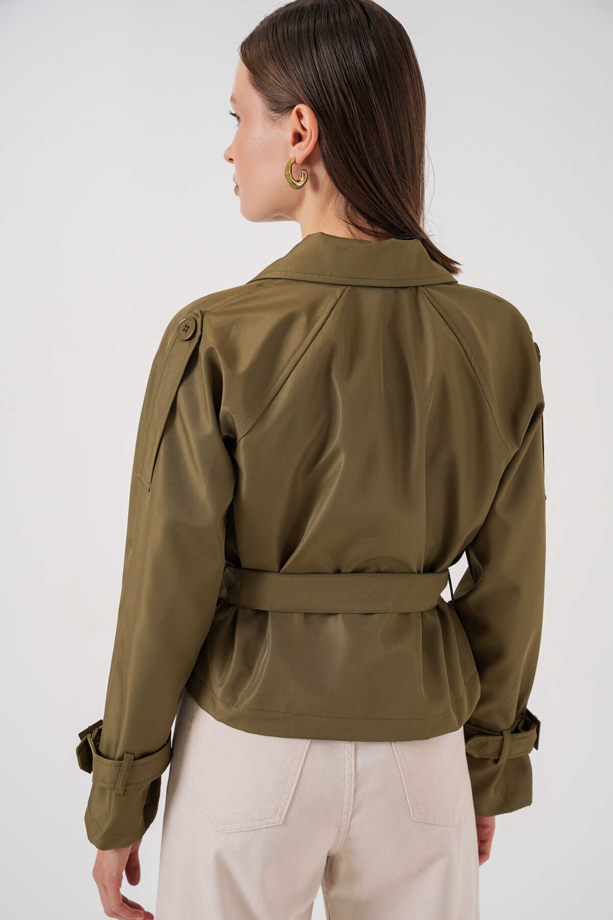 Kadin Kemerli Kisa Trençkot